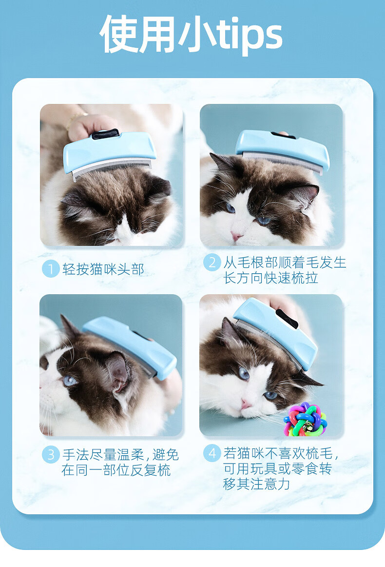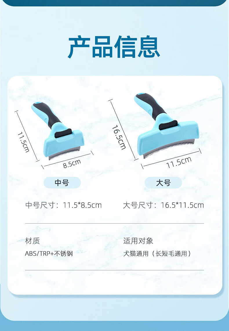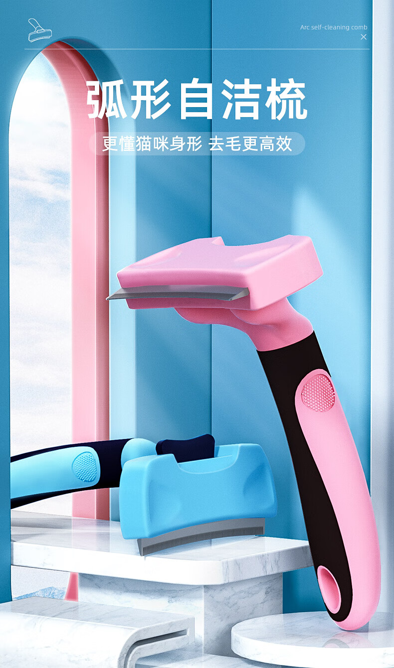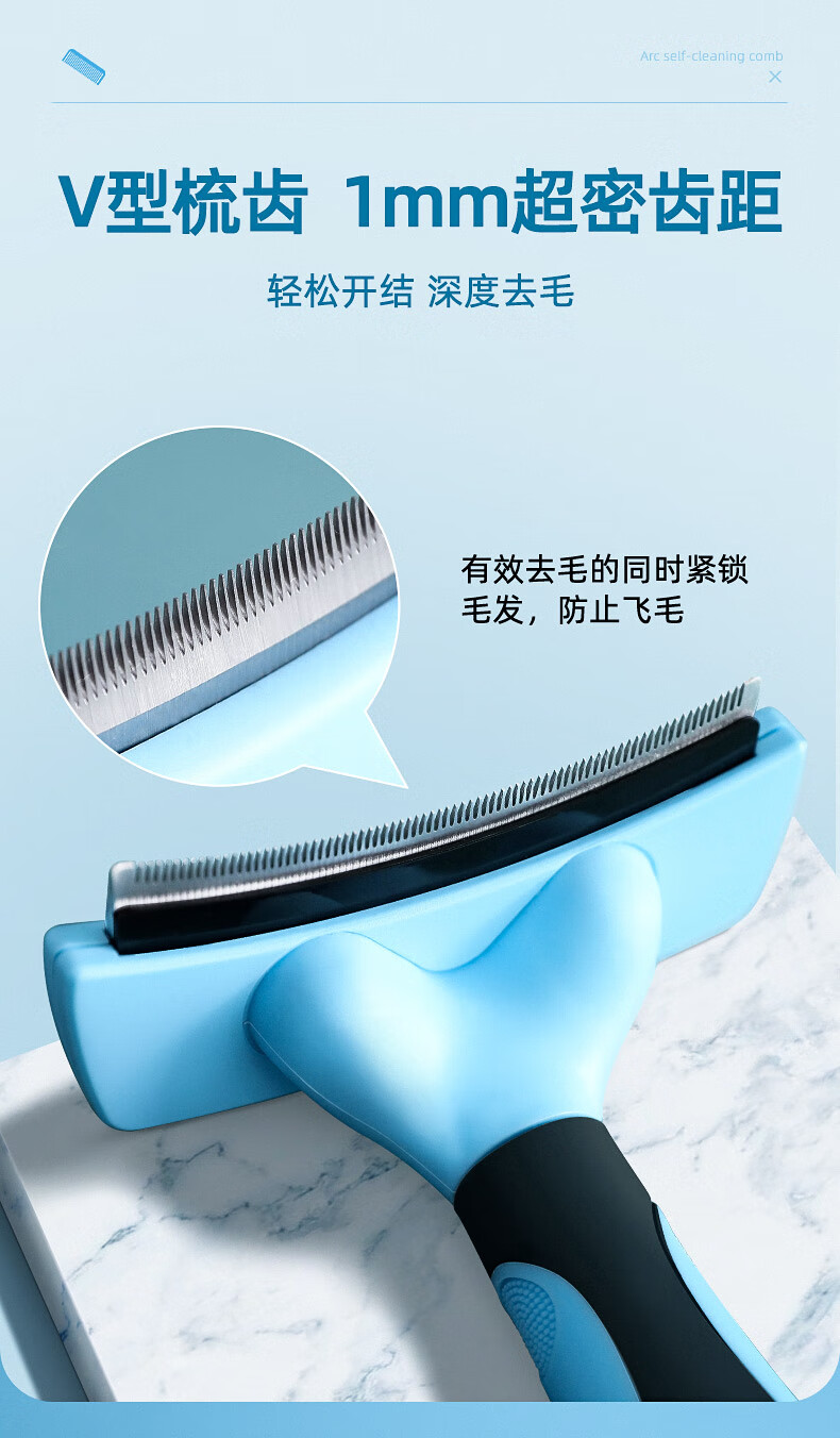 Cat combing and hair removal, pet cat hair loss and thinning special cleaner, dog comb bristle brush to remove floating hair, upgraded blue medium size, curved one-click hair removal