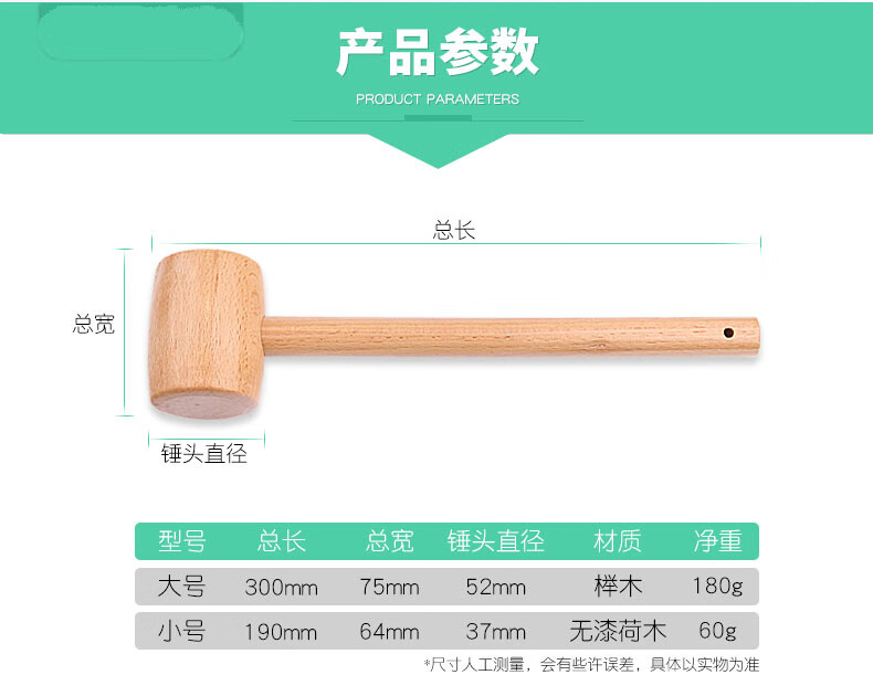 Qincen small wooden mallet DIY installation hammer wooden hammer auction hammer wood hammer wooden handle hammer natural beech hammer B style unpainted beech hammer