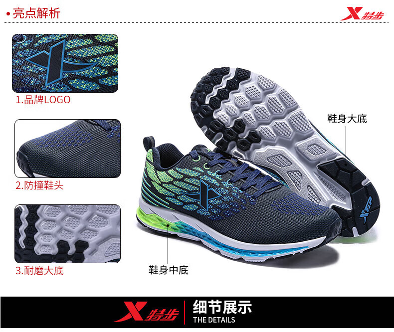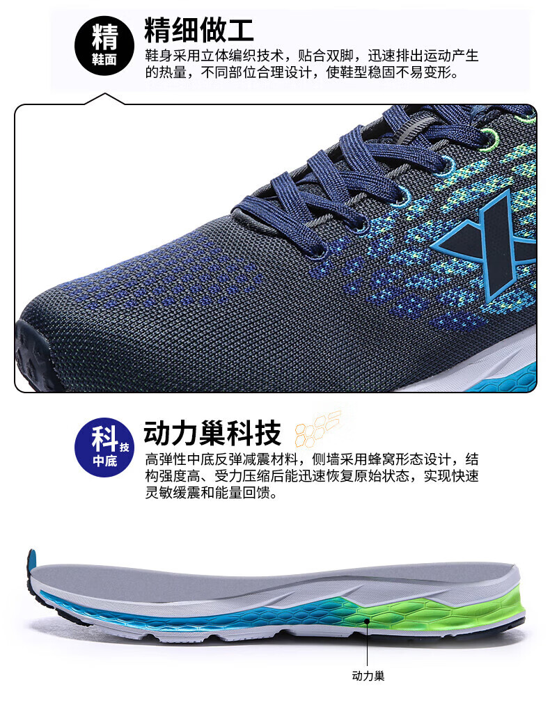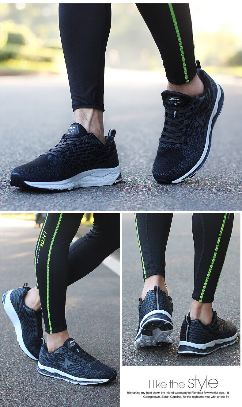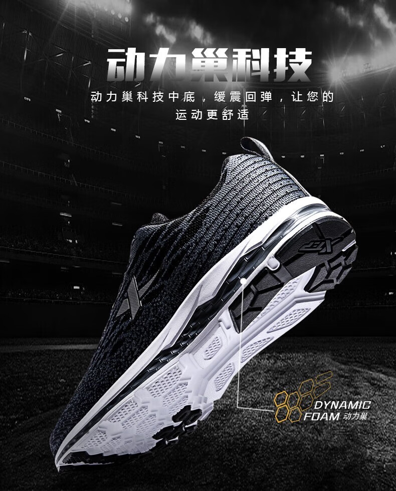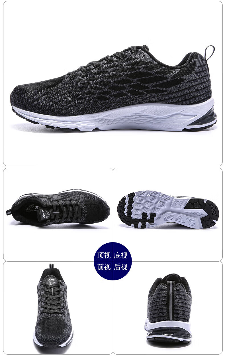 特步(XTEP)男鞋动力巢减震跑步鞋秋冬季飞织网面透气休闲鞋子轻便运动鞋男士 黑灰(动力巢) 42