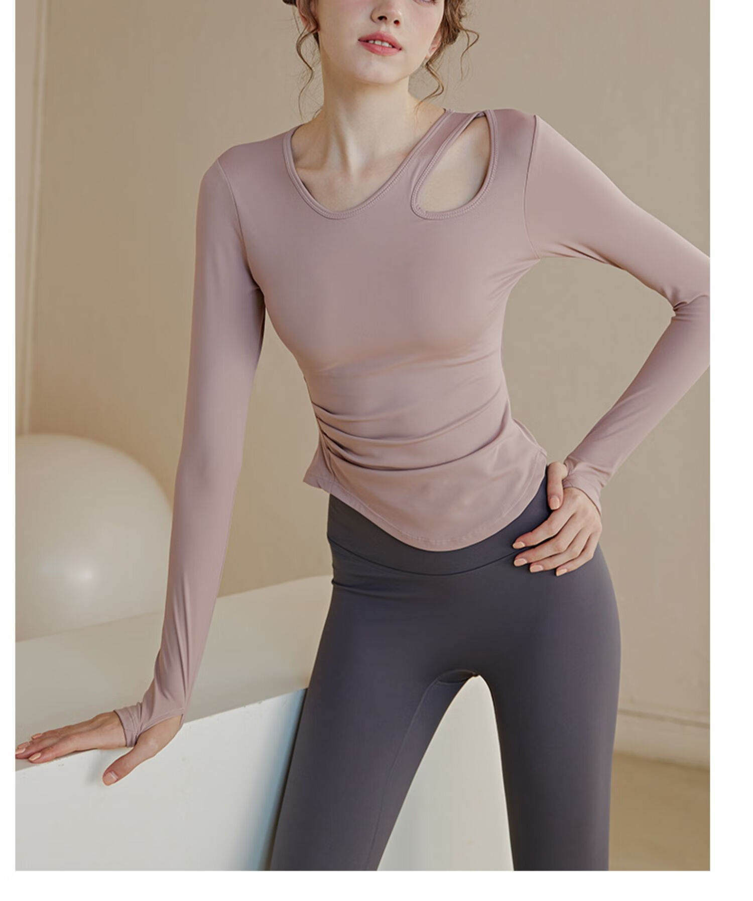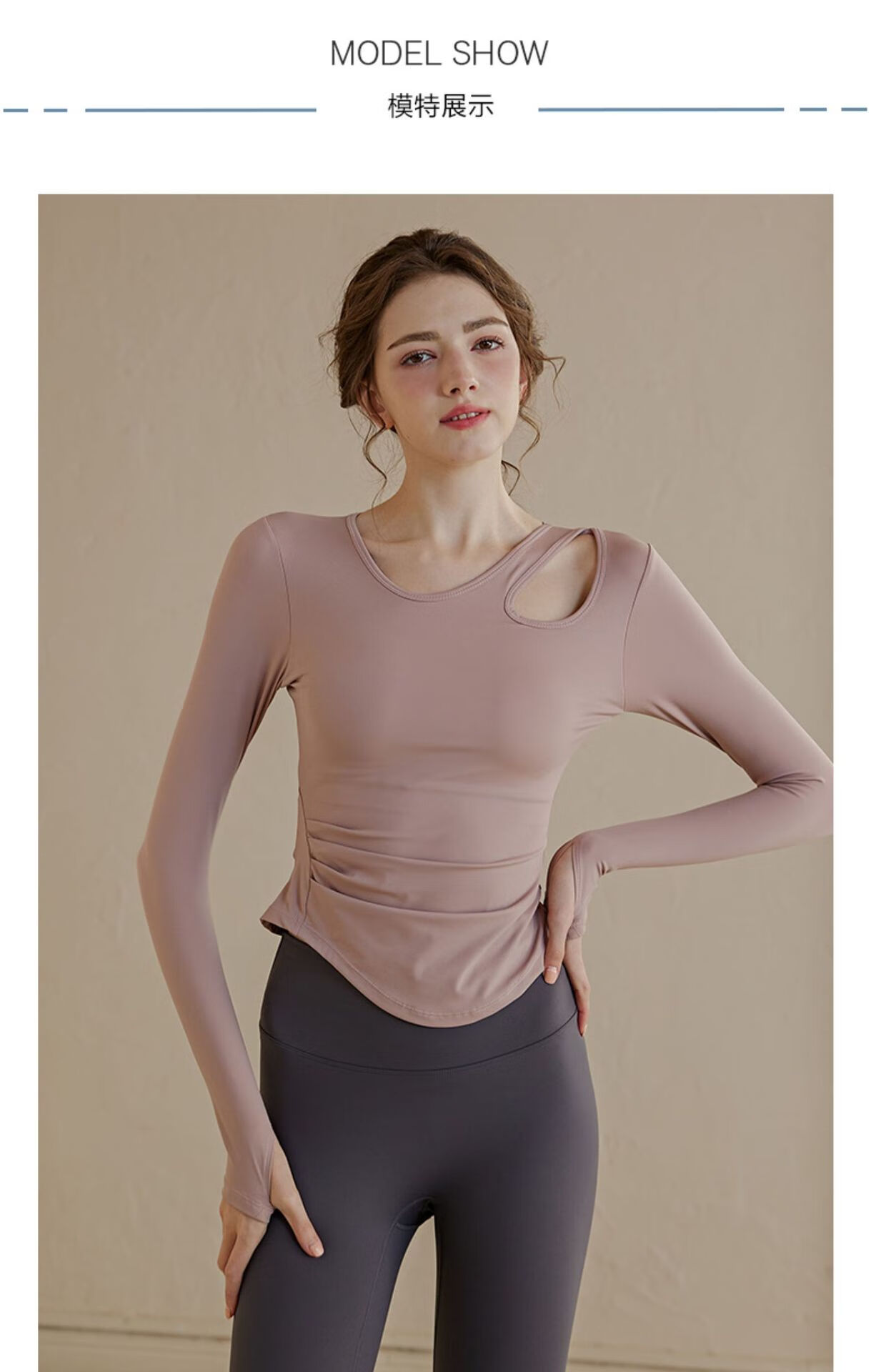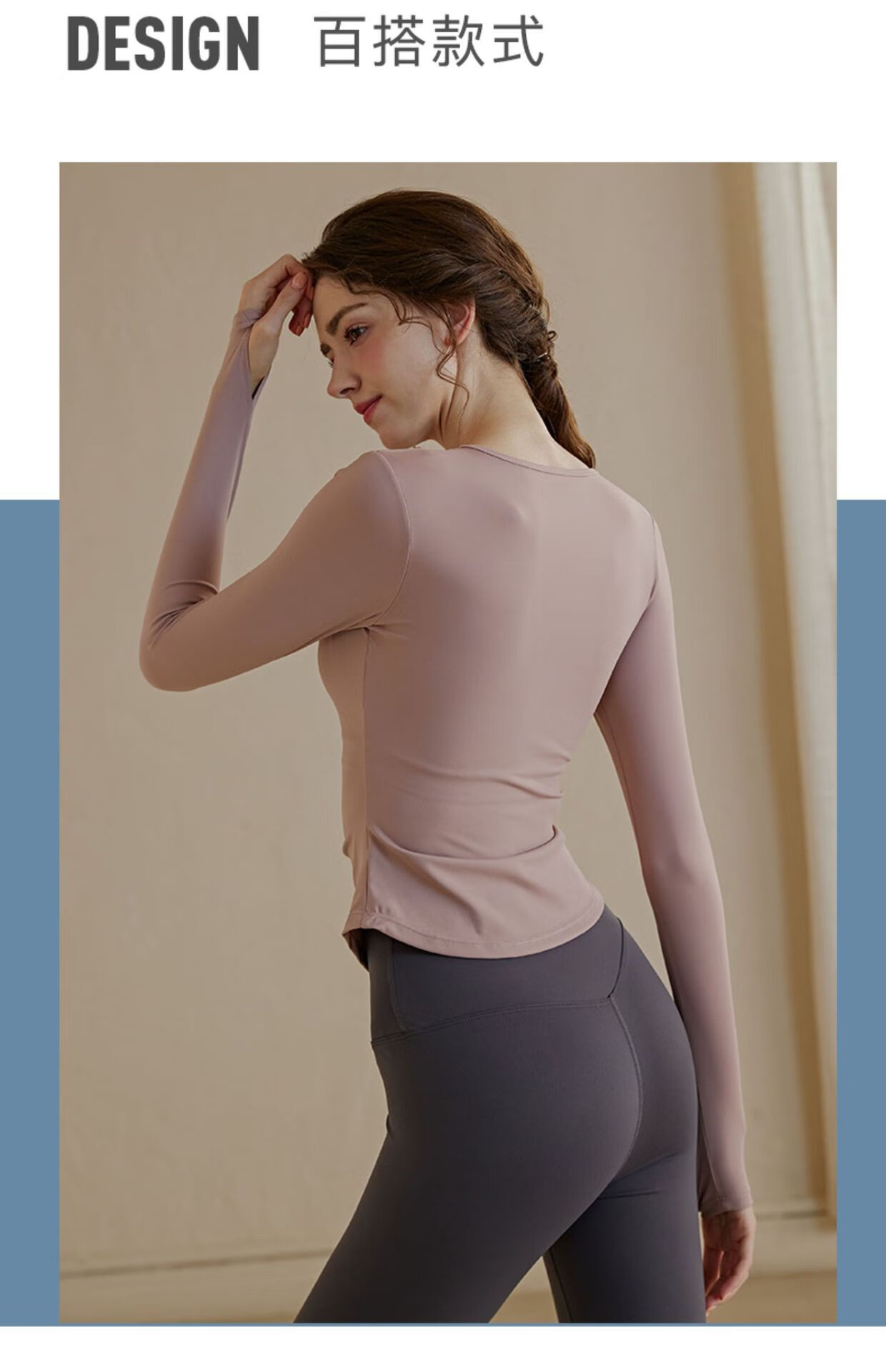 DADDECT thickened yoga wear long-sleeved T-shirt for women 2025 spring and summer with chest pad slimming running fitness Pilates top nude pink M