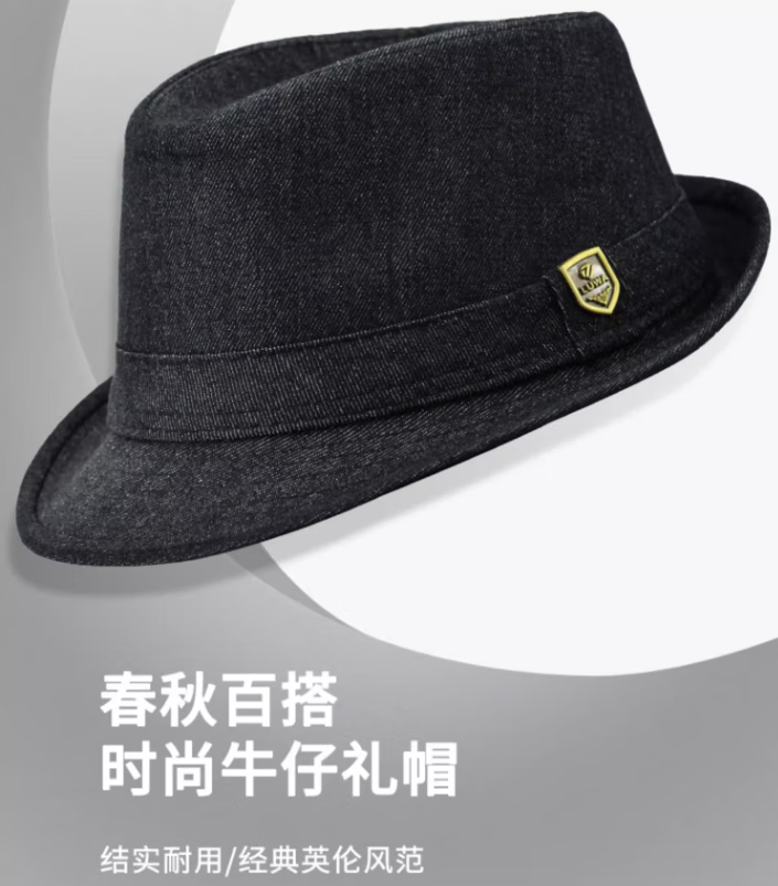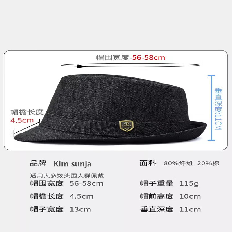 Kim sunja spring and autumn hat men's cowboy hat fashion street summer jazz hat casual denim western cloth gentleman British style light blue denim hat circumference (56-58cm) built-in adjustment strap