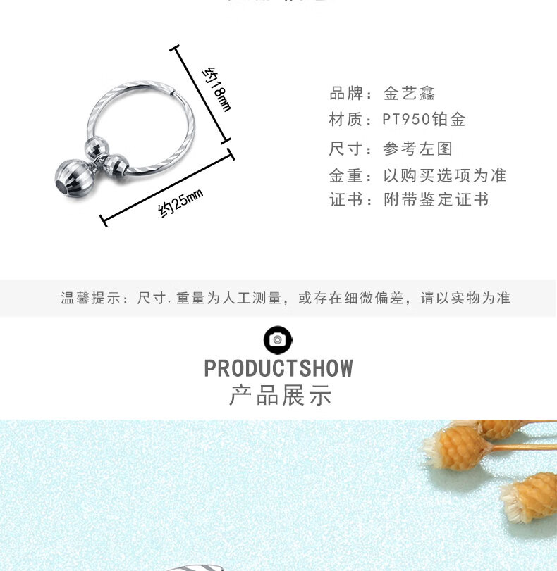 Jin Yixin PT950 platinum earrings for women, earrings, platinum and platinum earrings, super shiny Valentine's Day gift, platinum earrings weigh about 3.5 grams, diameter is about 1.8cm