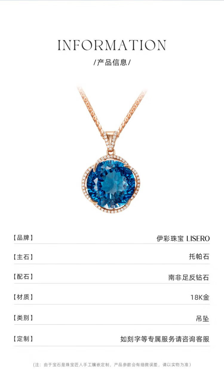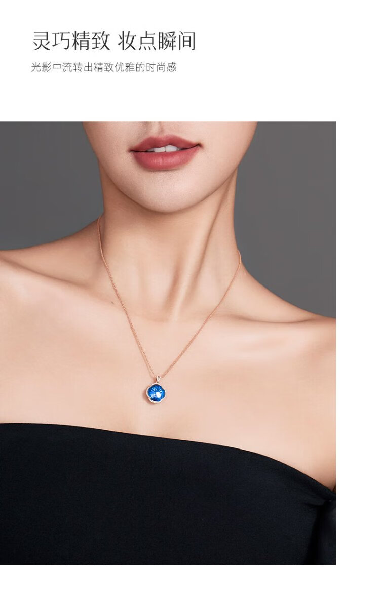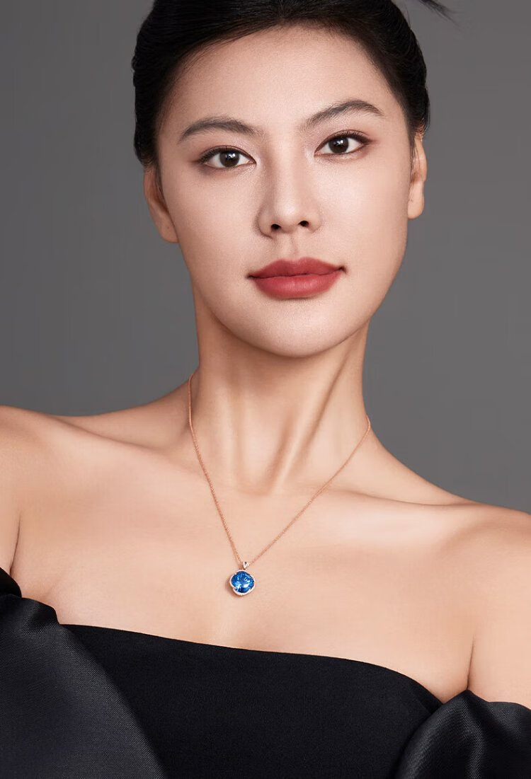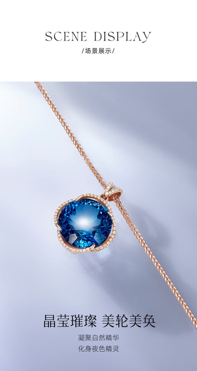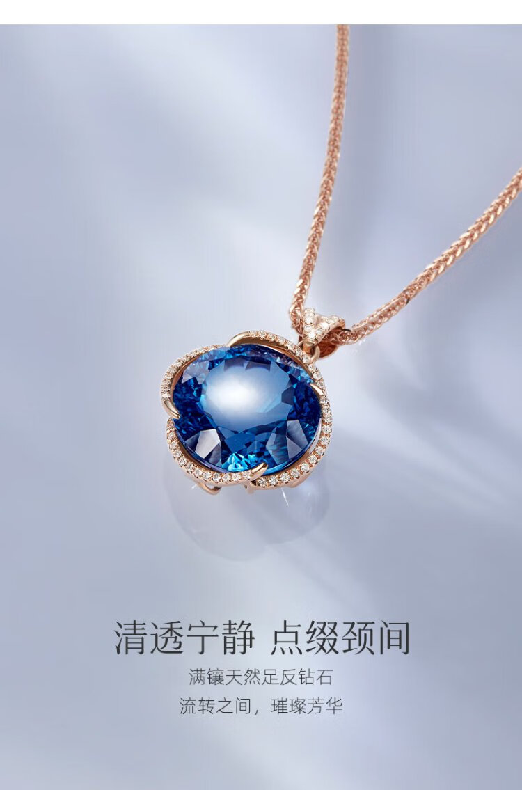 Icai topaz pendant for women 18k gold inlaid with diamonds and blue gemstone necklace birthday gift for girlfriend and lover pendant 8 carats free s925 silver chain O-shaped