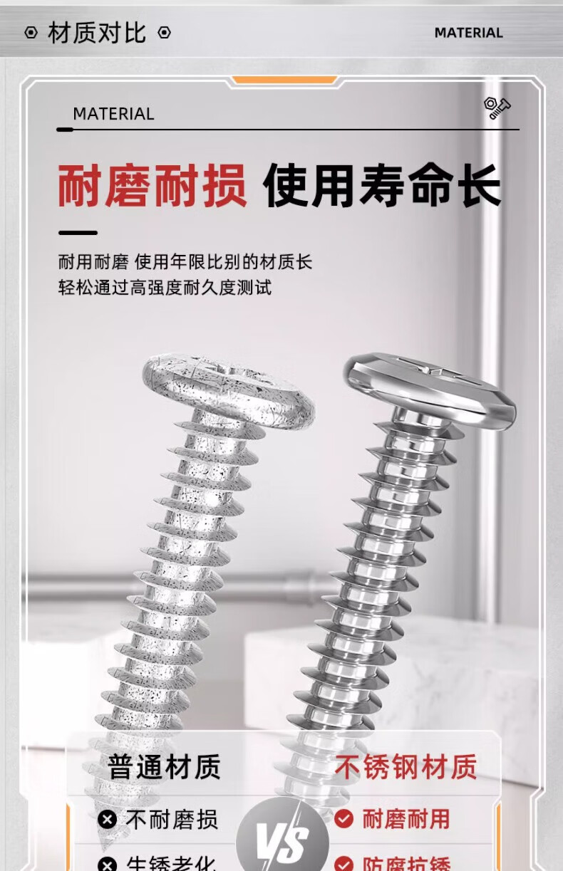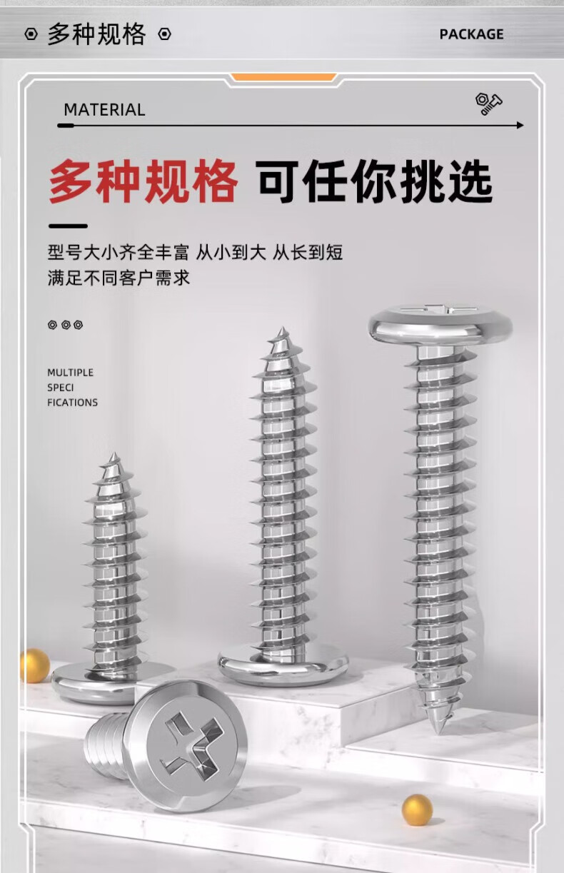 Tianzhuo Hardware 304 stainless steel cross flat head self-tapping screws bevel round head furniture bevel edge wood screws M3M4M5M6mm M4*16-20 pieces