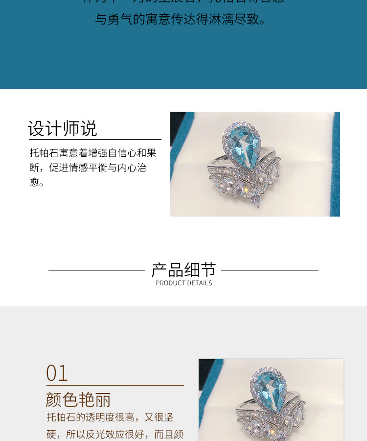 CAJJ Francois 3.50 carat topaz ring for women, natural colored gemstone, jewelry gemstone, 925 silver inlaid, No. 13