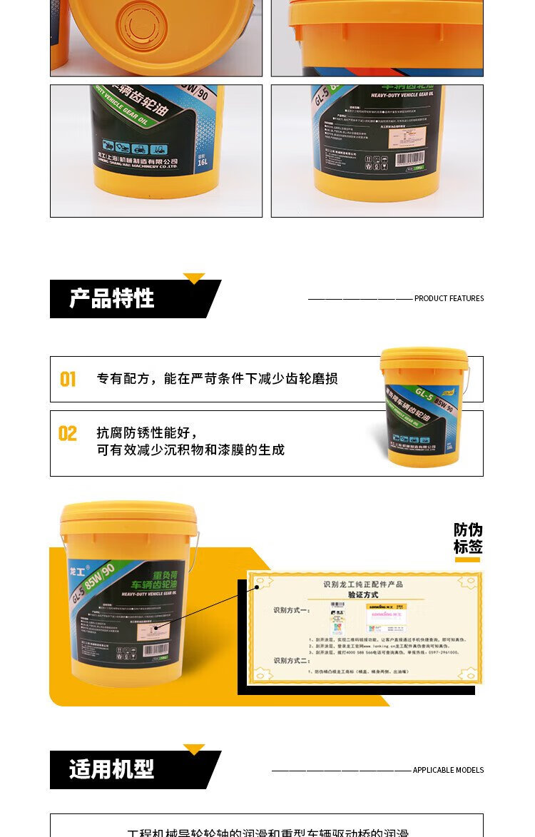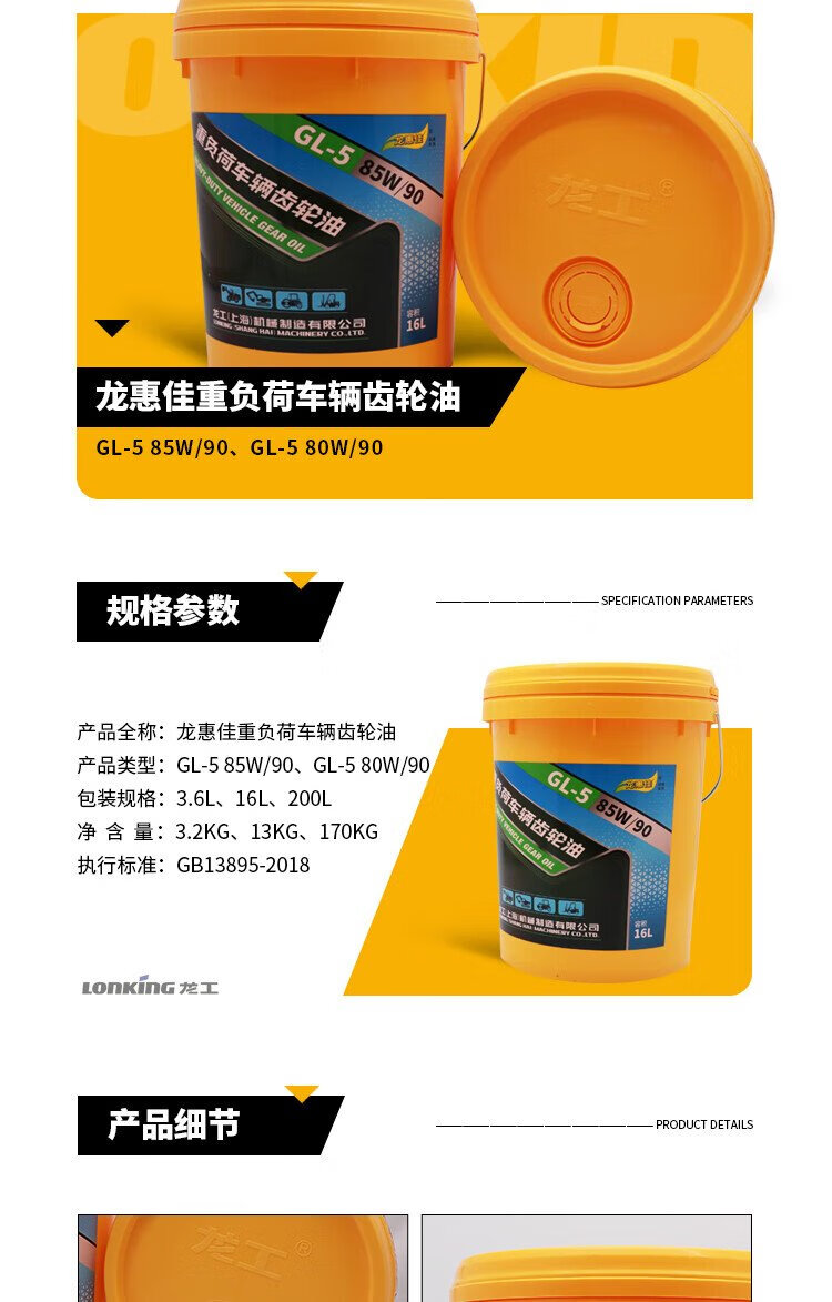 Lonking Longhuijia heavy-duty vehicle gear oil GL-5 85W/90 Lonking gear oil volume 3.6L net content 3.2KG