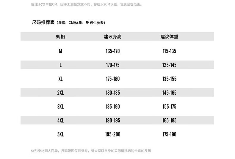 China (cm) 160-165/84-86 165-170 / 88-90 167-172 / 92-96 168-173 / 98-102 170-176 / 106-110
