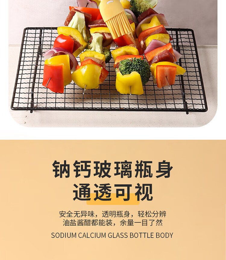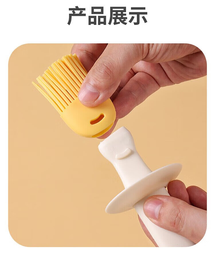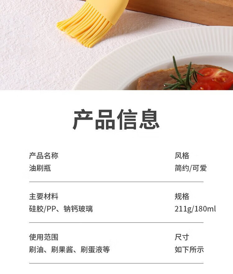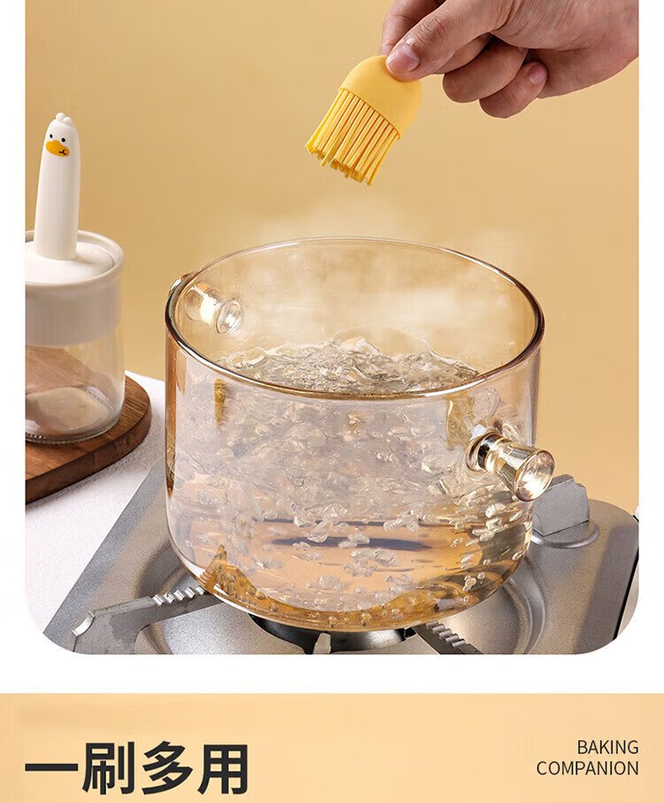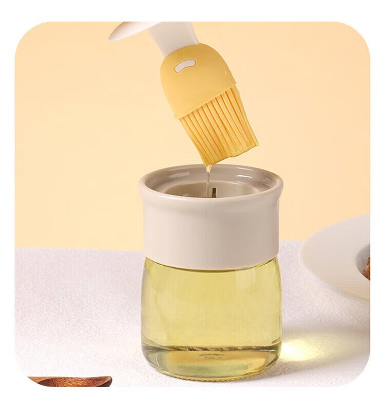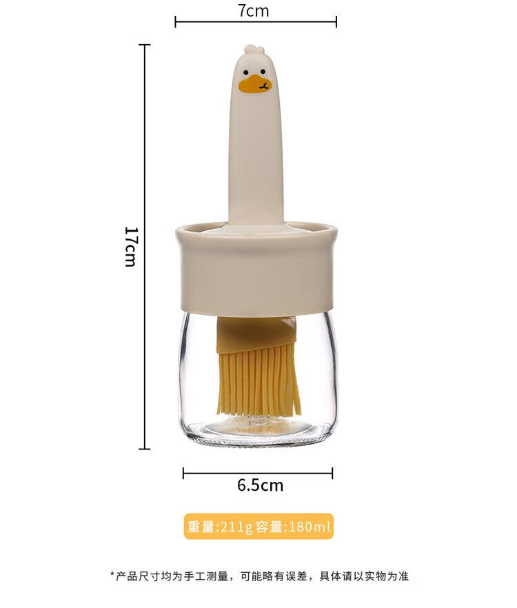 Baijie oil brush with bottle glass oil bottle integrated food grade silicone household high temperature resistant baking and barbecue brush oil bottle cream white cartoon oil brush bottle single piece 180ml
