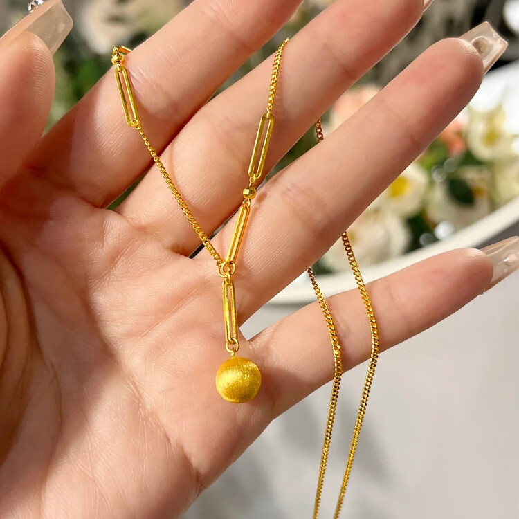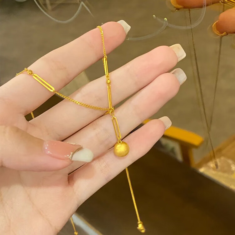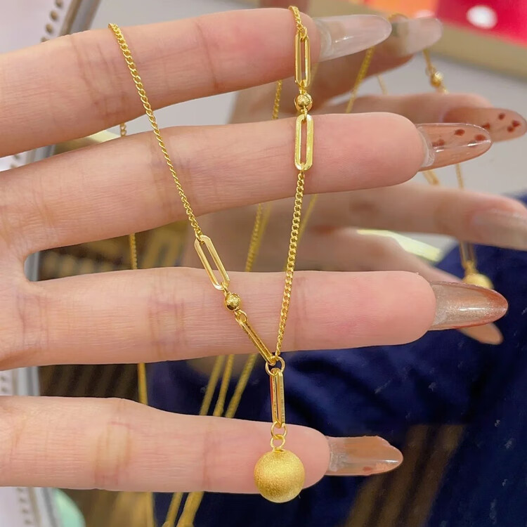 Brangdy2025 Brangdy brushed frosted small gold ball necklace for women 18K gold collarbone Bing ball necklace