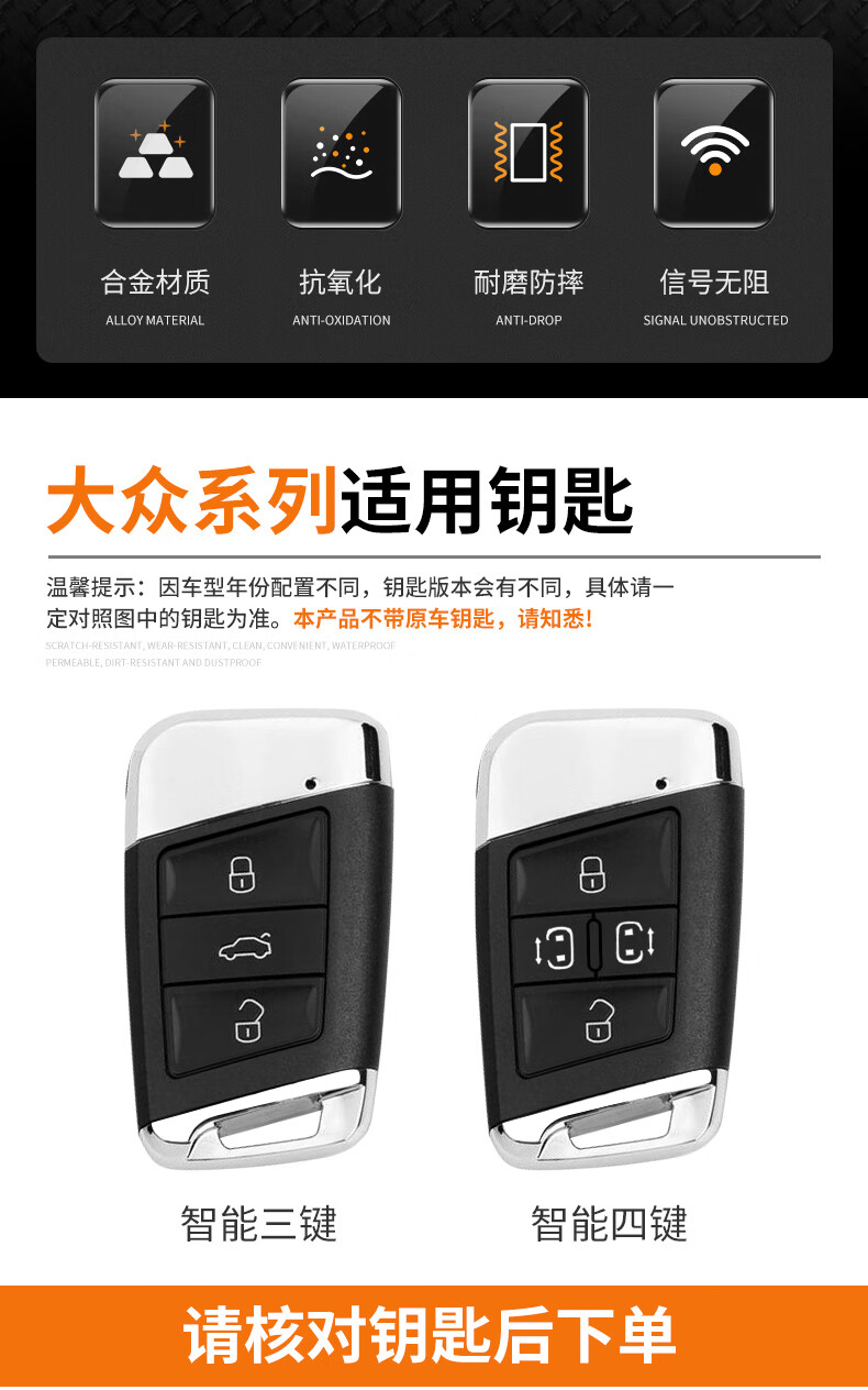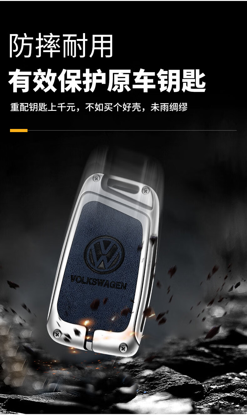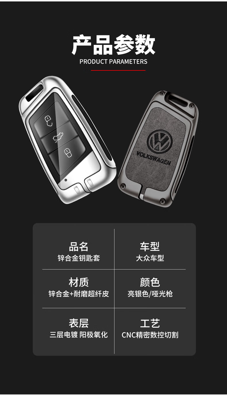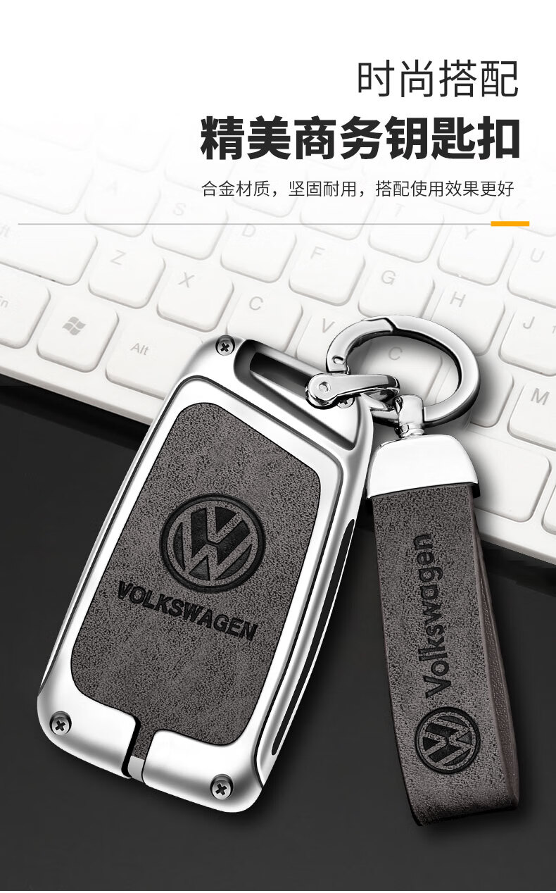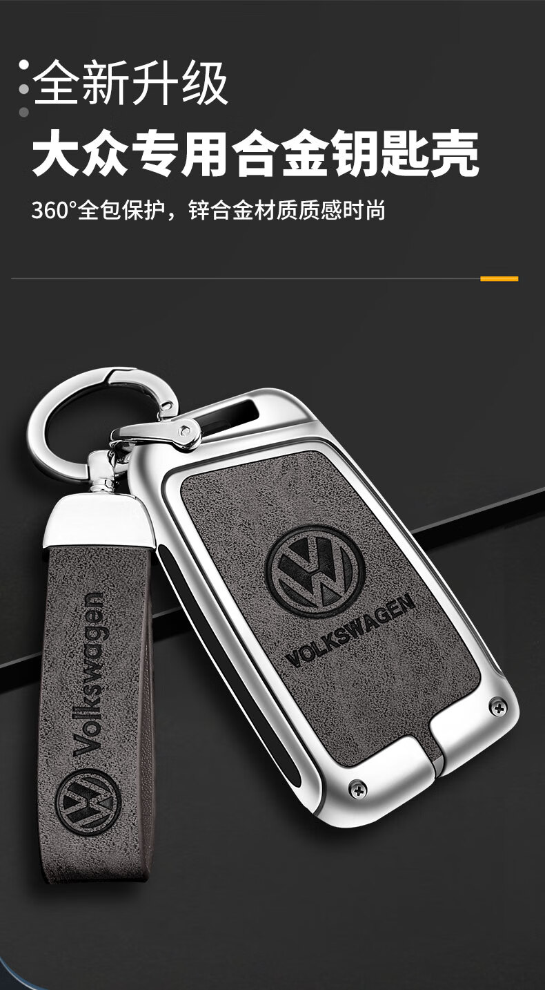 LONGSNOL is suitable for 2023 Volkswagen Magotan key cover, 2019-20 Passat key case protective shell metal buckle men's C model gun gray complete set