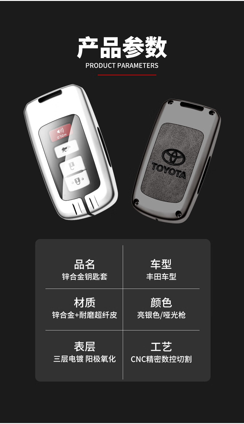 LONGSNOL is suitable for Toyota old key covers 12-15 Highlander Camry Cruiser car key cover buckle D type gun gray complete set