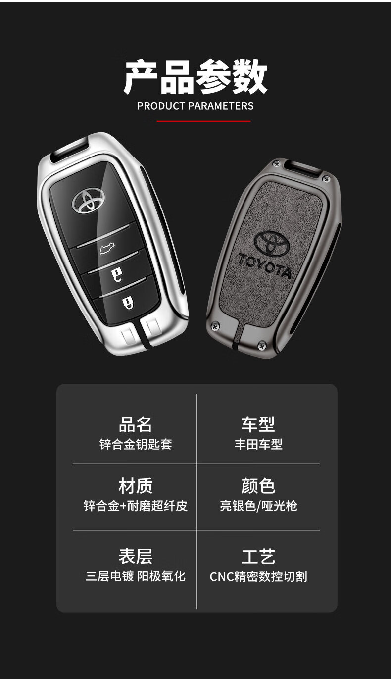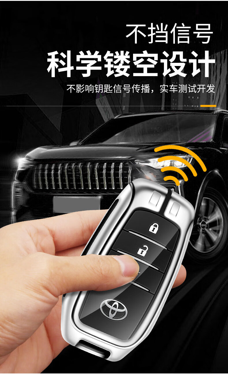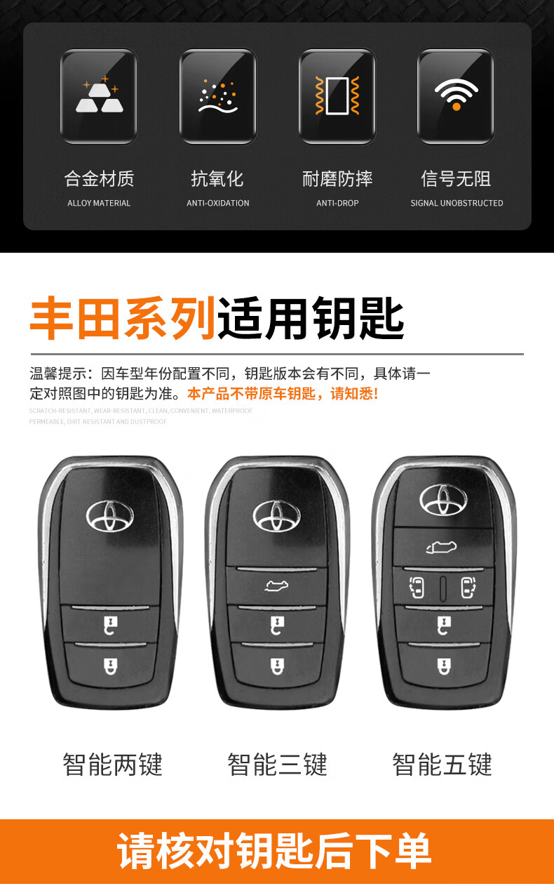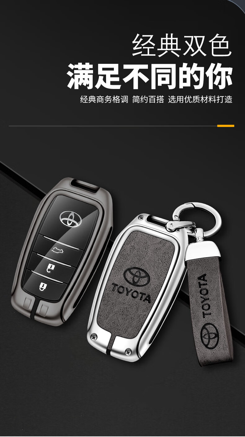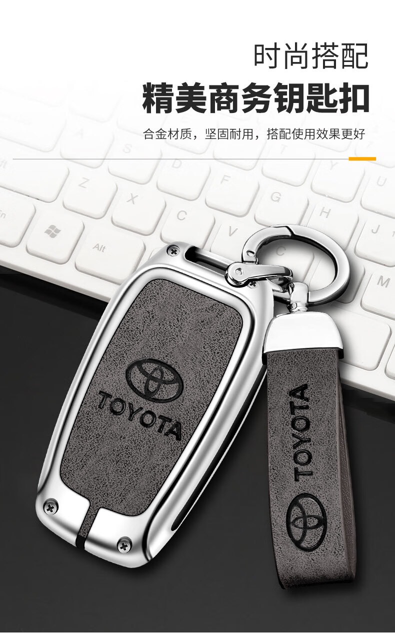 LONGSNOL suitable for Toyota key cover Highlander Corolla protective shell Crown Prado key bag Camry metal buckle B type gun gray complete set
