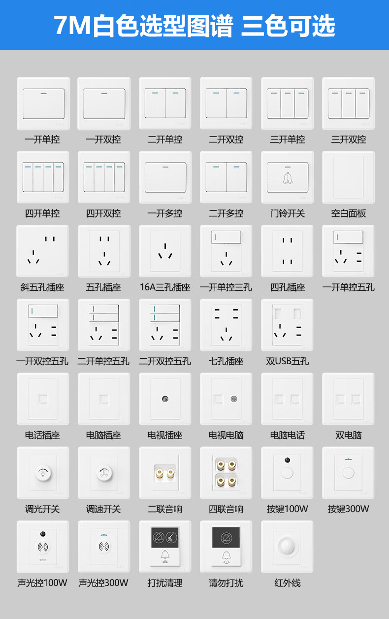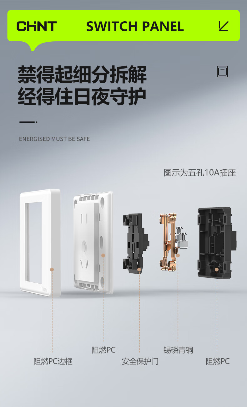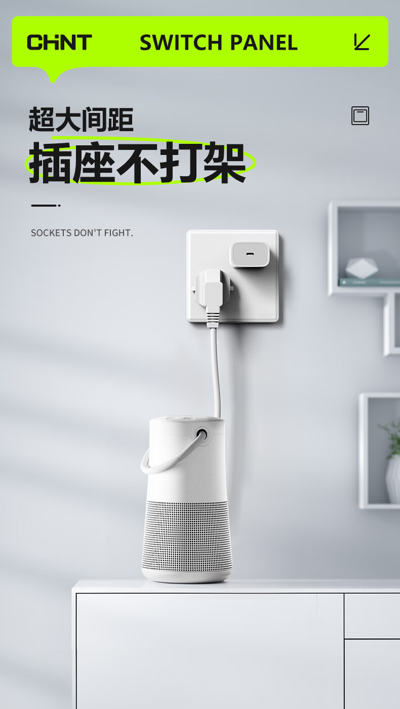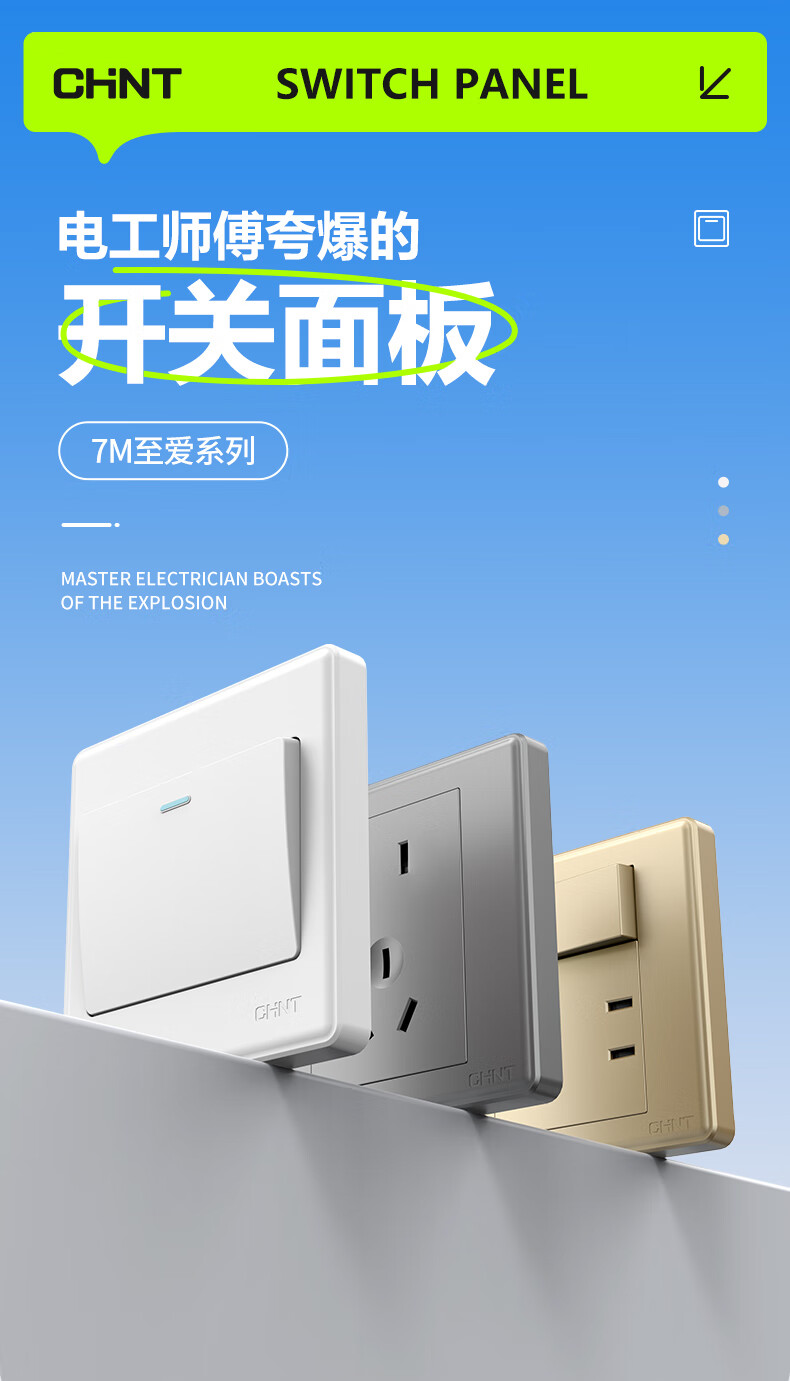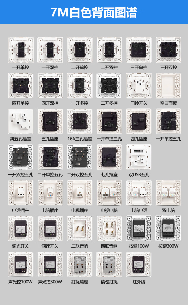 Chint (CHNT) switch socket panel household 86 type panel one open two open five-hole socket concealed wall switch household socket panel whole house five-hole package 7M white oblique five-hole socket 10 pieces