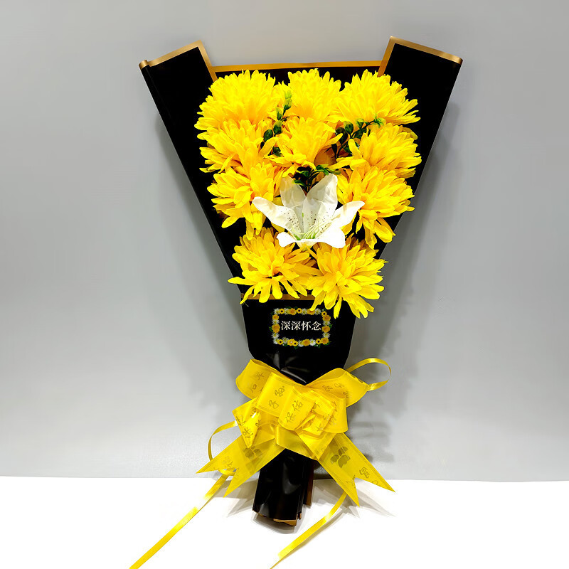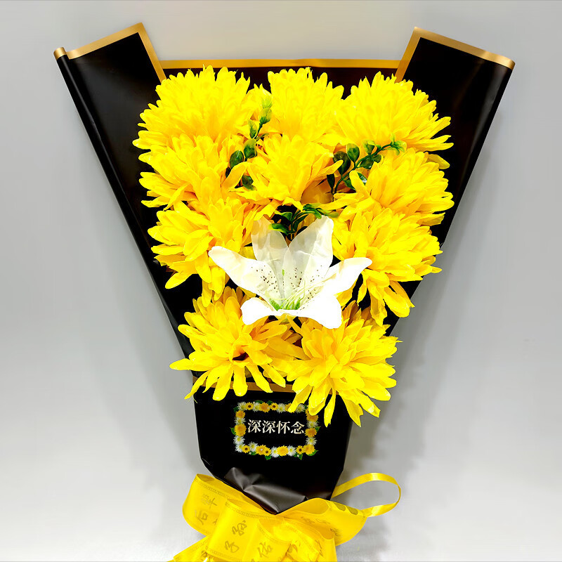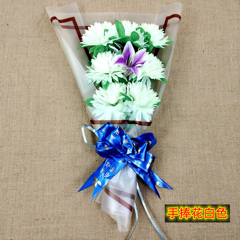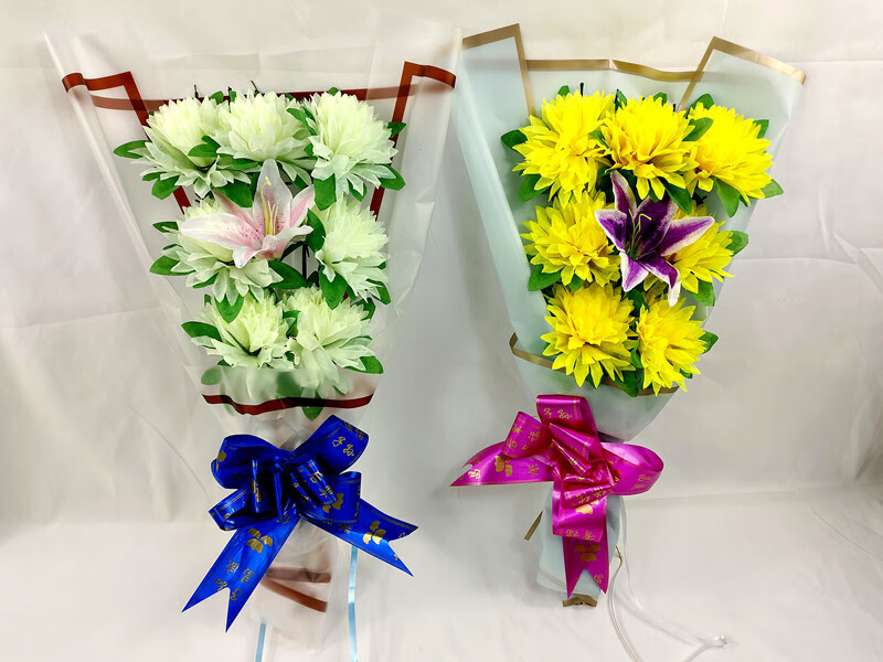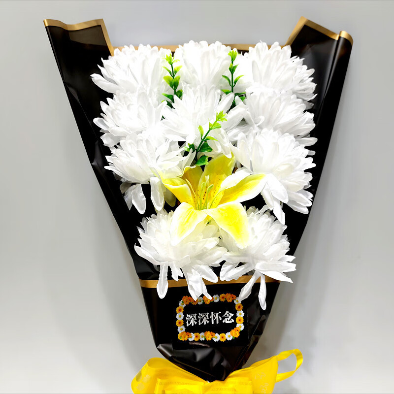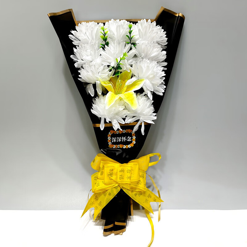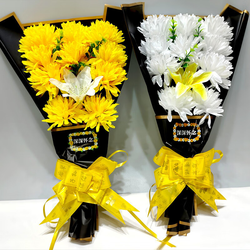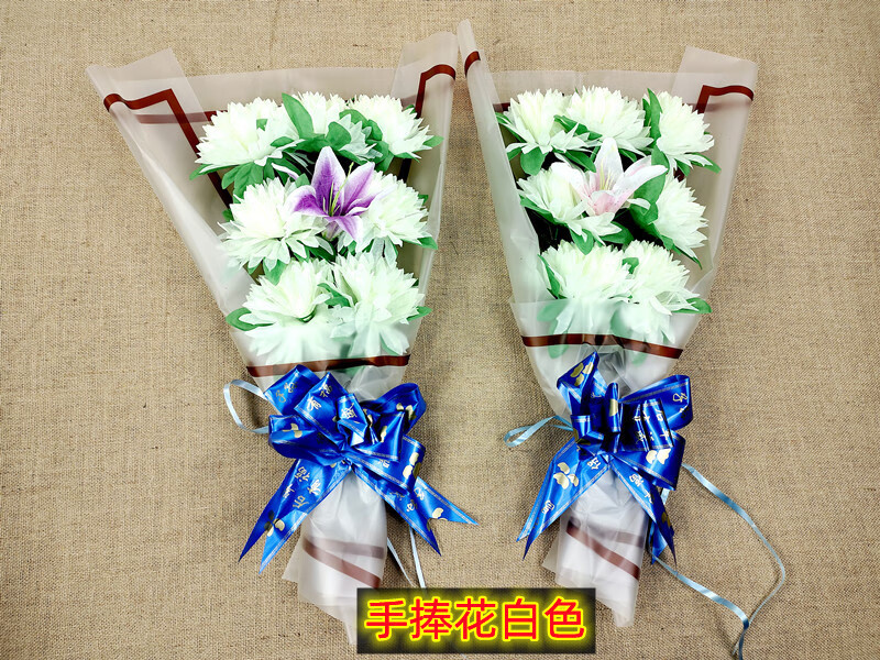 Qingming Festival tomb-sweeping hand holding flowers, silk flowers to offer sacrifices to the tomb, cemetery placement of tombstones, fake flowers, plastic flower decoration, hardcover yellow and white