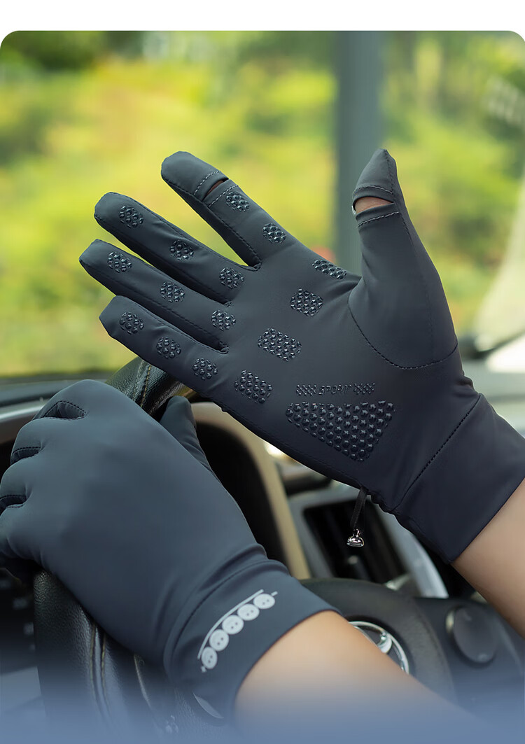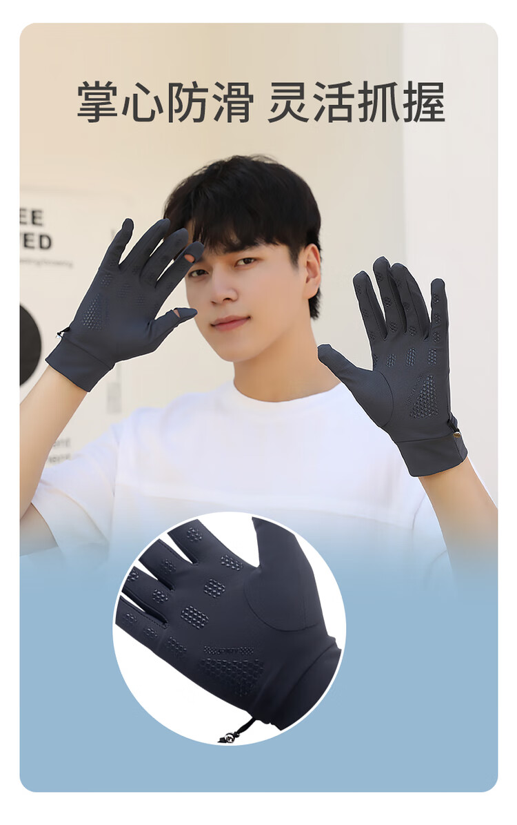 Banana Xia Sail Sunscreen Gloves Men's Ice Silk Thin Summer Cycling Driving Anti-Slip Cycling Fishing Anti-UV Touch Screen Men's Smiling Face Dark Gray 0 One Size