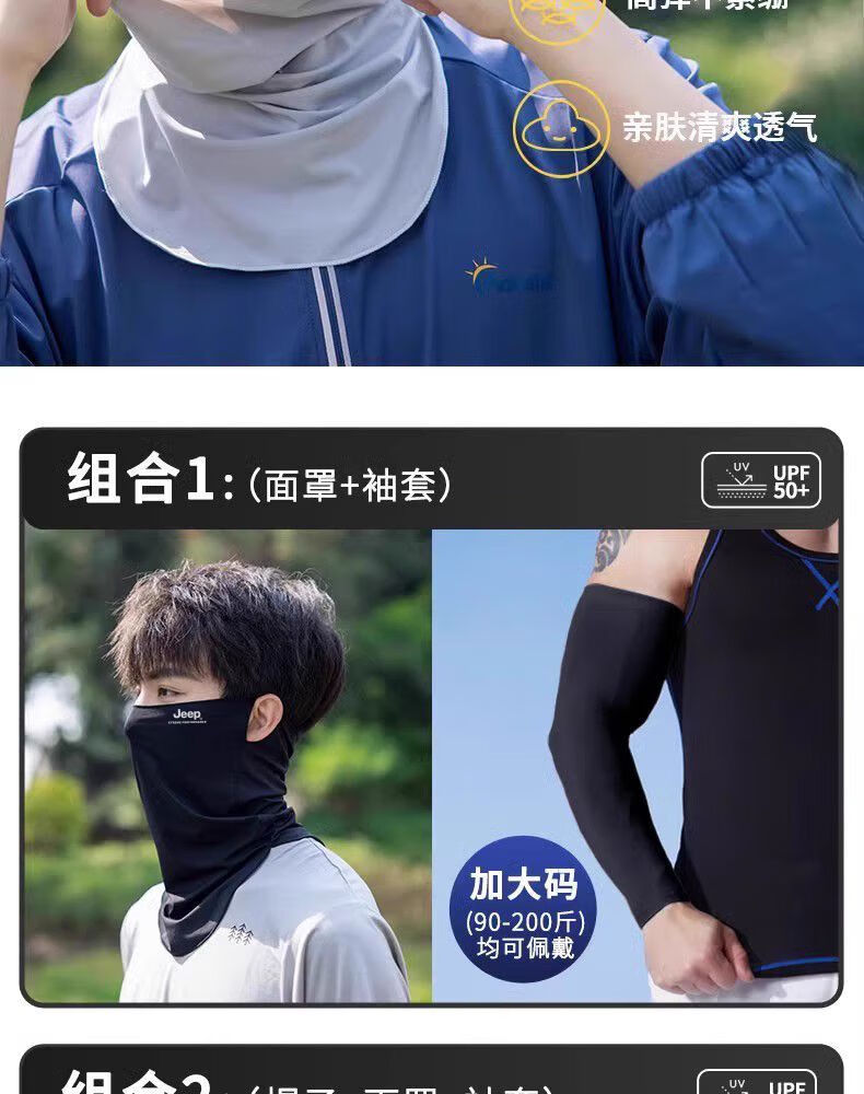 JEEPJEEP Jeep sun mask men's summer UV protection eye corners riding fishing fishing face mask men's neck protection sunshade black