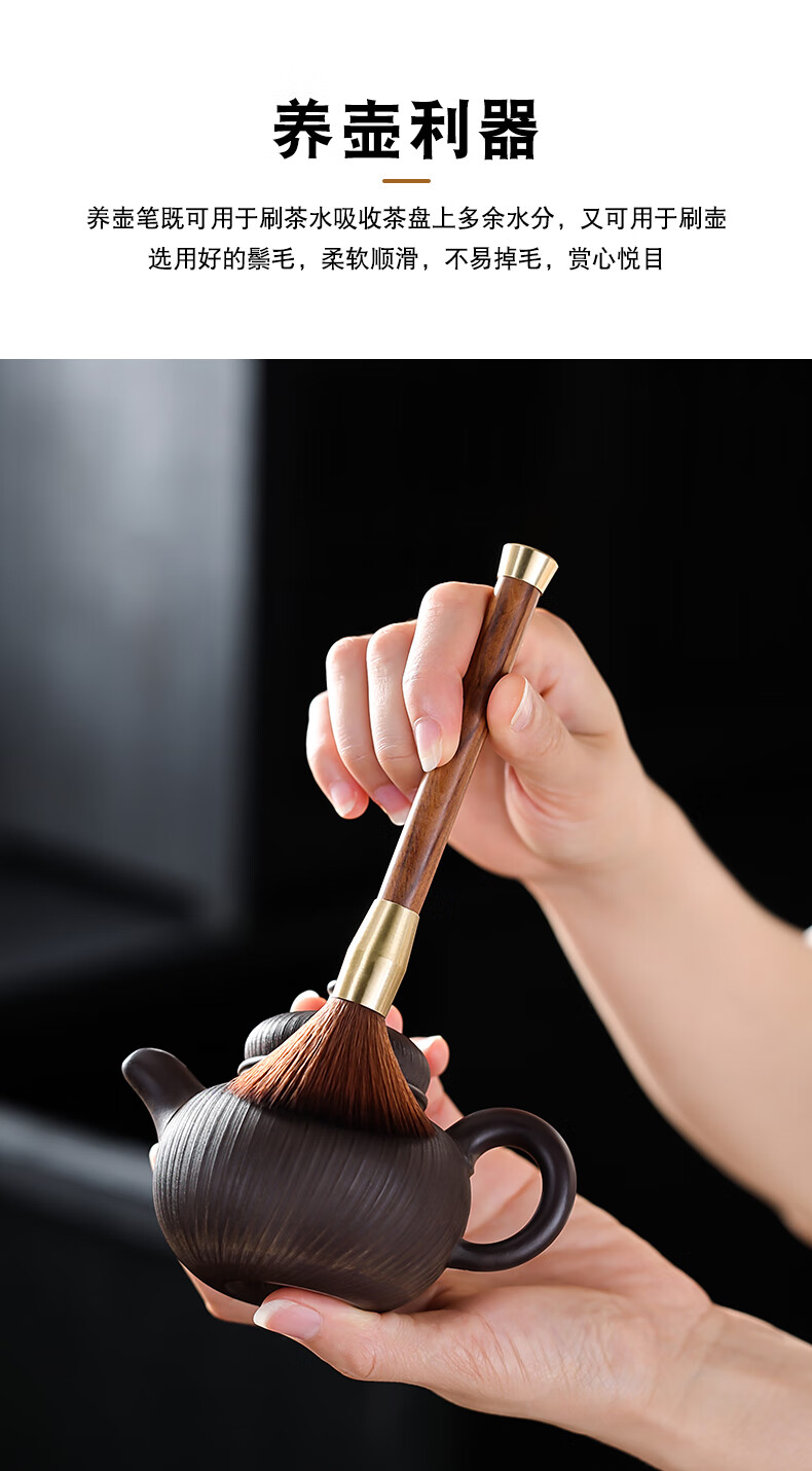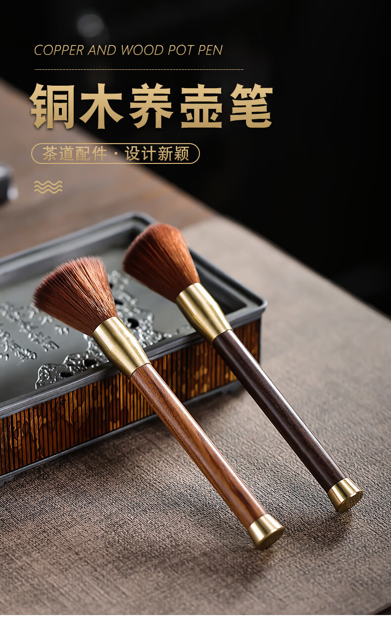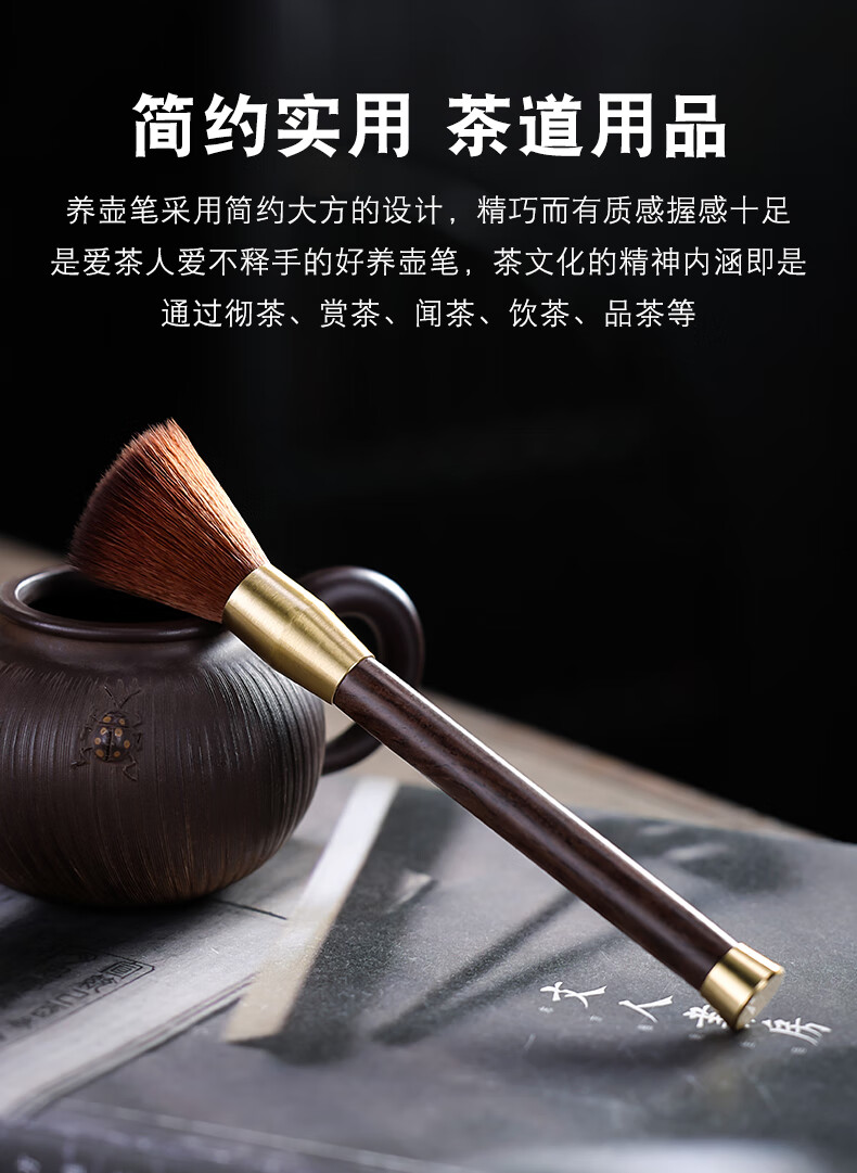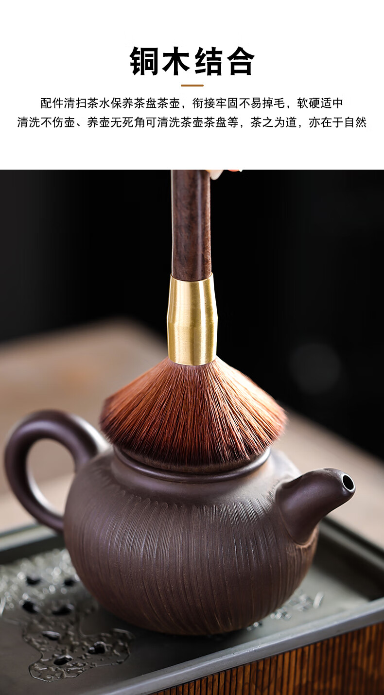 Mingqitang Copper and Wood Pot Care Pen Non-shedding Tea Brush Tea Ceremony Six Gentlemen Kung Fu Tea Set Accessories Tea Tray Cleaning Brush Copper and Wood Pot Care Pen (Ebony)