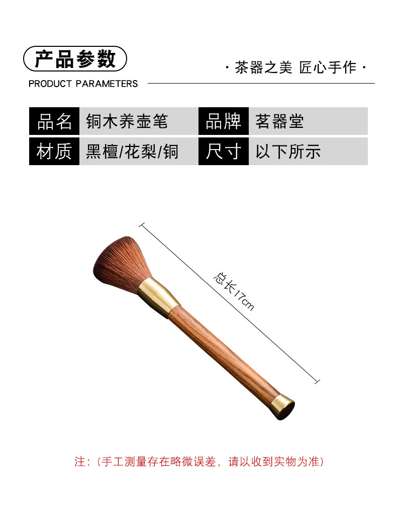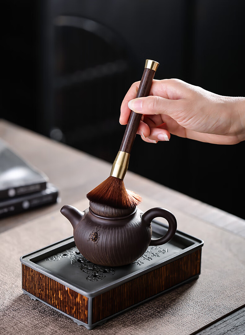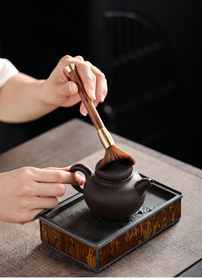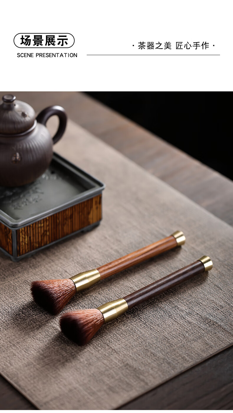 Mingqitang Copper and Wood Pot Care Pen Non-shedding Tea Brush Tea Ceremony Six Gentlemen Kung Fu Tea Set Accessories Tea Tray Cleaning Brush Copper and Wood Pot Care Pen (Ebony)