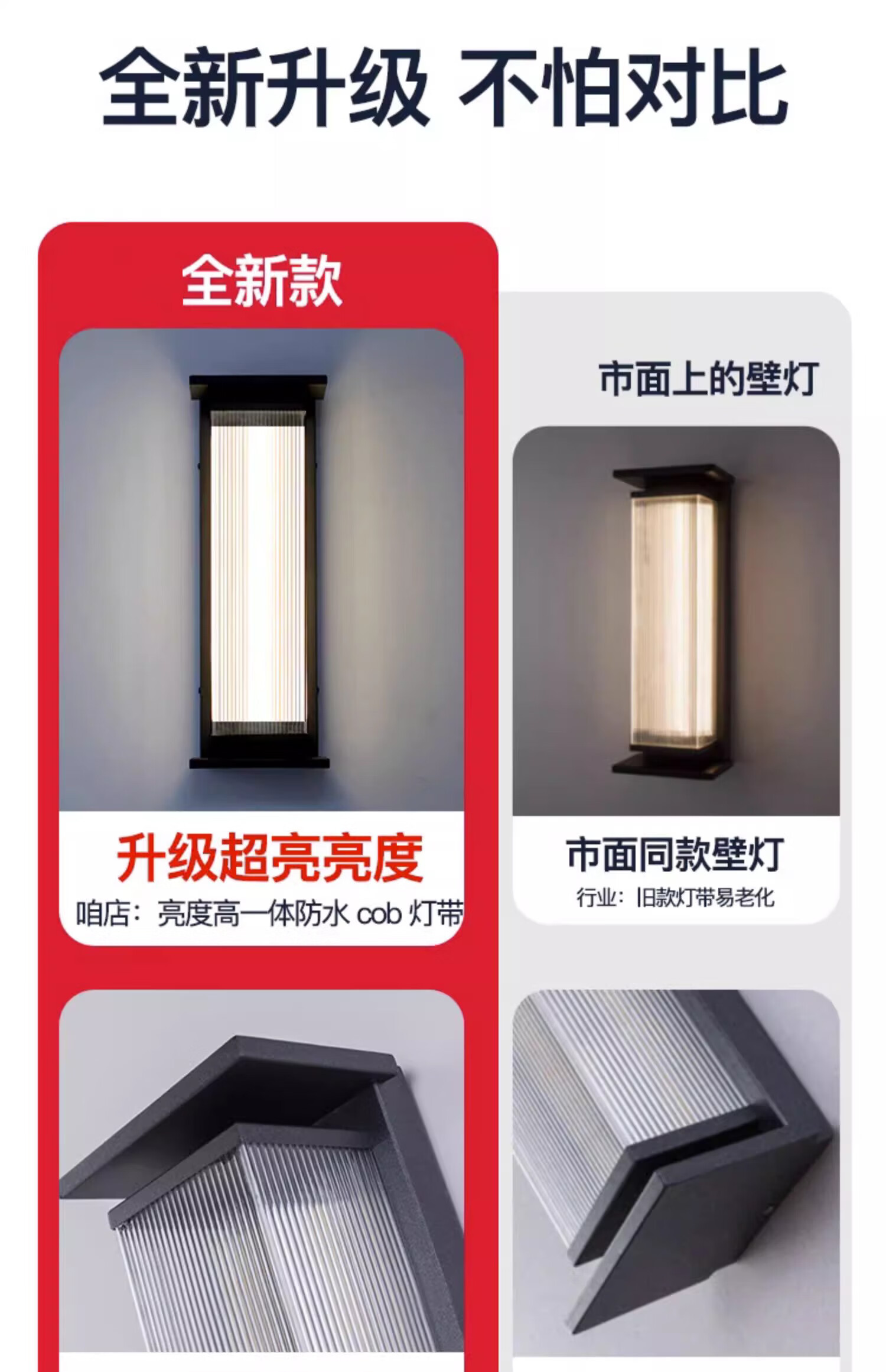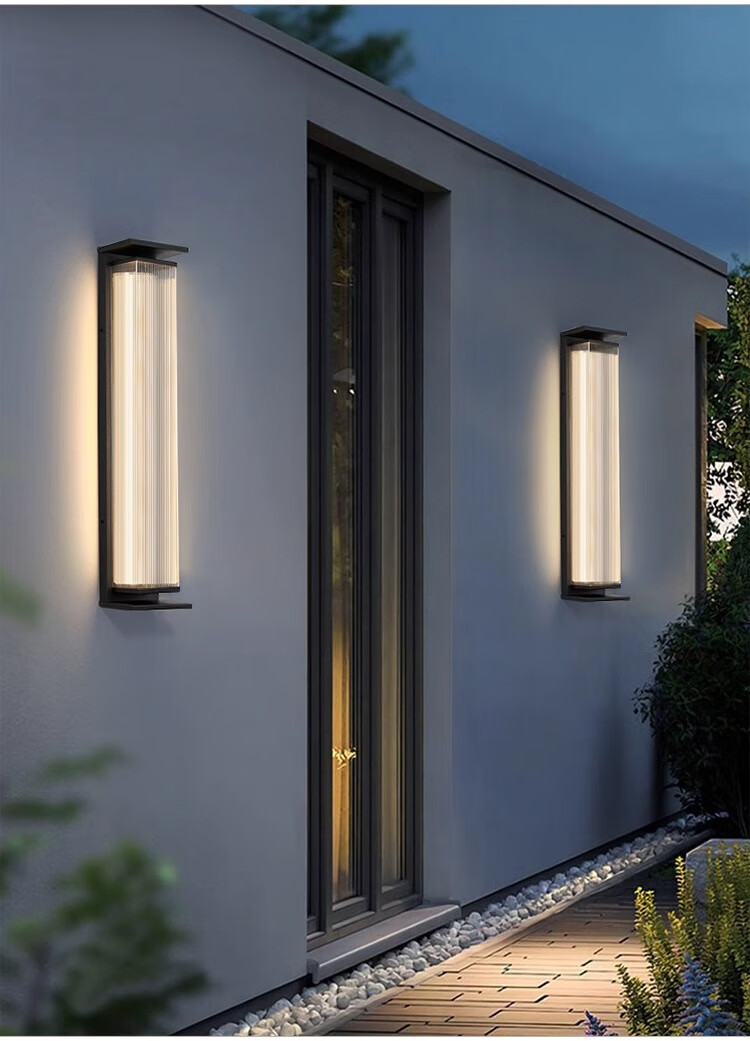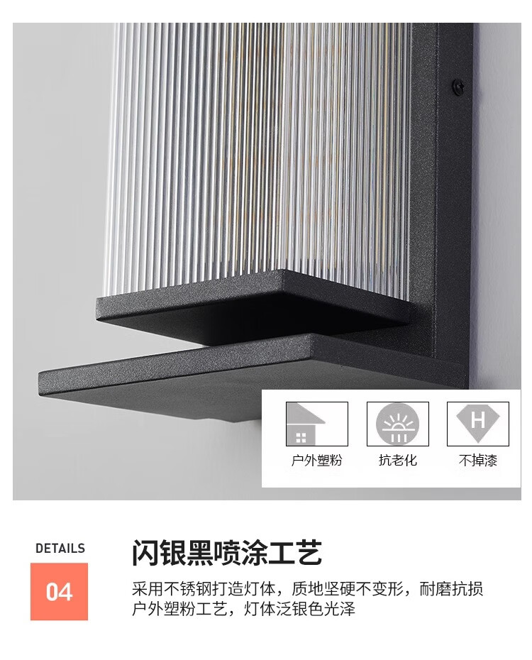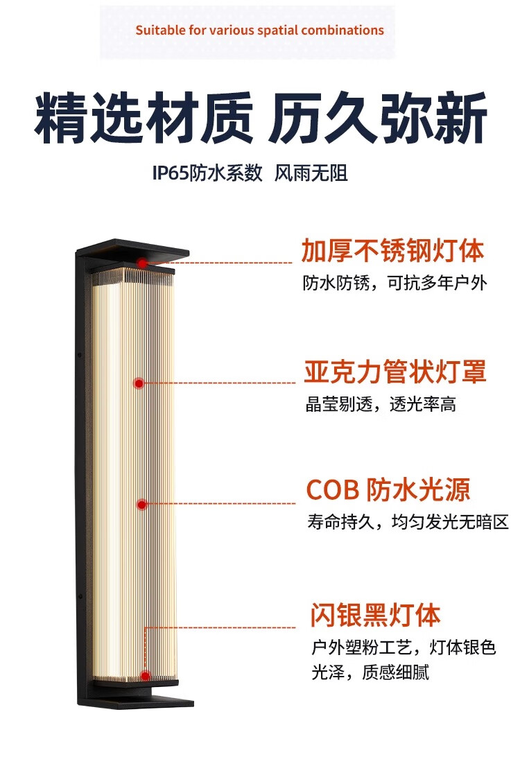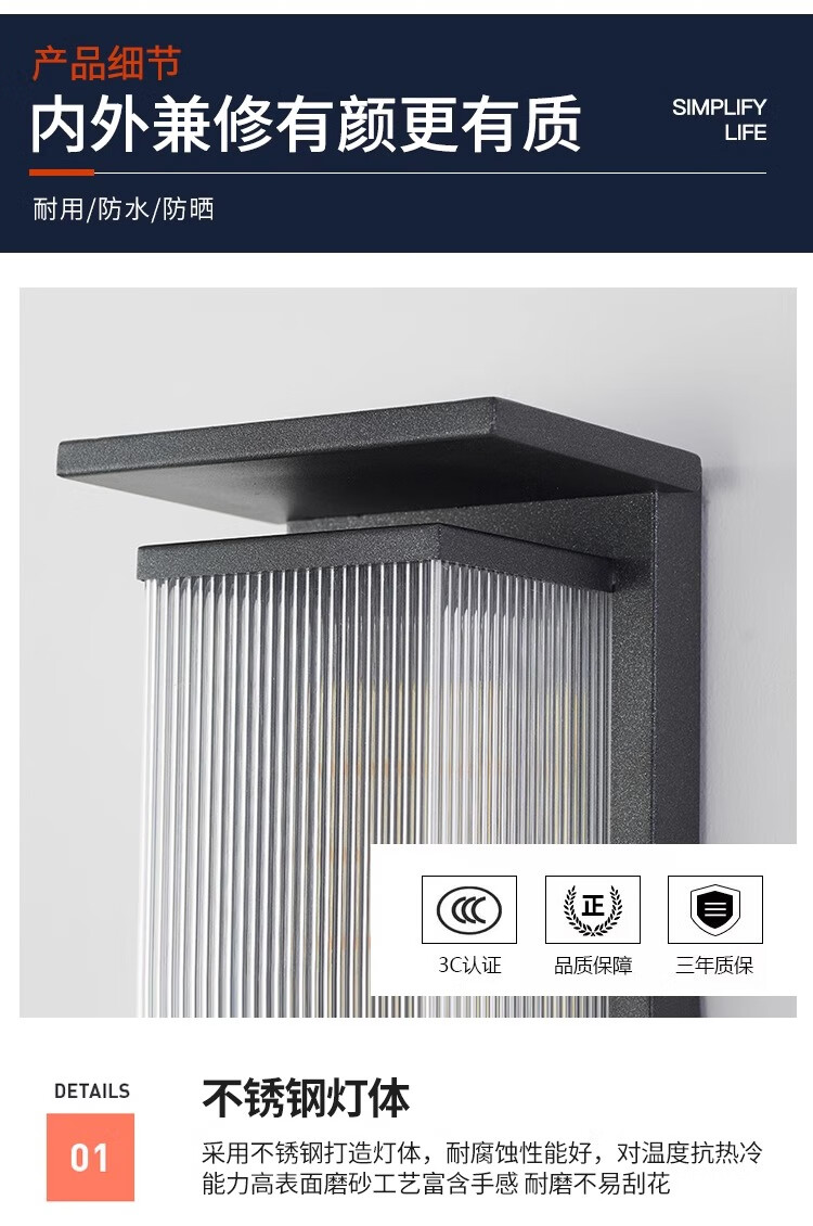 Shangda Outdoor Wall Lamp Waterproof Outdoor Terrace Solar Wall Lamp Exterior Wall Pillar Modern Simple Garden Strip Wall Lamp Default warm light, if you need other light colors, please contact customer service
