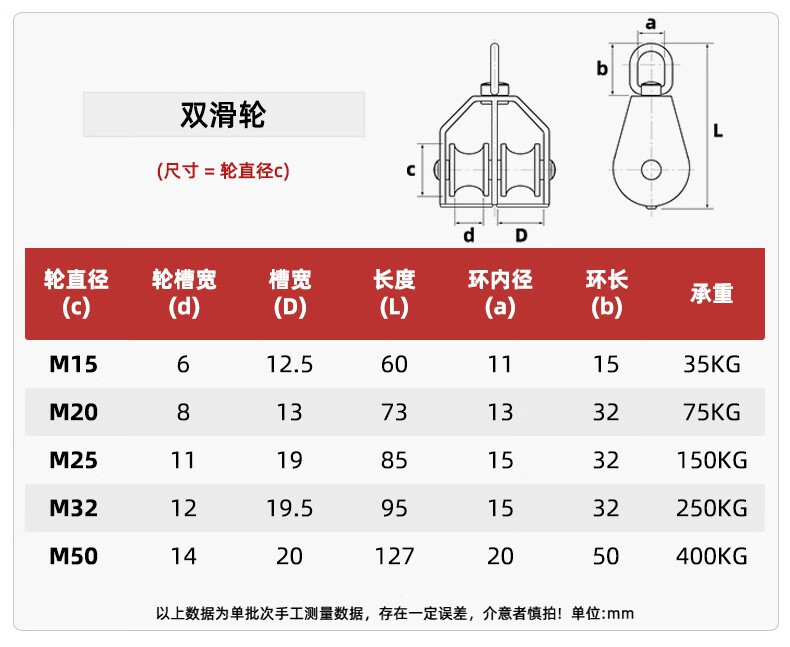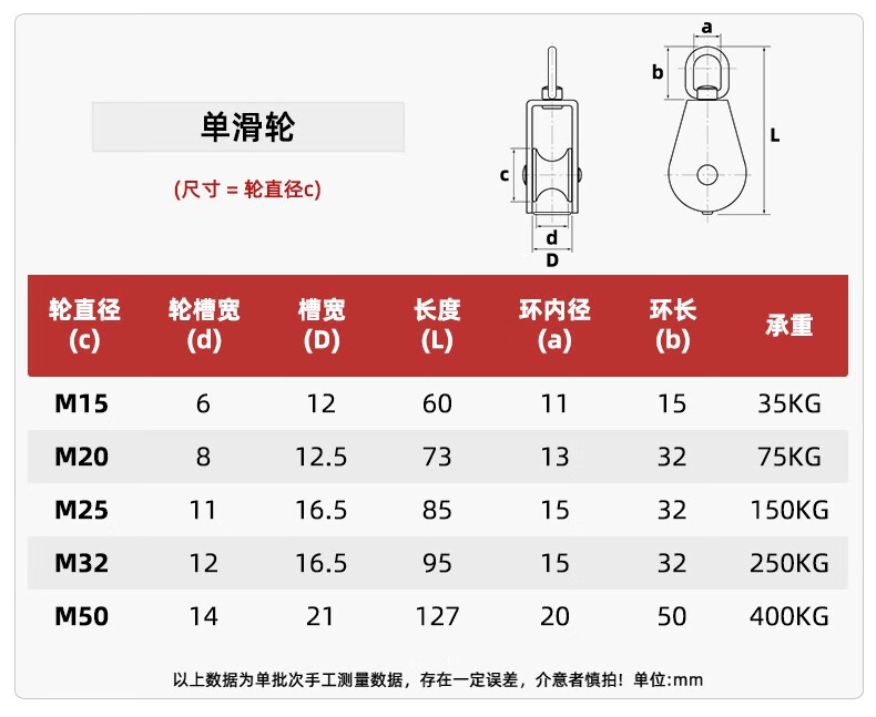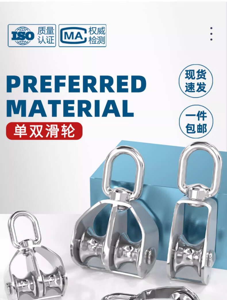 Tianzhuo Hardware 304 stainless steel pulley wire rope U-shaped lifting ring fixed pulley single and double wheel lifting pulley hook labor-saving tool M20 single wheel suitable for ropes below 8 mm