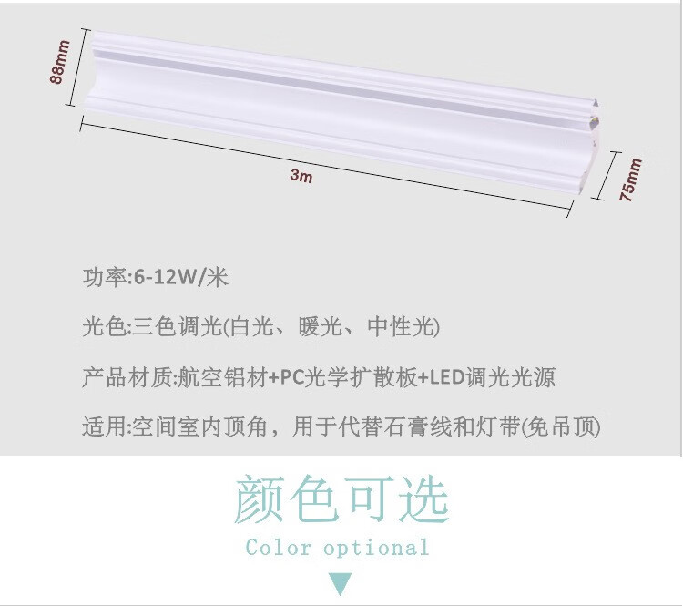 Shixia exposed wall washer lamp gypsum line lamp linear lamp luminous top corner line lamp free ceiling shadow corner corner light return light trough gypsum line light trough - white cover