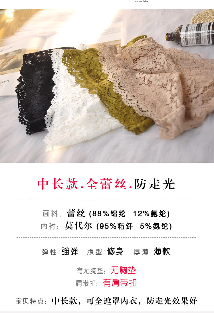 LangSha (LangSha) lace tube top women's bra-wrapped bra without padding long bottoming vest anti-exposure gathered sexy suspender summer thin style 1 piece white (7719) one size fits all 85-120Jin Jin is equal to 0.5 kg