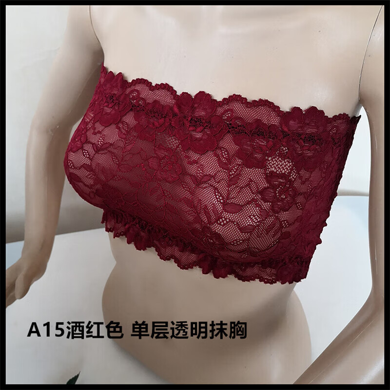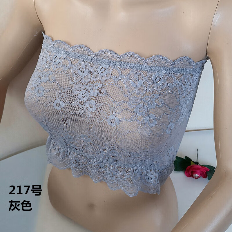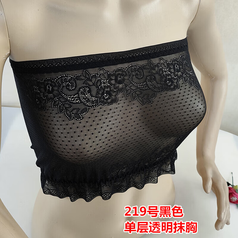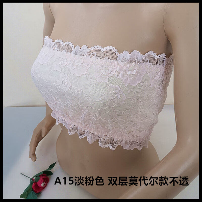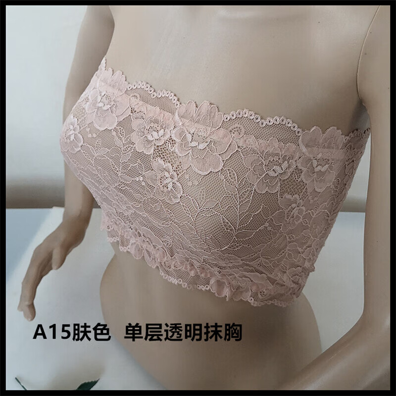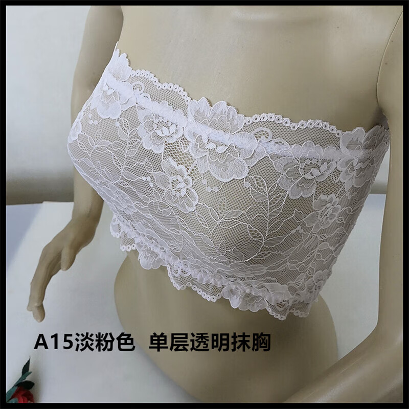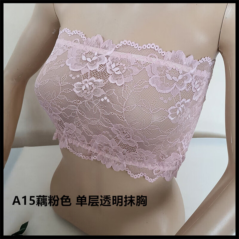 LangSha thin and transparent lace tube top bra for women strapless bottoming anti-short style sexy lotus root pink breathable wrap bra tube top lotus root pink A15 single layer transparent tube top one size fits all semi-transparent sexy