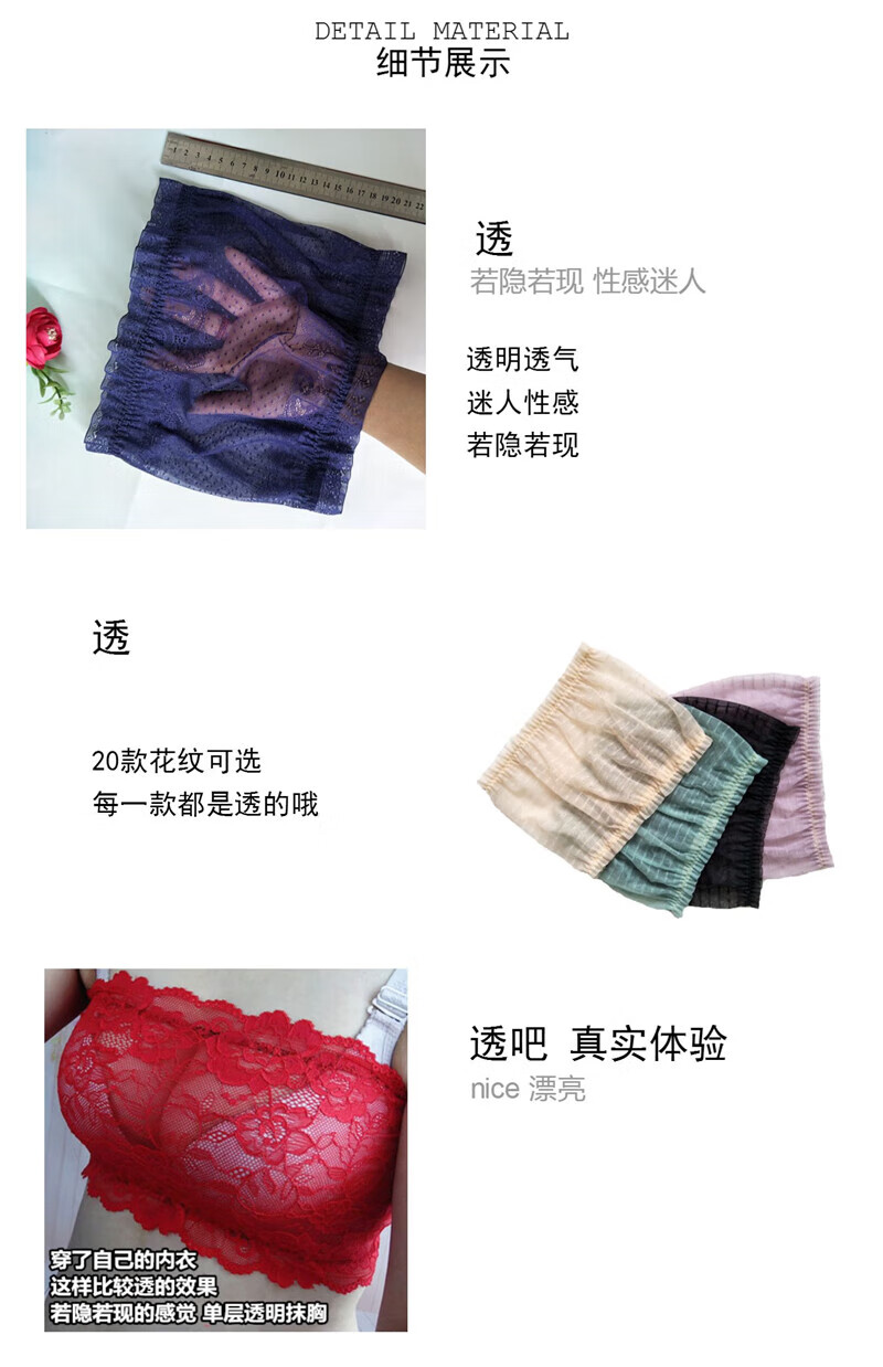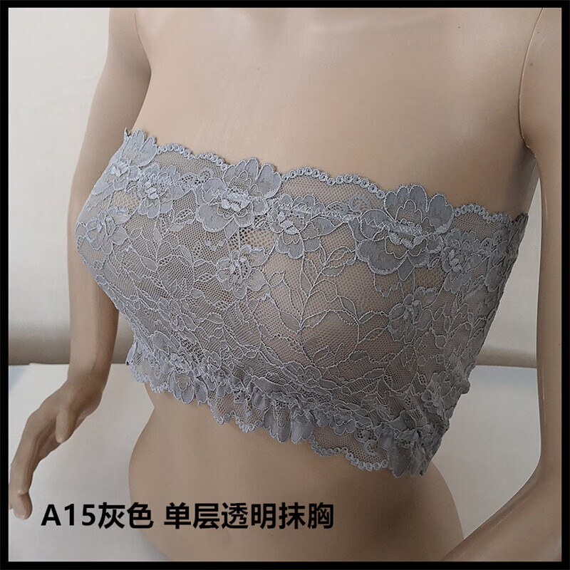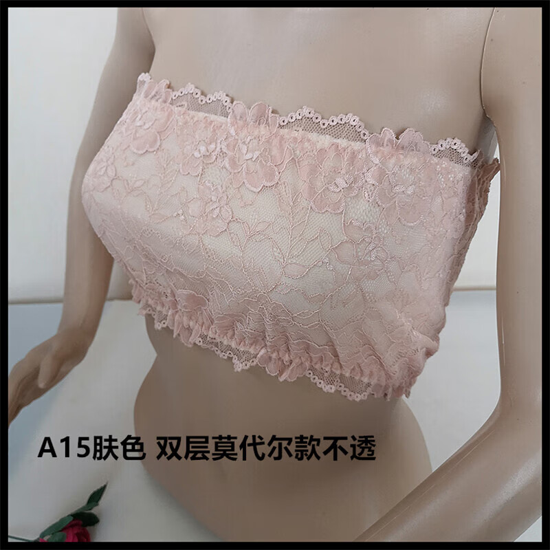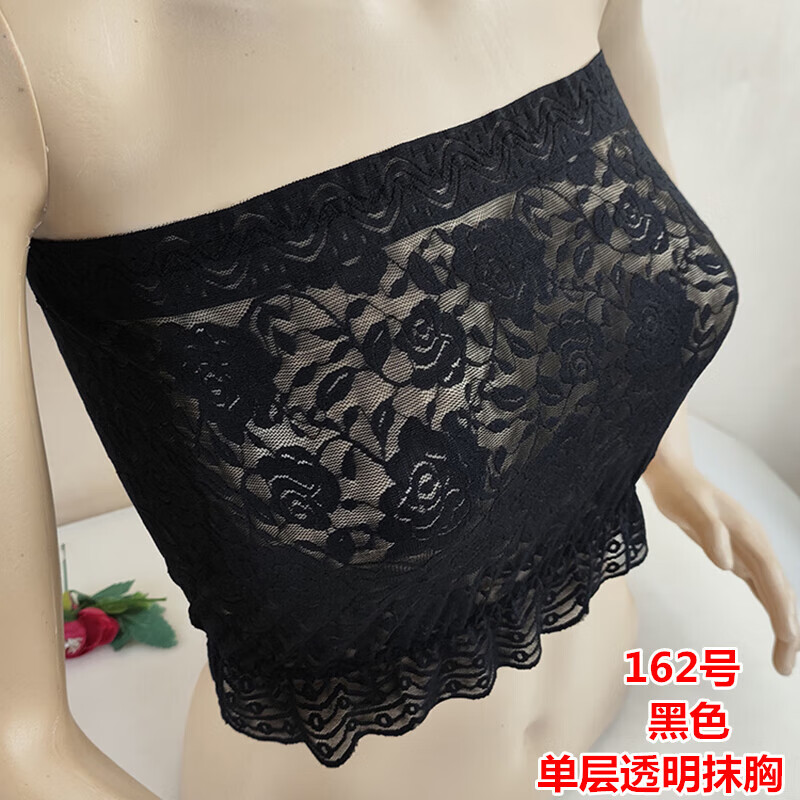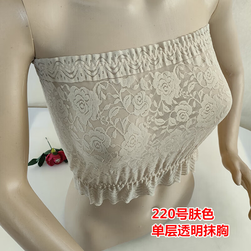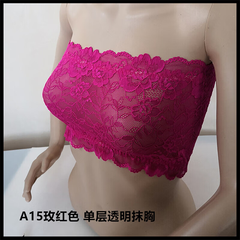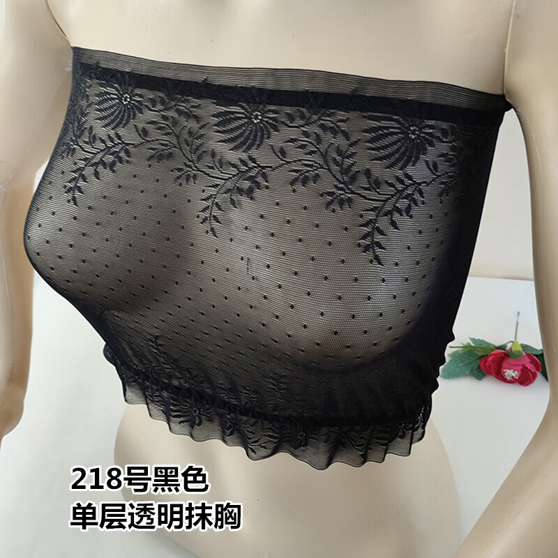 LangSha thin and transparent lace tube top bra for women strapless bottoming anti-short style sexy lotus root pink breathable wrap bra tube top lotus root pink A15 single layer transparent tube top one size fits all semi-transparent sexy
