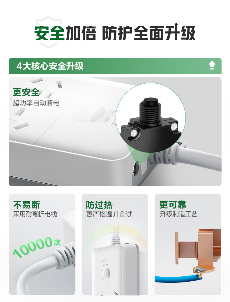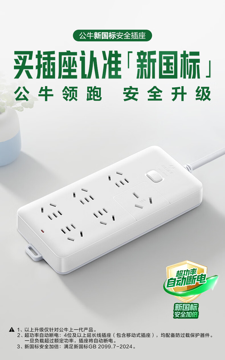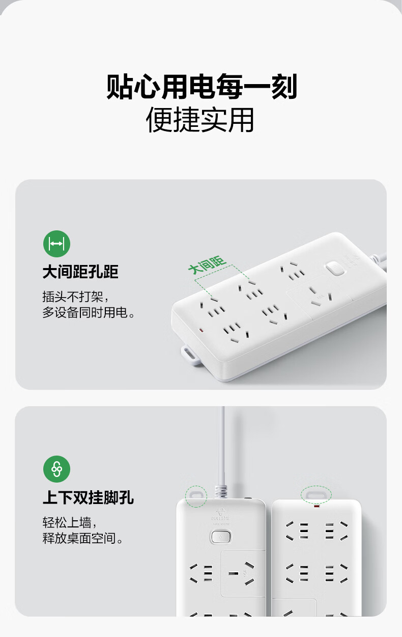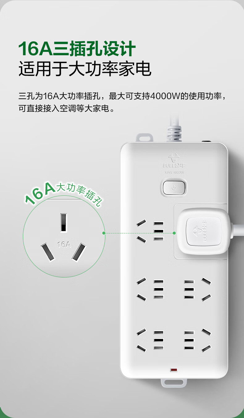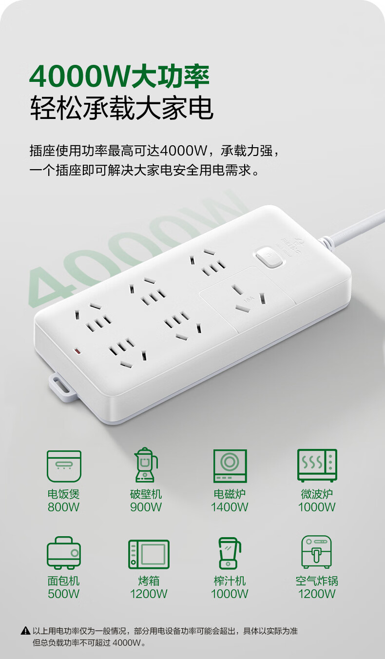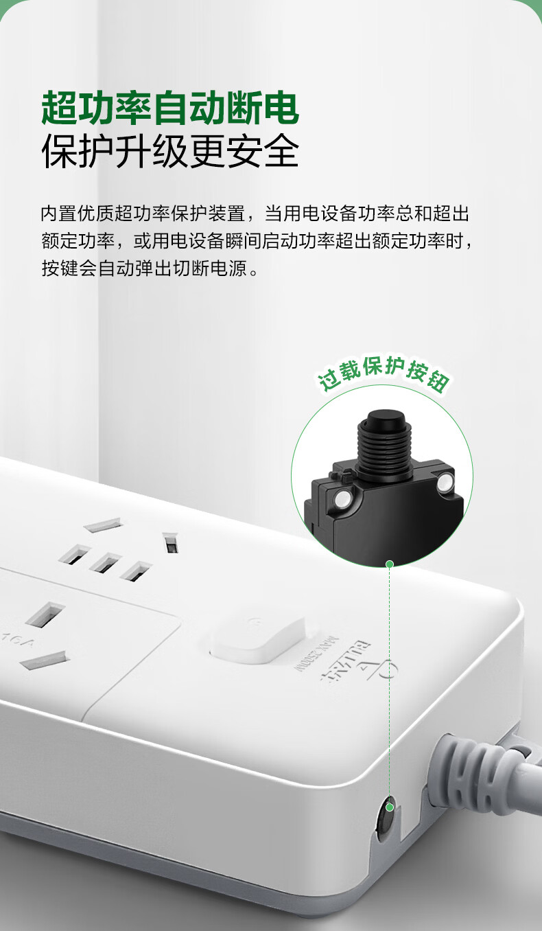 BULL-Steckdose mit mehreren Löchern und langer Leitung, multifunktionale elektrische Steckplatine, Schleppleiste mit Kinderschutztür/neuer nationaler Standard/Steckdose/Klemmenplatine, 3-Positionen-Hauptsteuerung 0,5 Meter GN-B5120