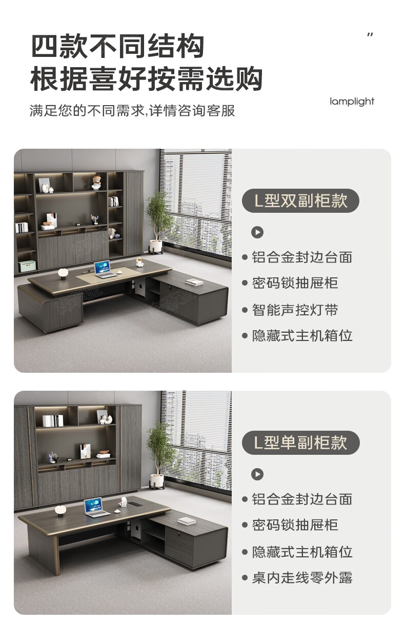 Semphia E0 grade desk boss desk workbench light luxury senior president desk office manager desk boss desk and chair combination E0 grade plate 1.8m boss table short cabinet - source factory