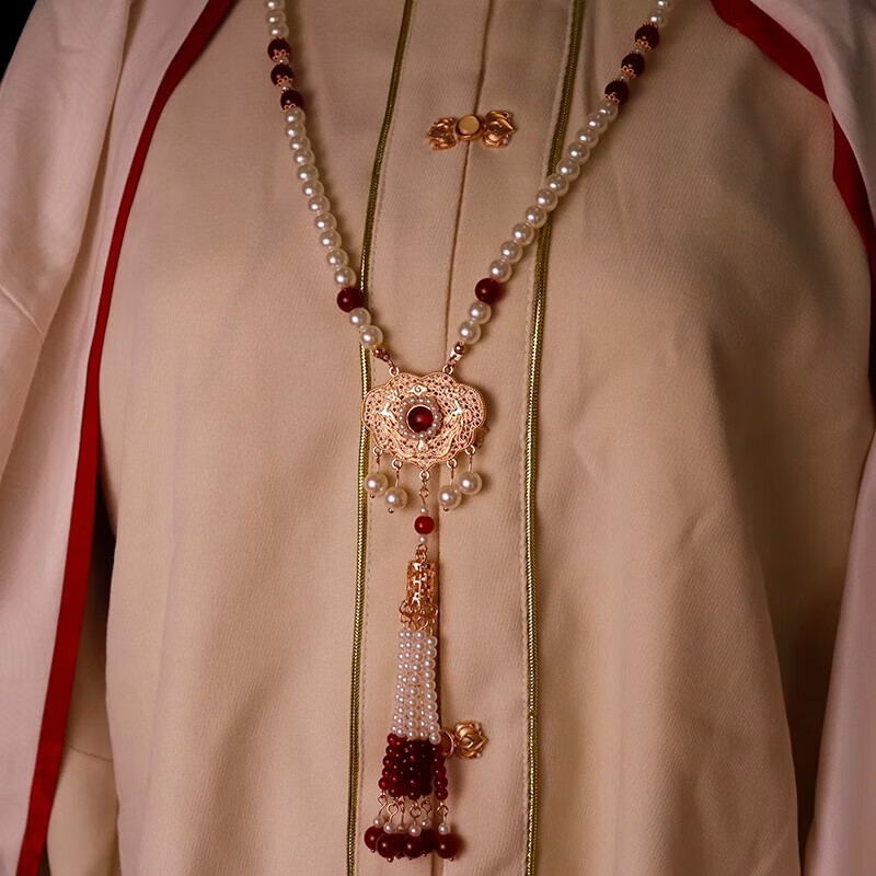 Pei Nanwei, ancient style cloud-backed tassel necklace, horse-faced skirt accessories, retro pendant, Hanfu soft necklace, national style cheongsam jewelry, 1 red necklace with pressed placket