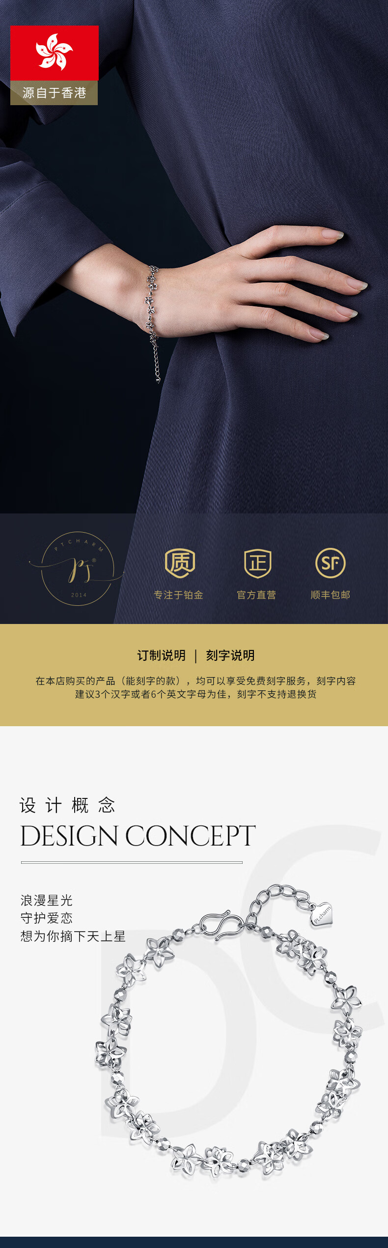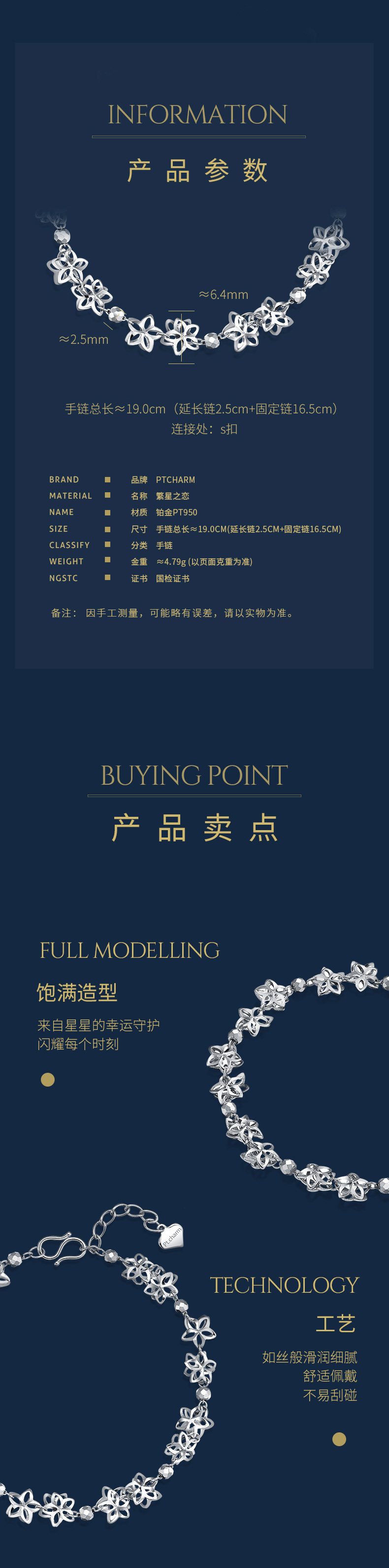 Pt.Charm Personalized Romantic PT950 Platinum Bracelet Women's Carambola Chain Ice Flower Platinum Bracelet Birthday Gift for Girlfriend If it is not in stock, it can be customized. Take 5g as an example