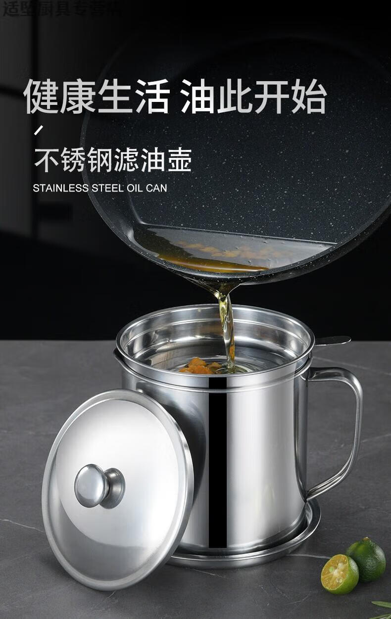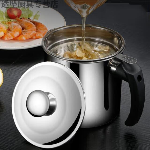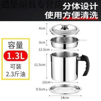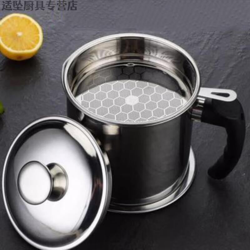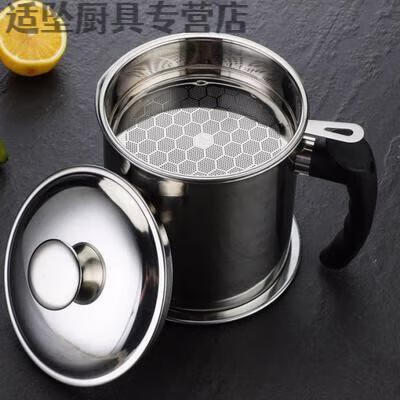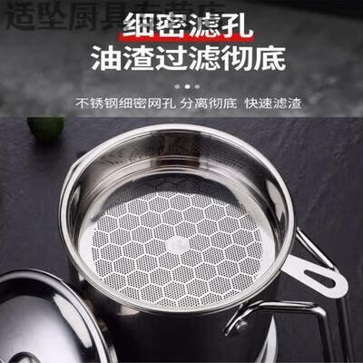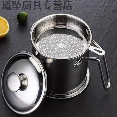 Tuojin Oil Leaking Net Kettle Stainless Steel Household Oil Storage Tank with Strainer with Cover Kitchen Lard Residue Drainage Filter Thickening.Pip 1.3L