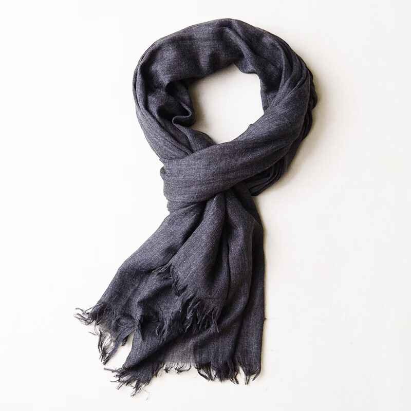 Spring and summer thin men's scarf dark gray versatile black solid color cotton and linen young people's scarf men and women casual black 190x100cm
