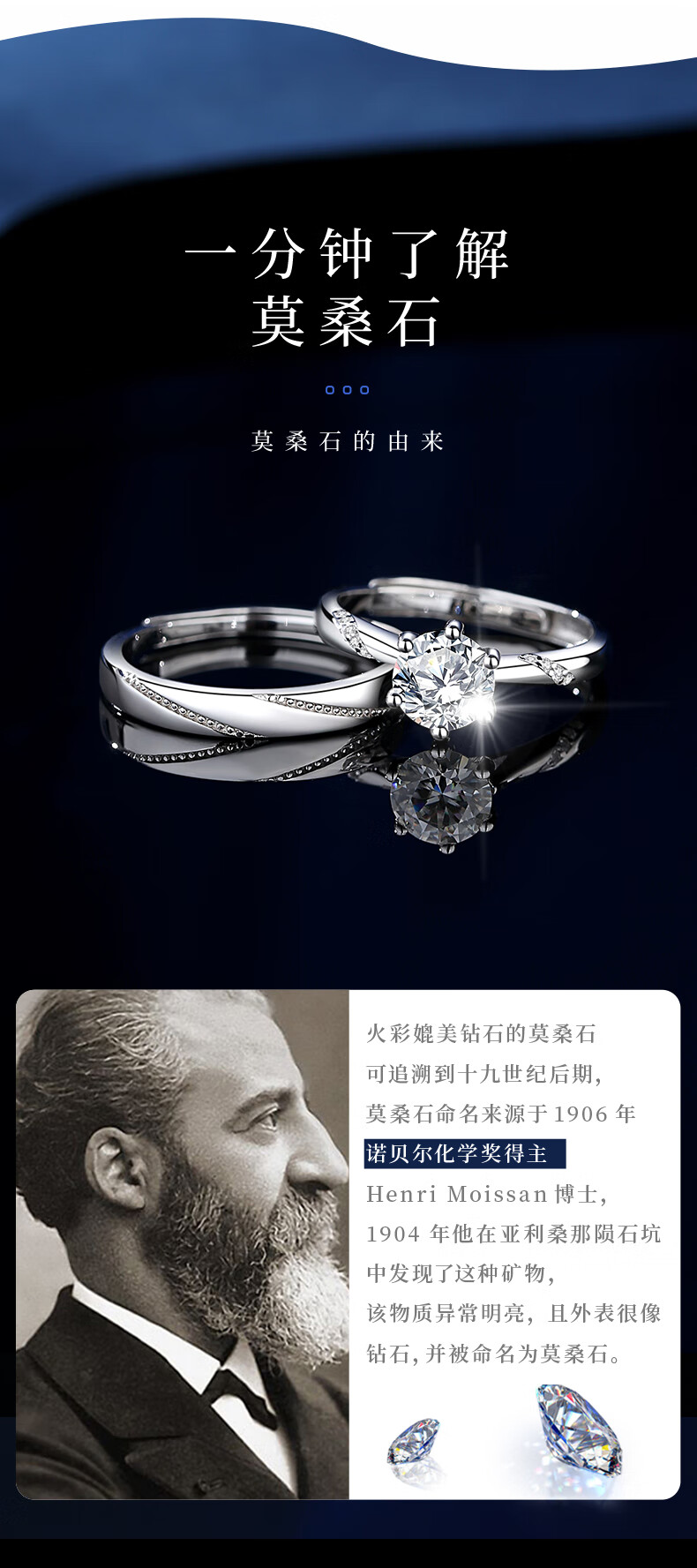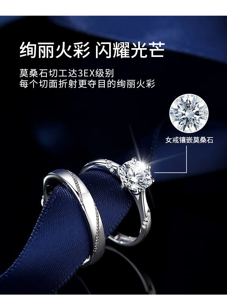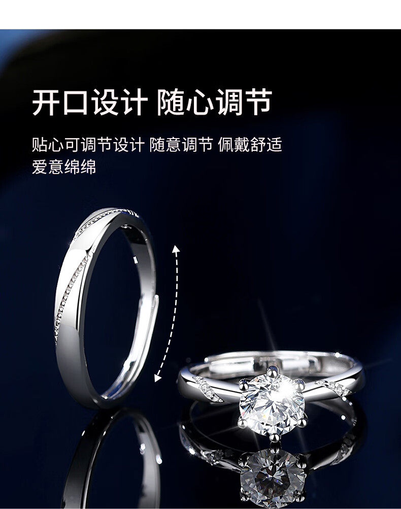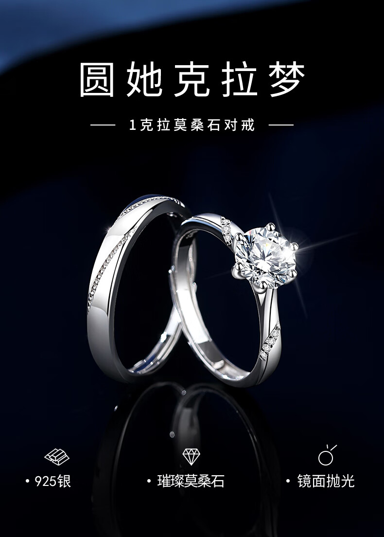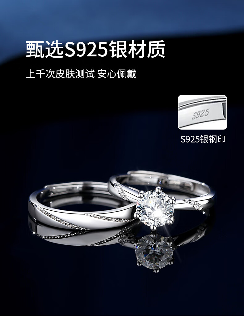 银千惠纯银一克拉莫桑钻石情侣戒指一对钟情久久对戒生日礼物送女朋友 情侣戒指一对/七仓配送+当次日达 求结婚纪念日礼物/配首饰证书/真爱承诺定制联系客服