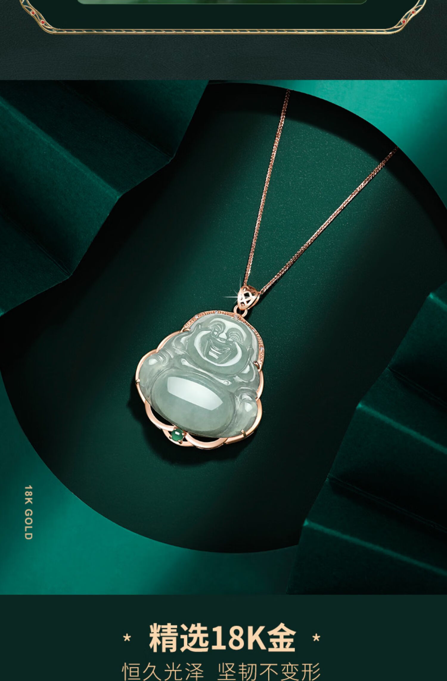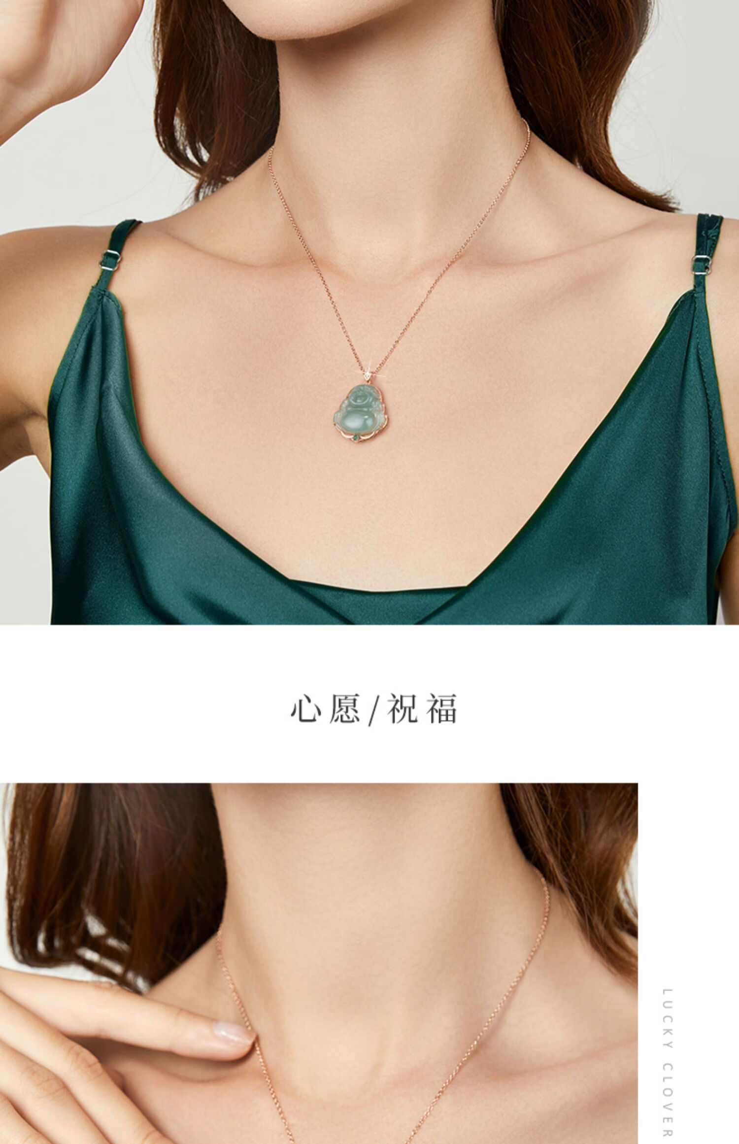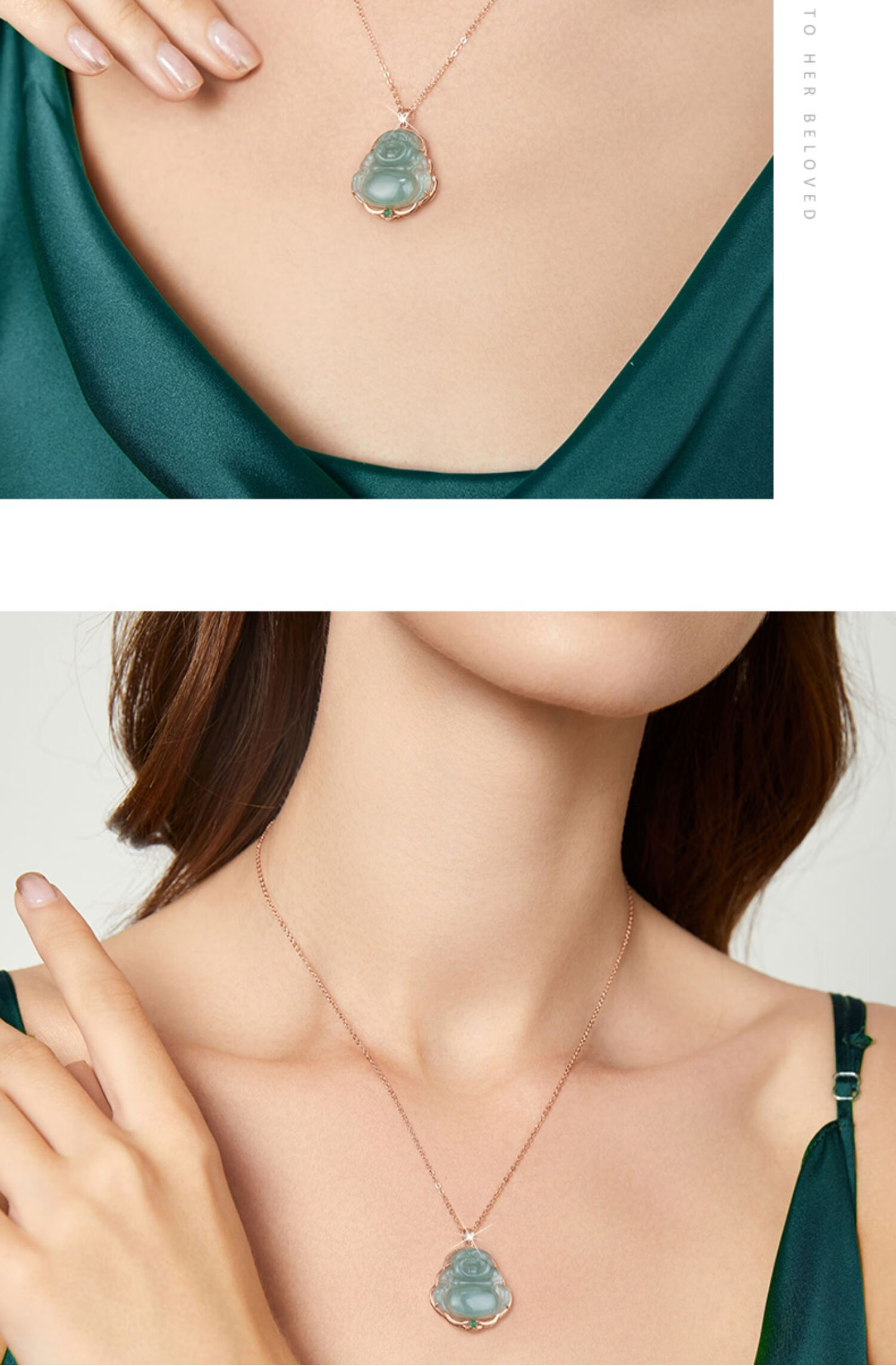 Shlessler Luxury Jewelry Chinese Valentine's Day Gift Necklace Women's High-end Jade Birthday Gift for Mother Golden Maitreya Buddha Brand Gift Box + SF Express