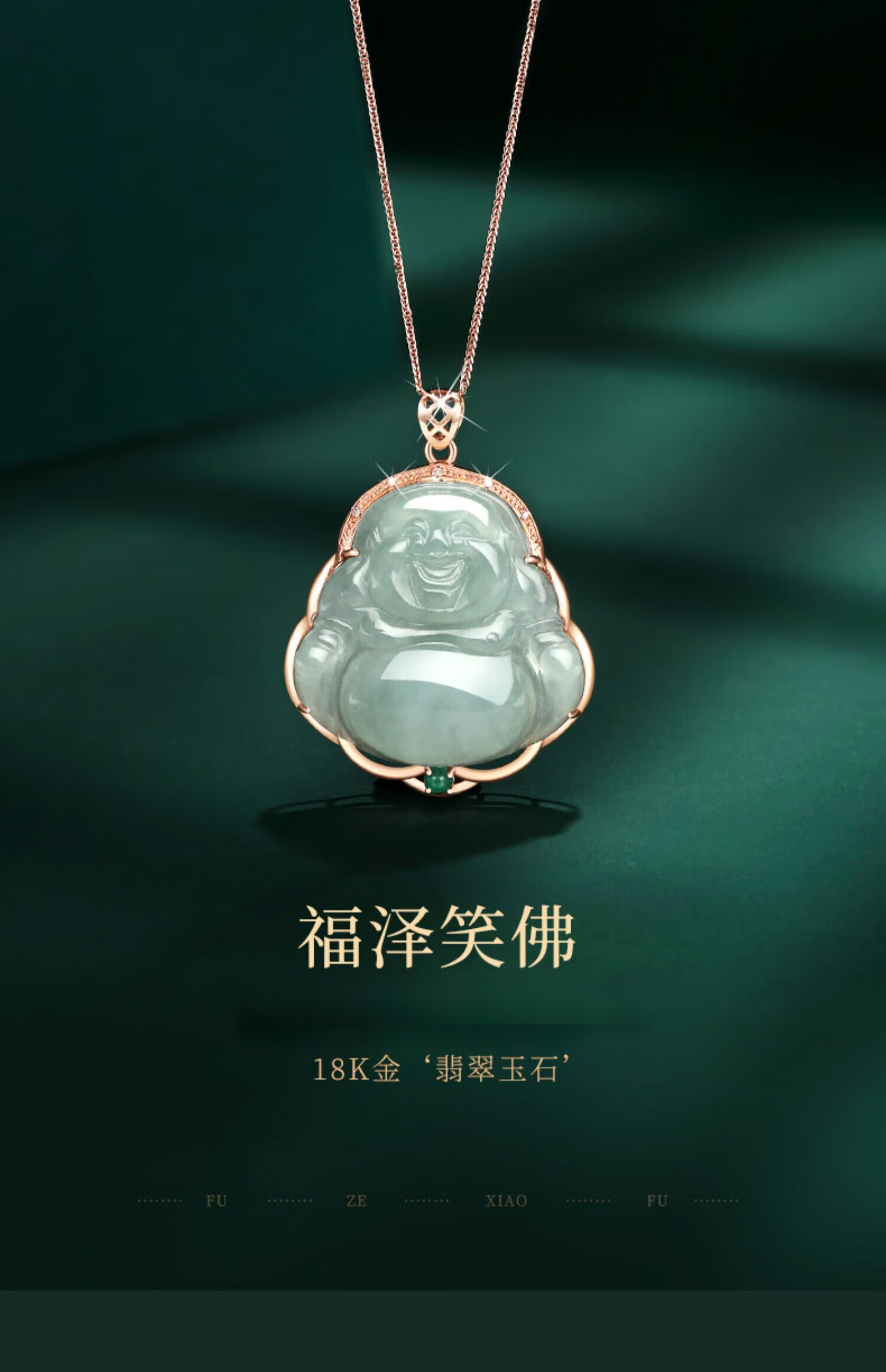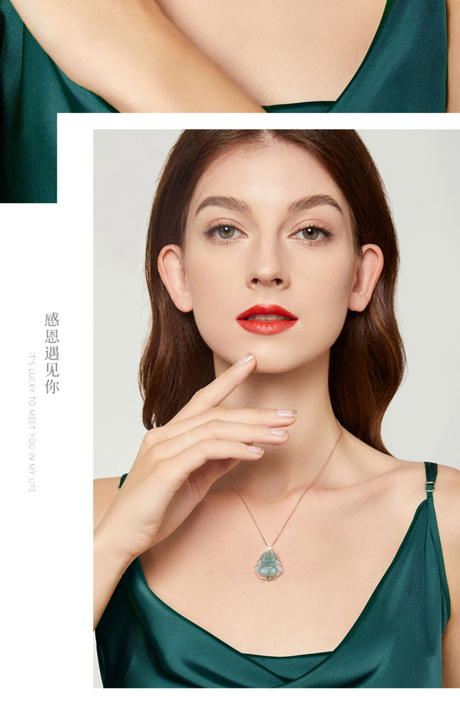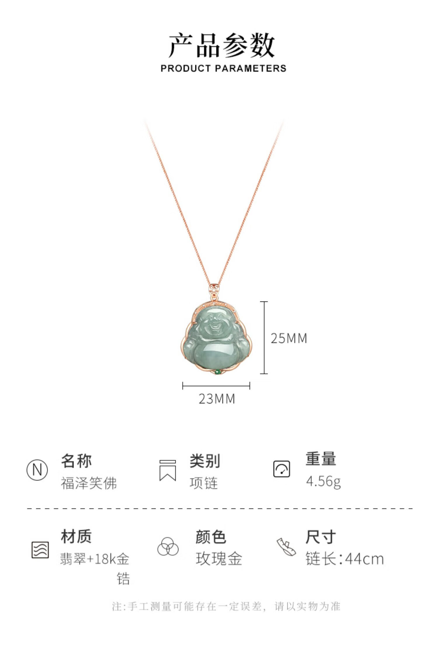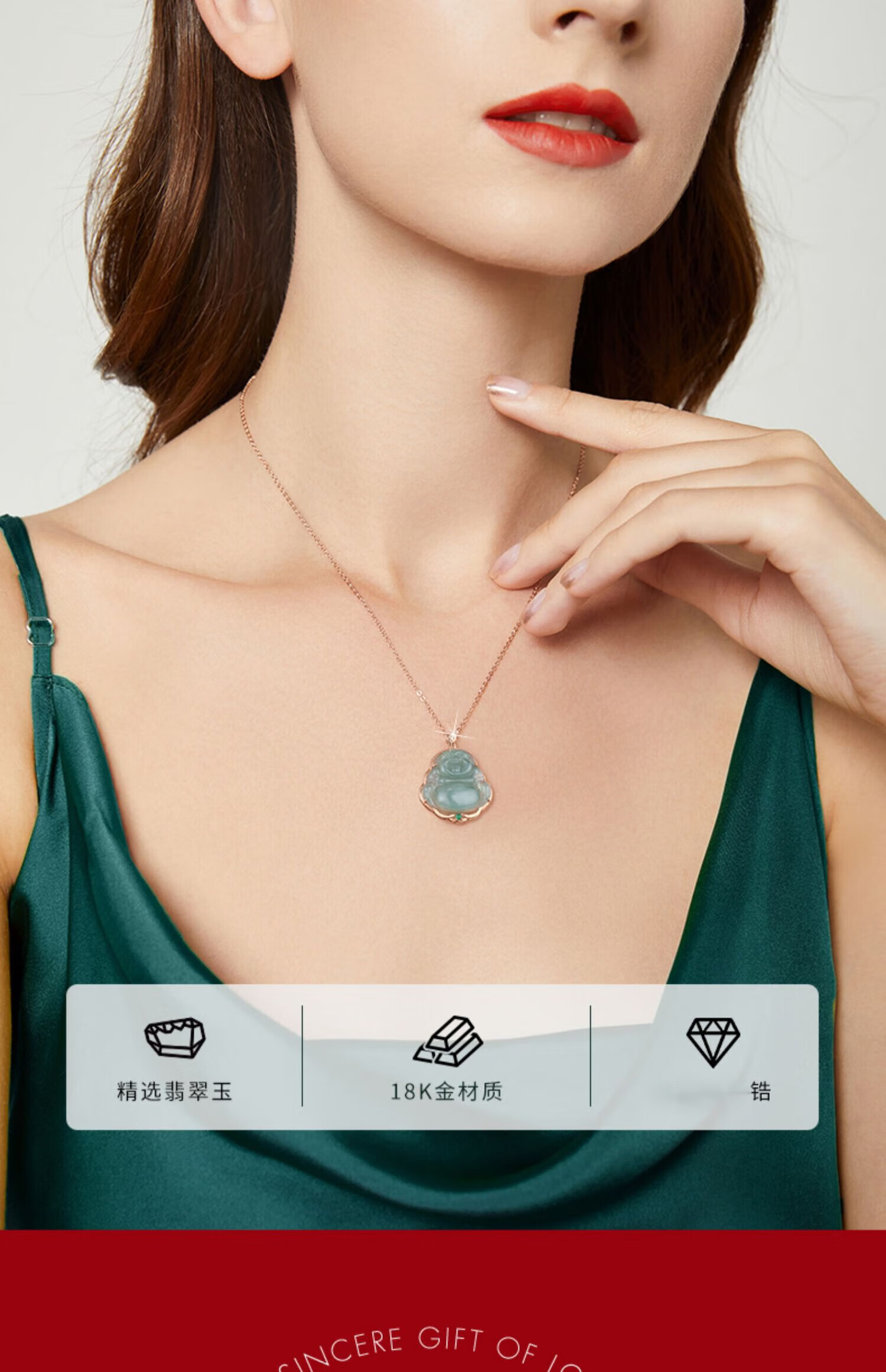 Shlessler Luxury Jewelry Chinese Valentine's Day Gift Necklace Women's High-end Jade Birthday Gift for Mother Golden Maitreya Buddha Brand Gift Box + SF Express