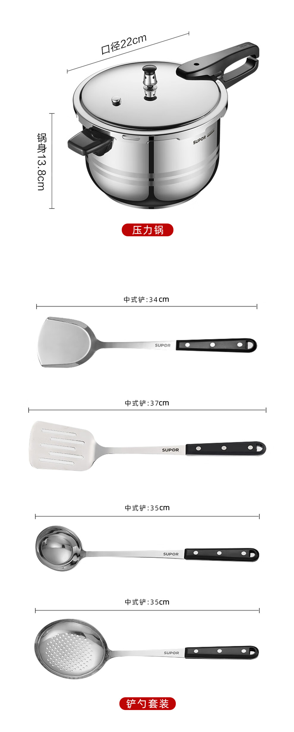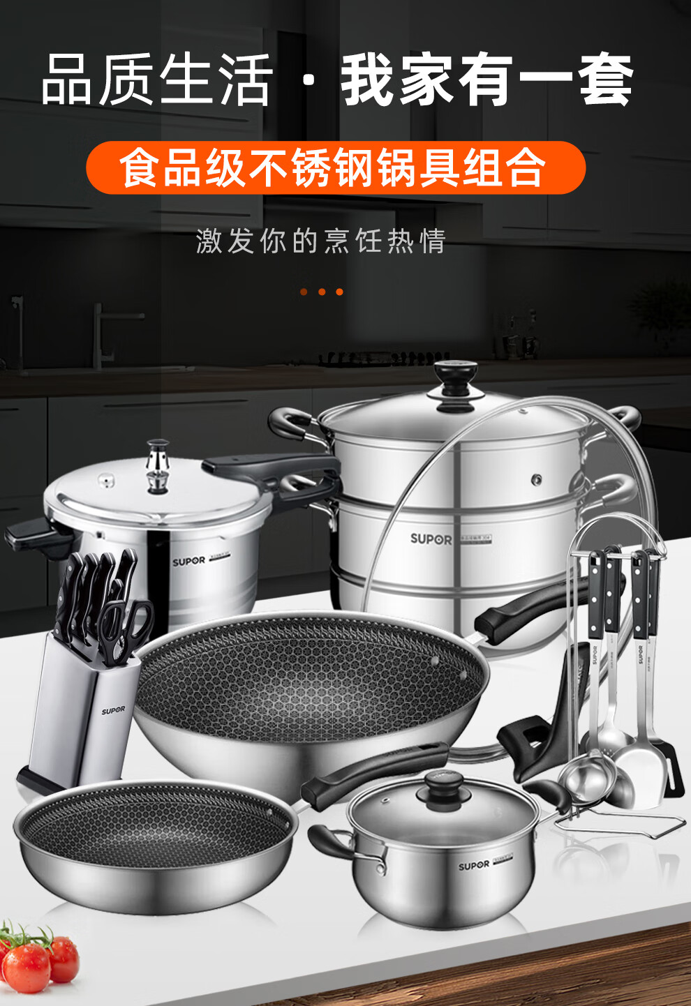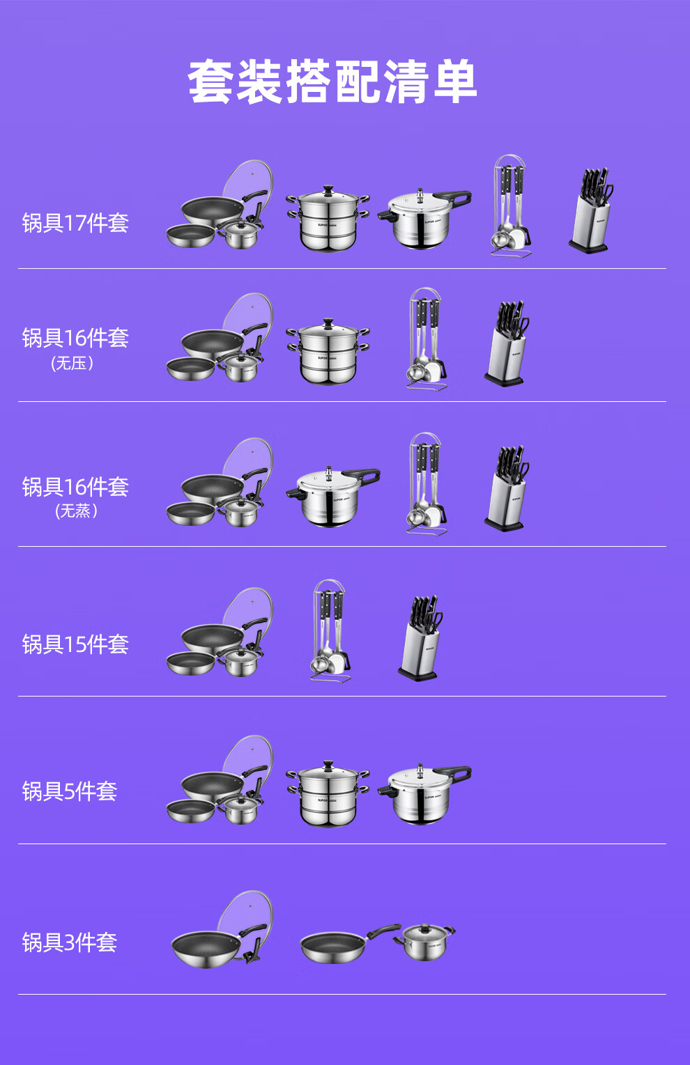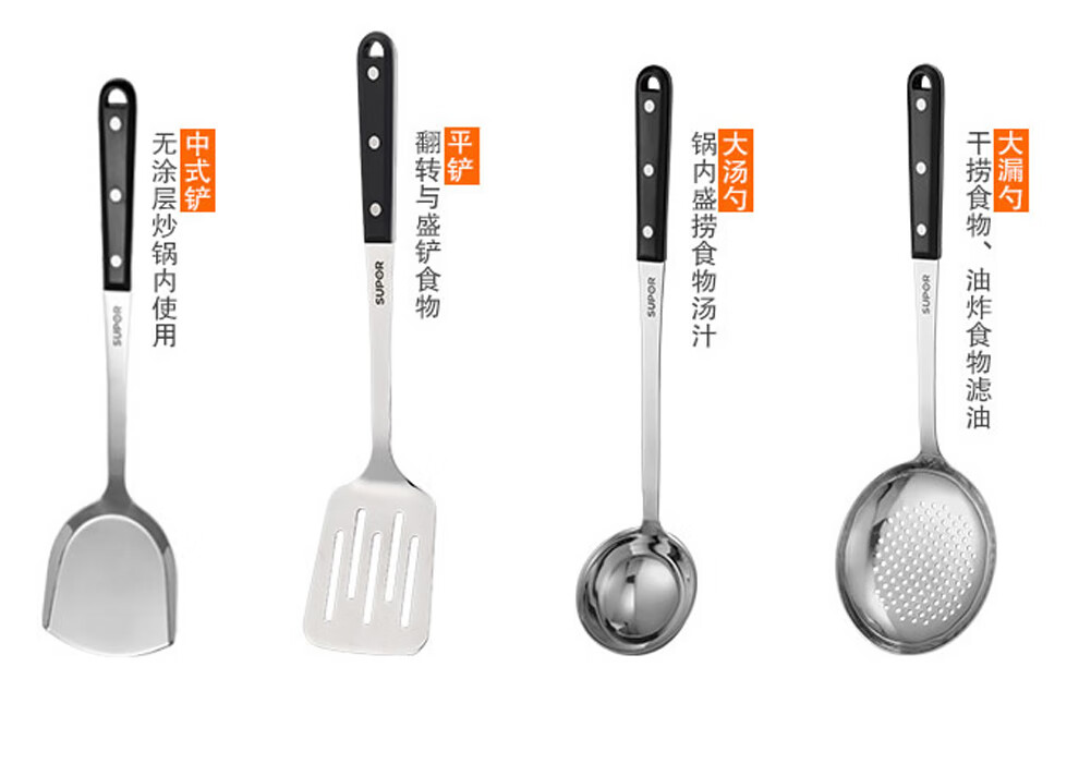 Supor pot set combination kitchen utensils non-stick wok burning frying pan steamer soup pot full set of knives and spatulas kitchen stainless steel stainless steel pot set 17 pieces
