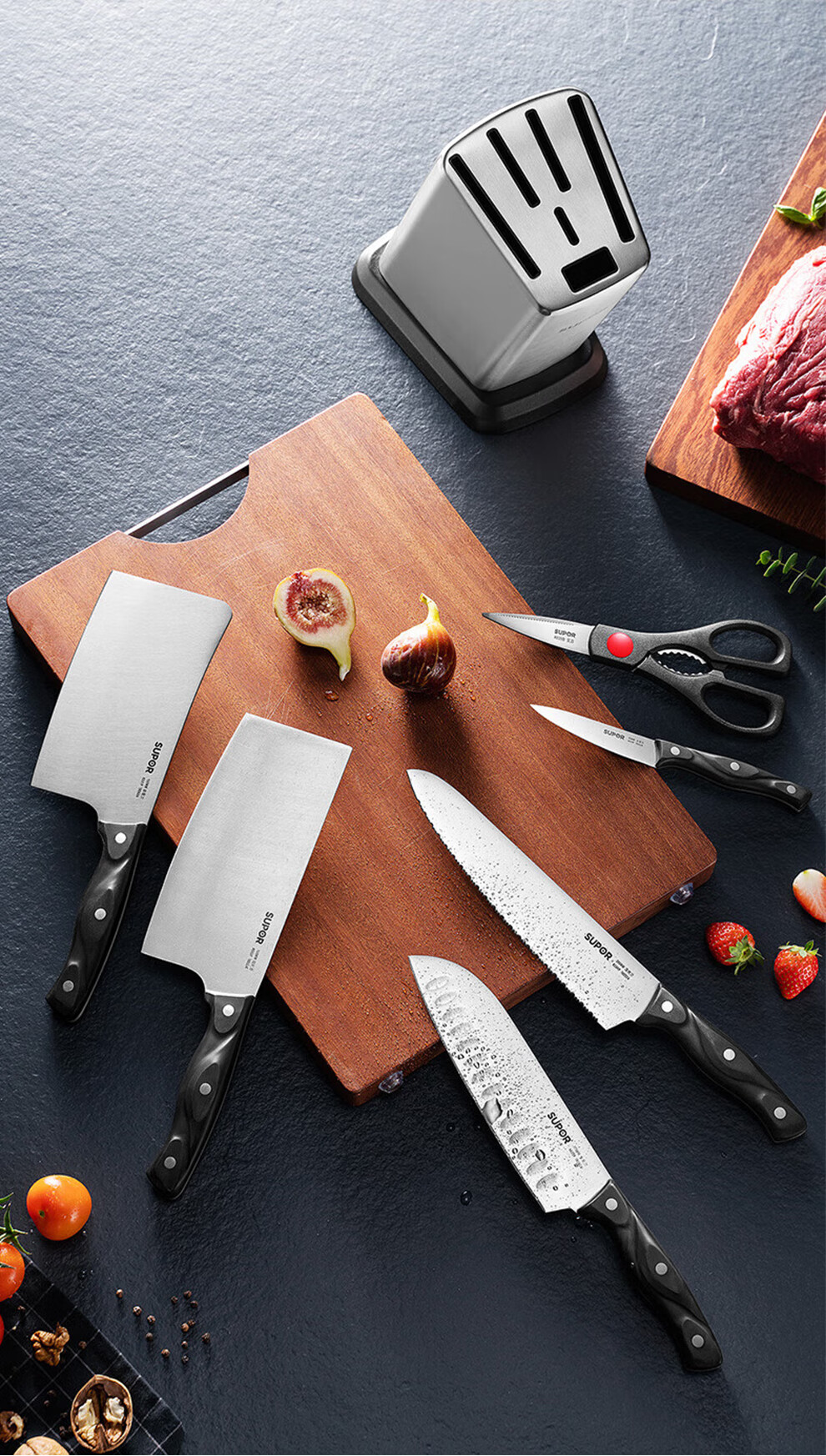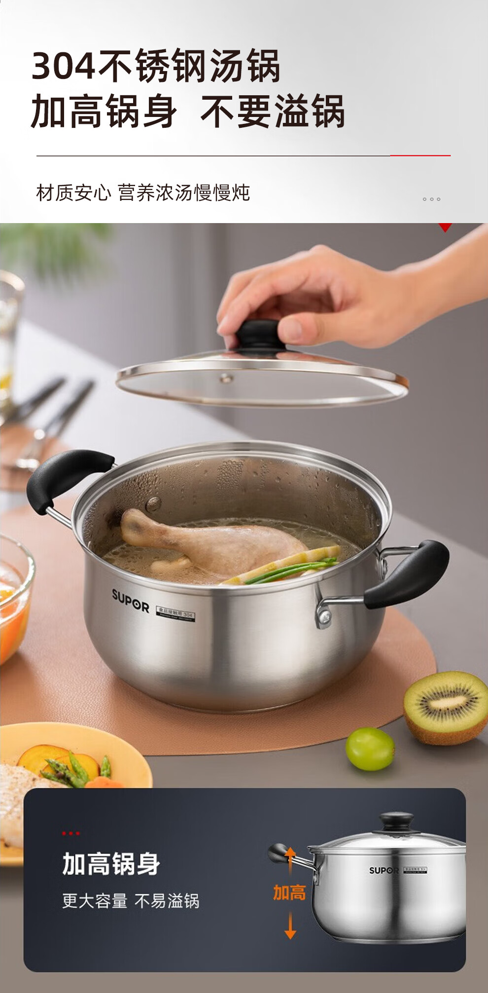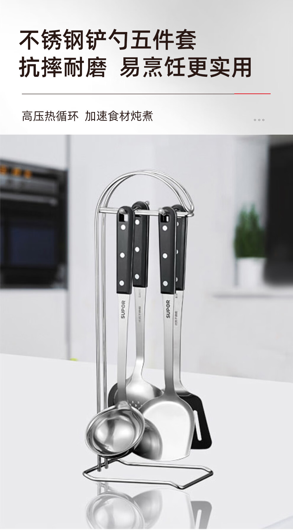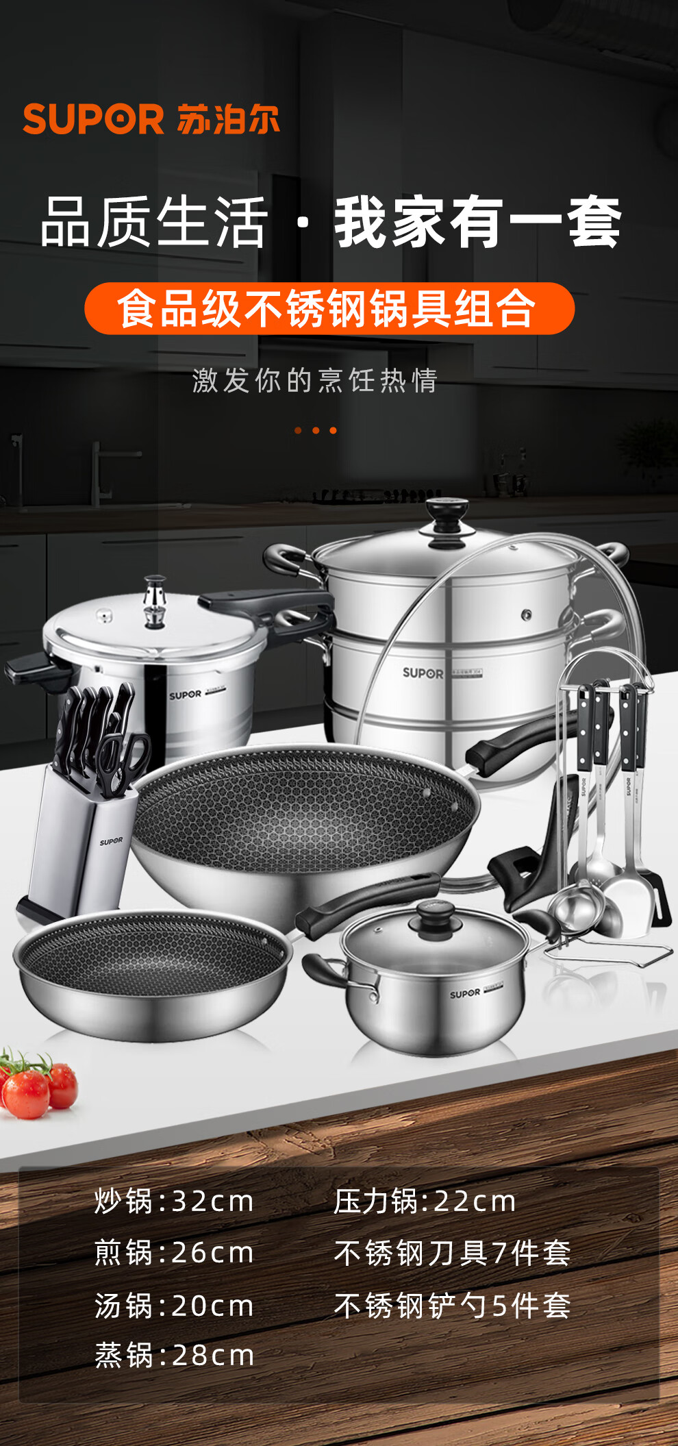 Supor pot set combination kitchen utensils non-stick wok burning frying pan steamer soup pot full set of knives and spatulas kitchen stainless steel stainless steel pot set 17 pieces