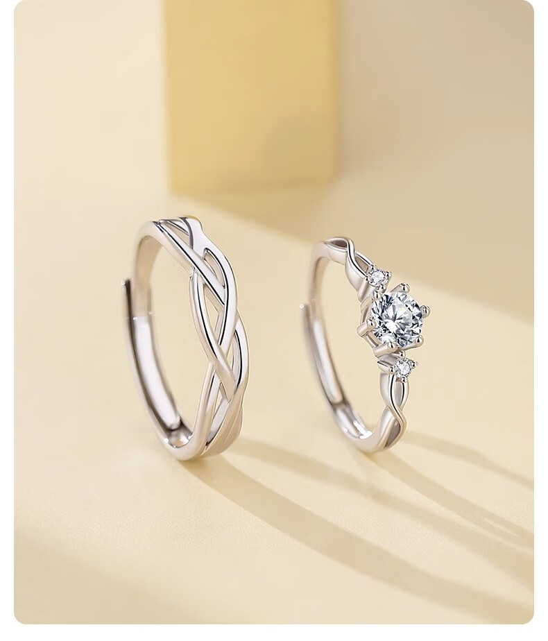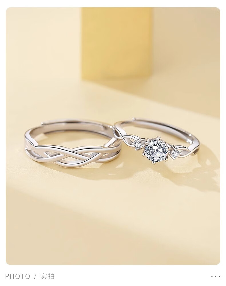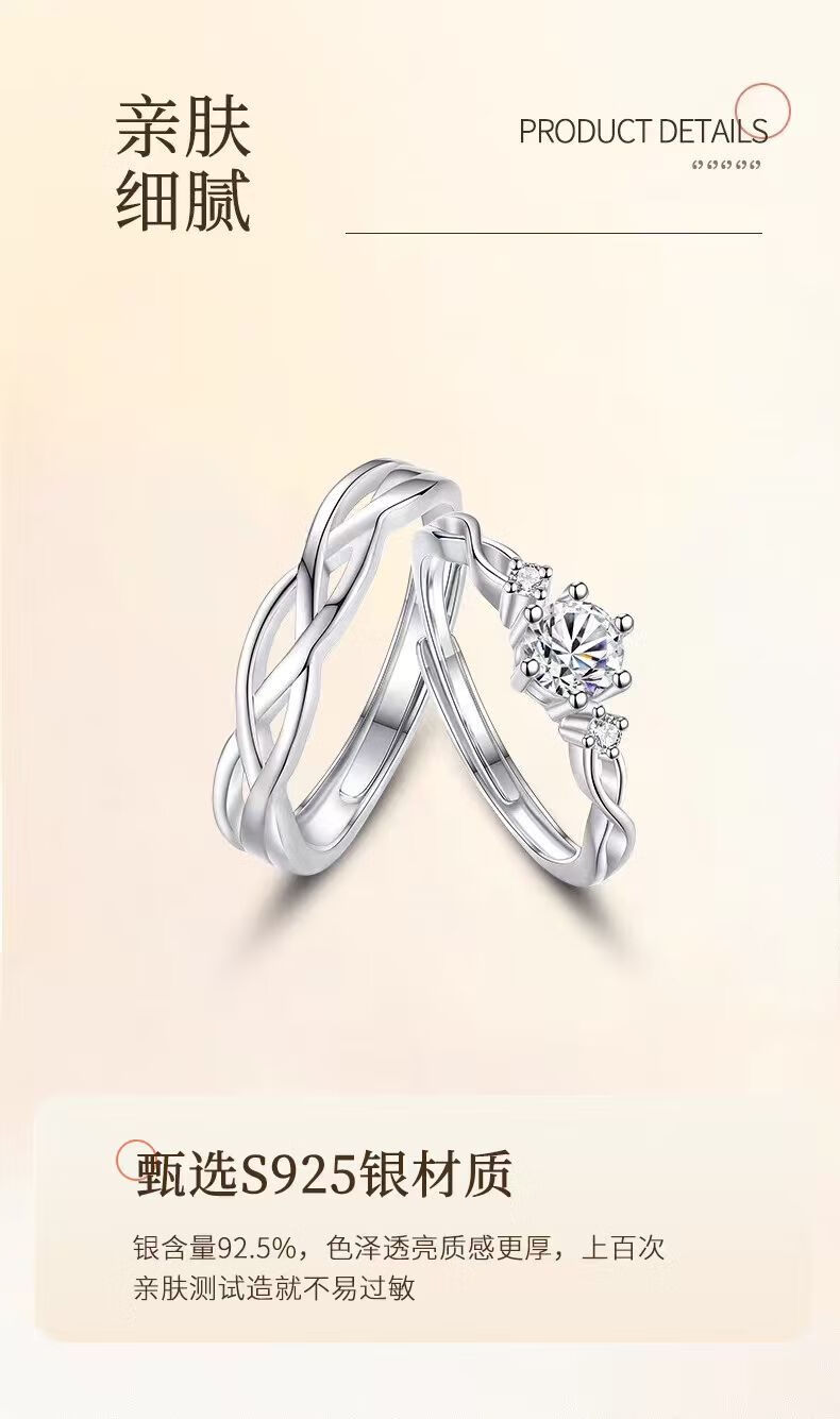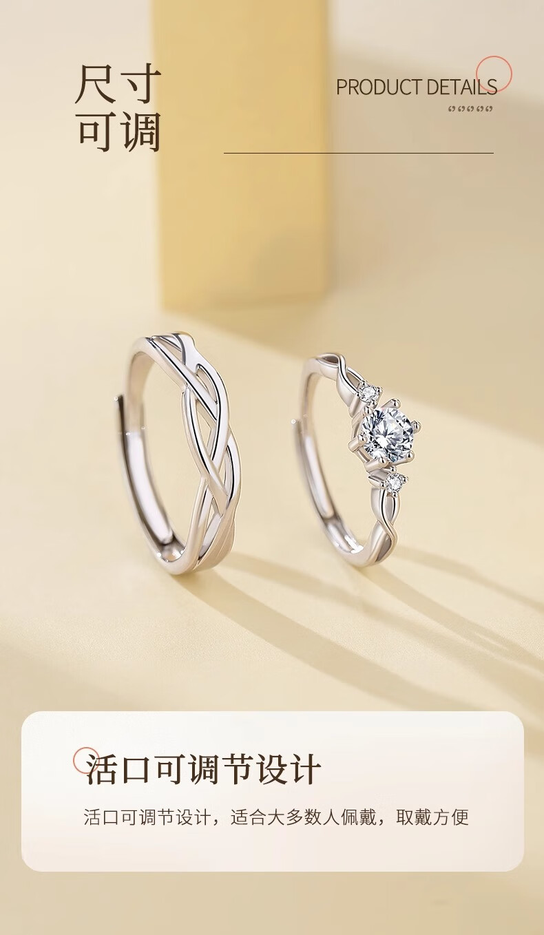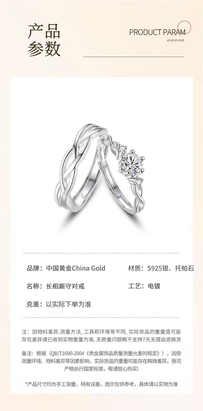 China Gold (CHINA GOLD) s925 Qingsi Couple Ring New Light Luxury Niche Ring Lover’s Birthday Gift Year of the Horse Ben Ming Nian Gift Jingsuda Pair of Qingsi Rings + Brand Gift Box Opening Adjustable/Free Engraving