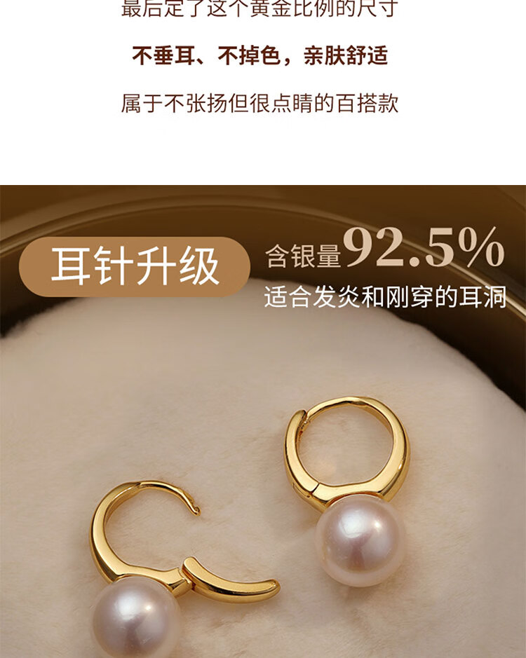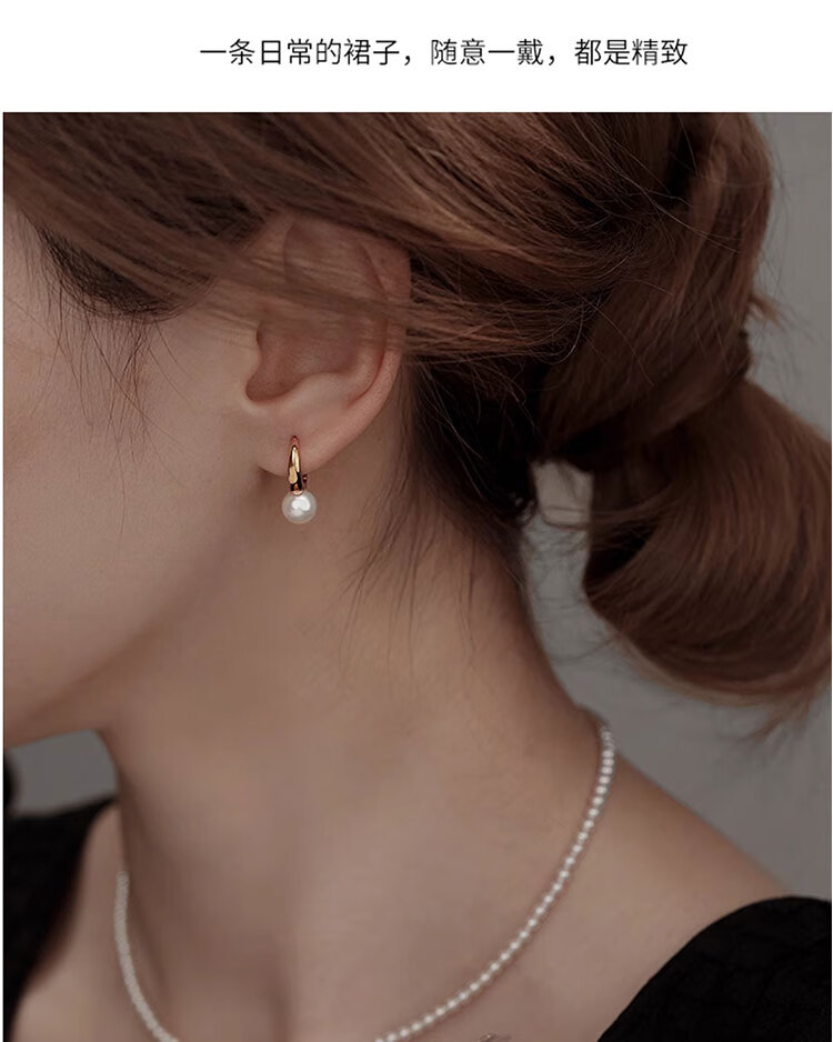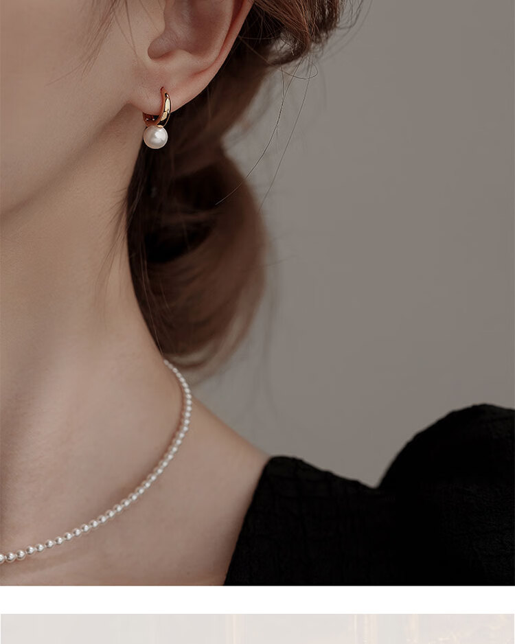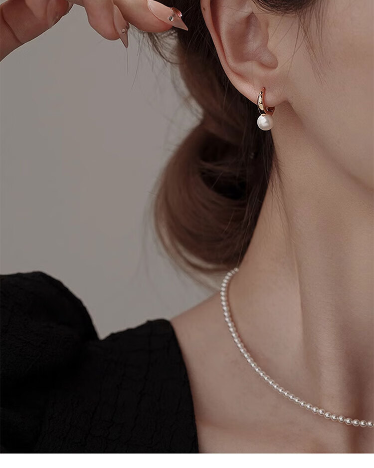 Freshwater pearl earrings for women in the wild, light luxury, high-end earrings, 2025 new style French earrings, Valentine's Day gift for girlfriend, 6-7MM round natural pearls