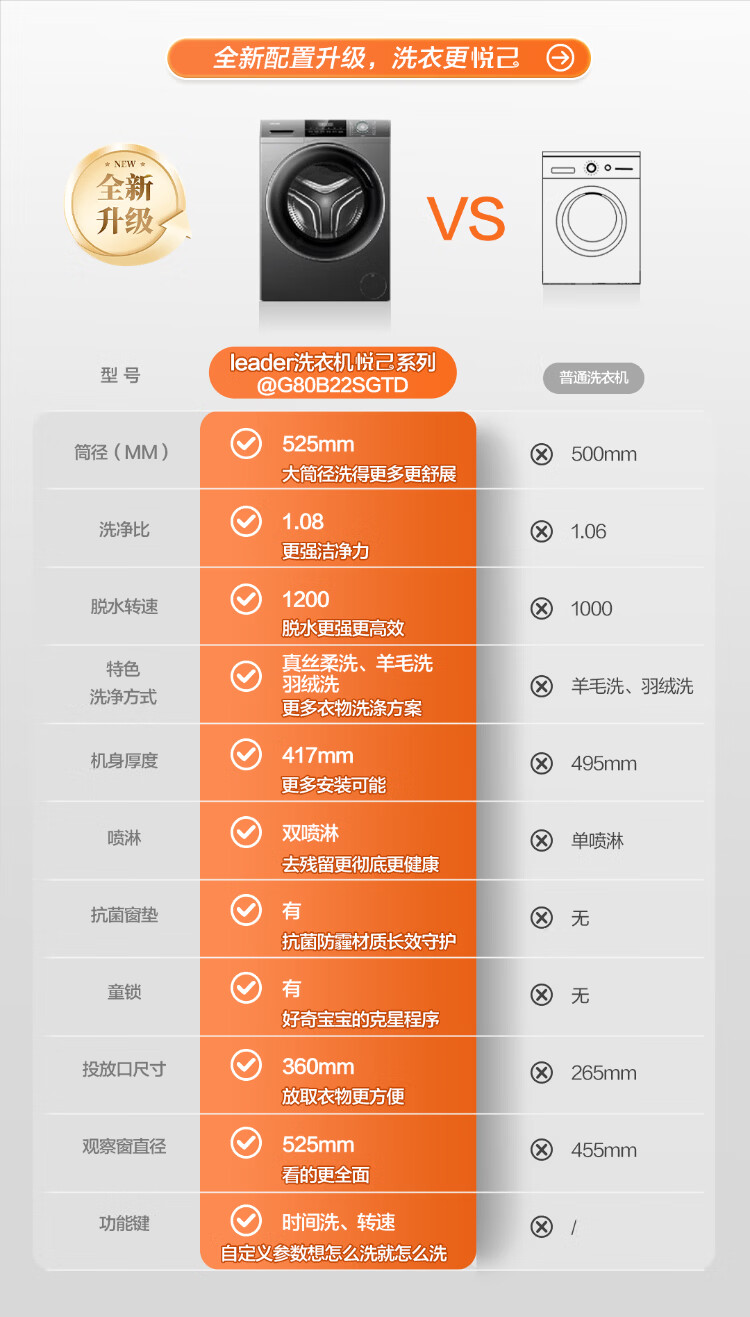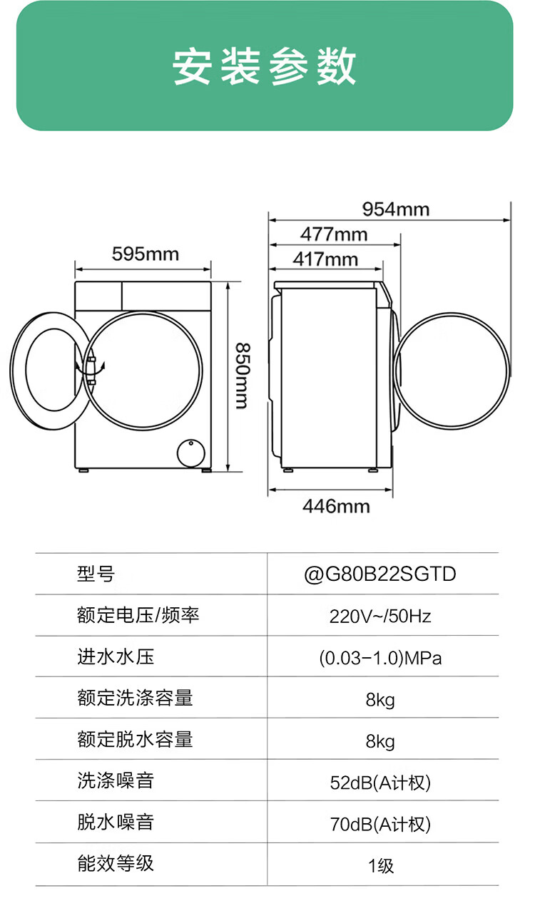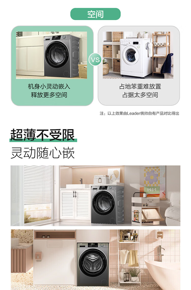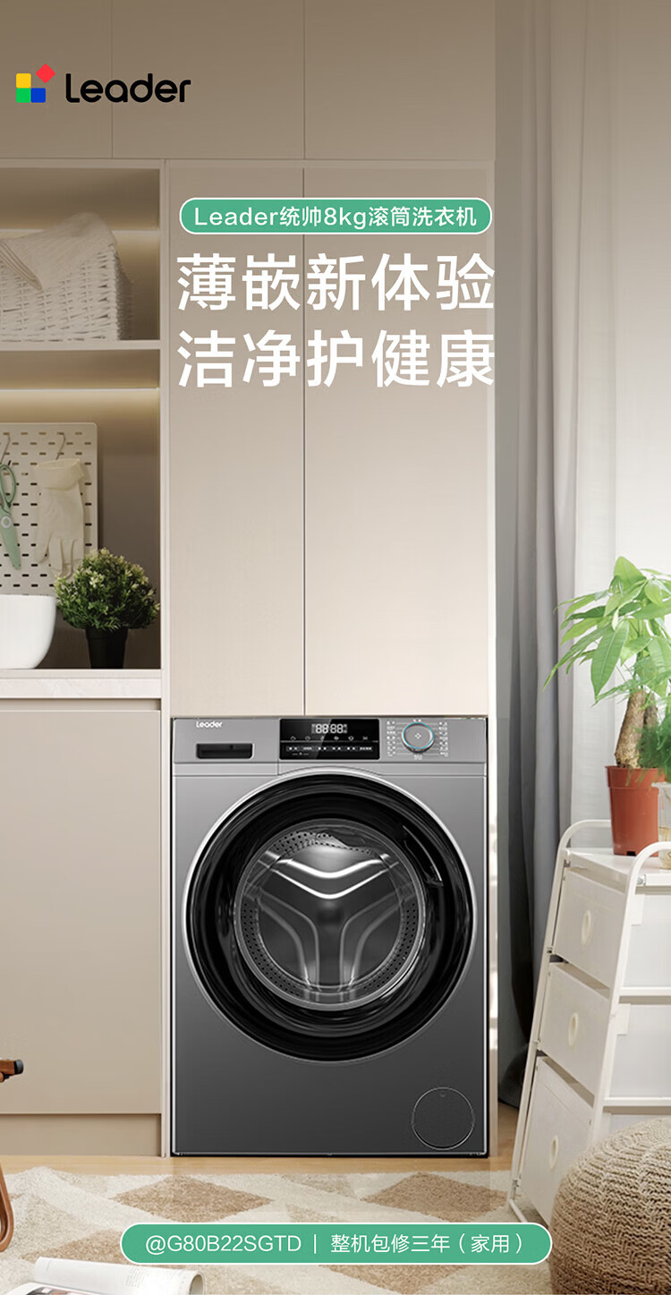 Produced by Leader Haier, fully automatic household drum washing machine, 8kg, 417mm ultra-thin body, first-class energy-efficiency inverter, antibacterial mite 80b22s trade-in subsidy, 525mm large drum diameter丨ultra-thin embedded丨1.08 wash ratio