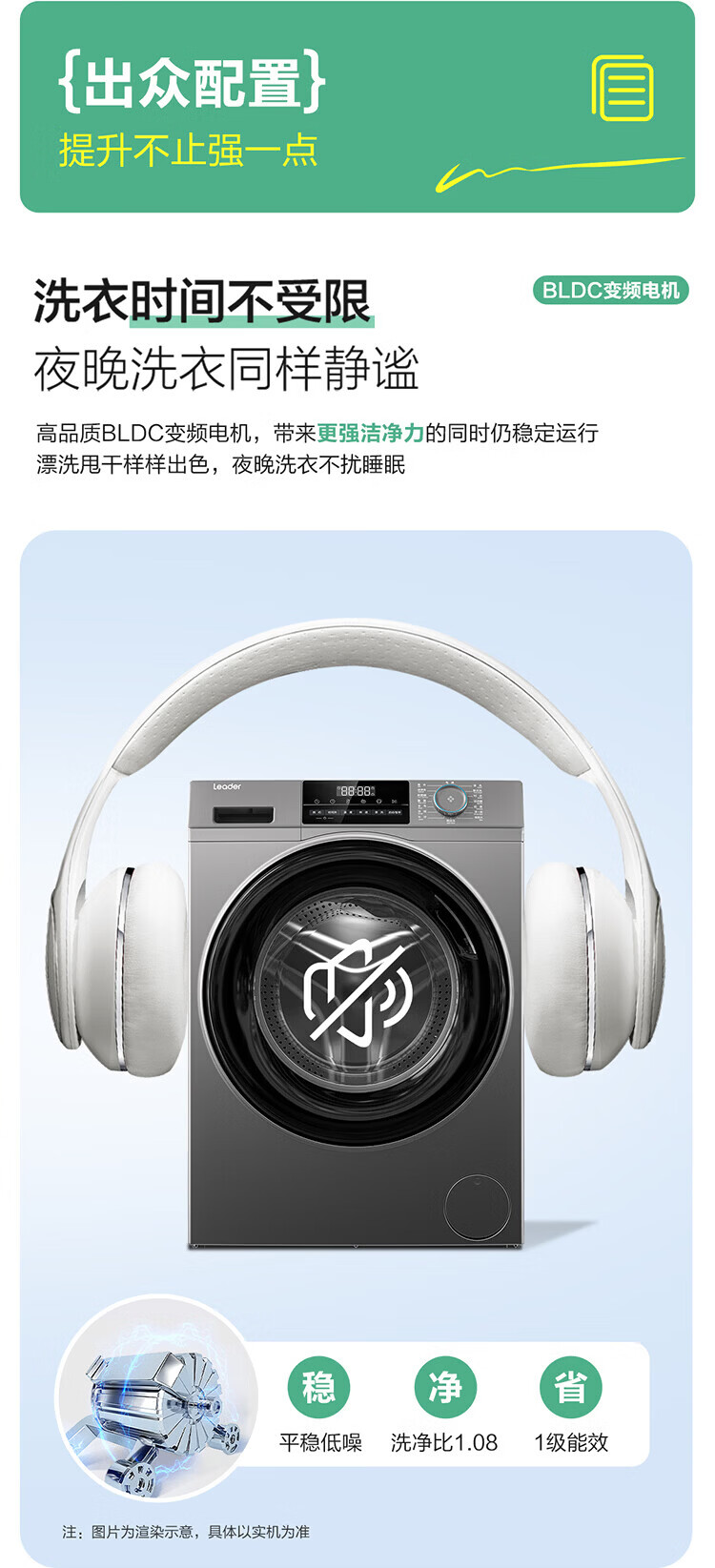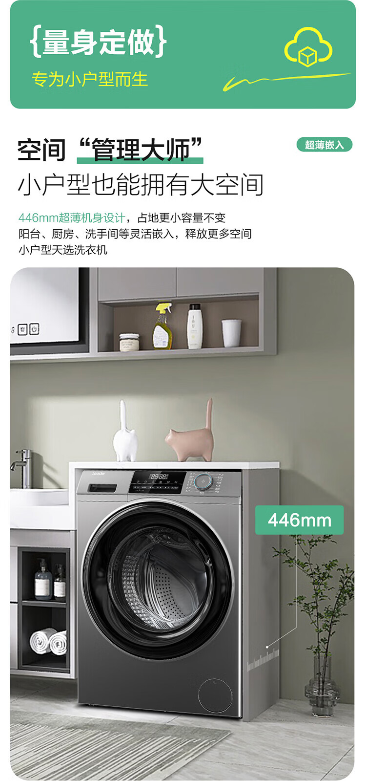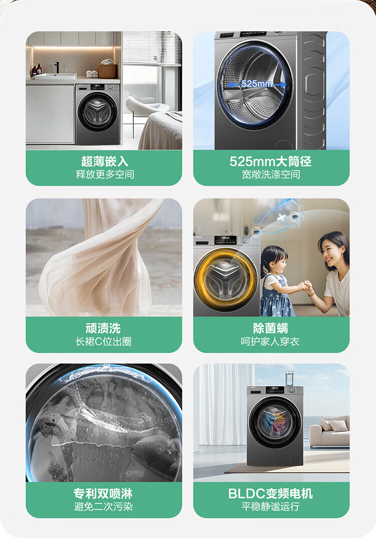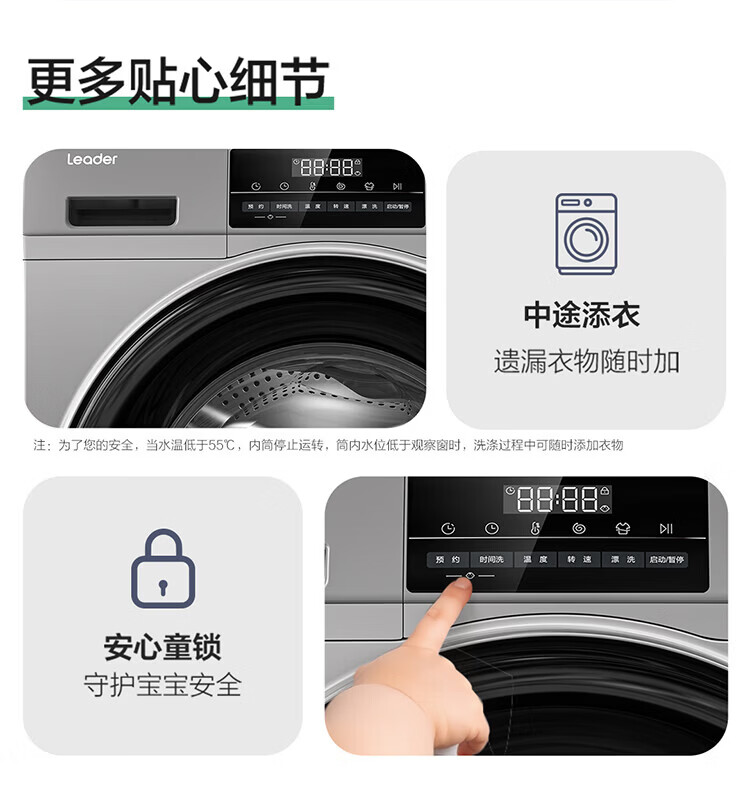 Produced by Leader Haier, fully automatic household drum washing machine, 8kg, 417mm ultra-thin body, first-class energy-efficiency inverter, antibacterial mite 80b22s trade-in subsidy, 525mm large drum diameter丨ultra-thin embedded丨1.08 wash ratio