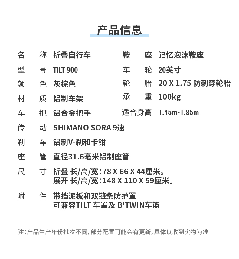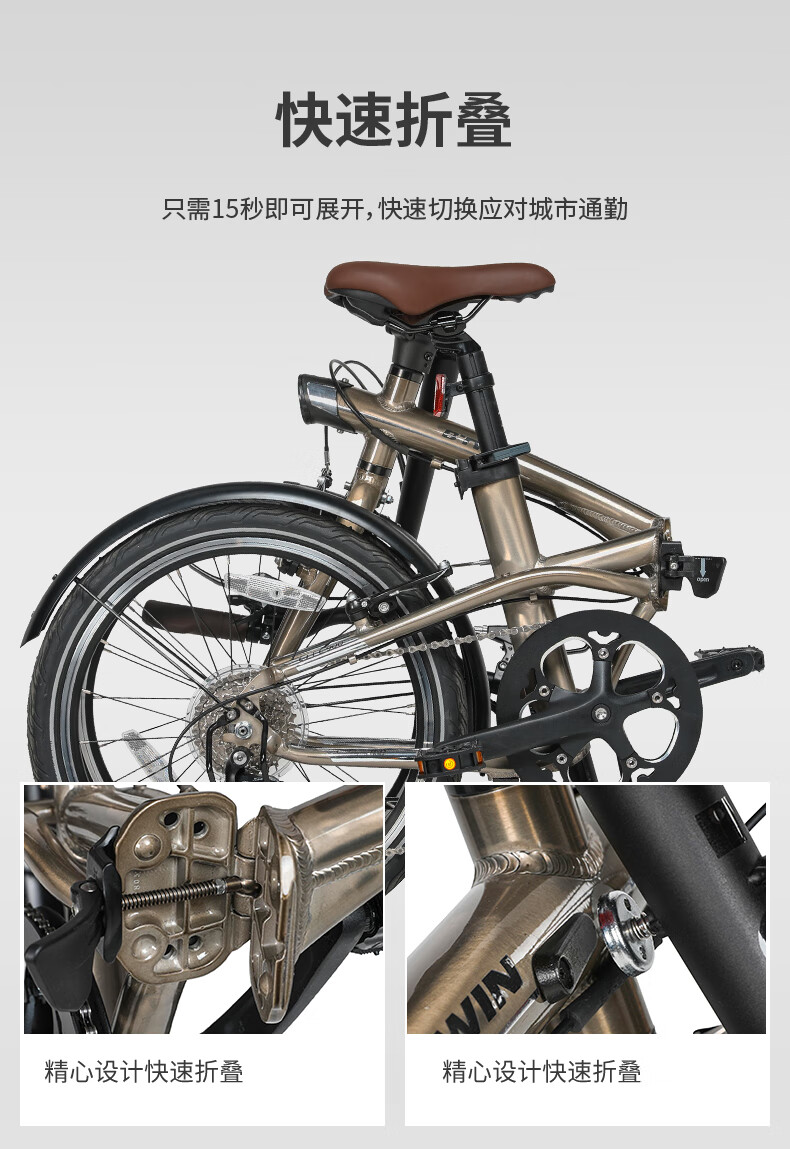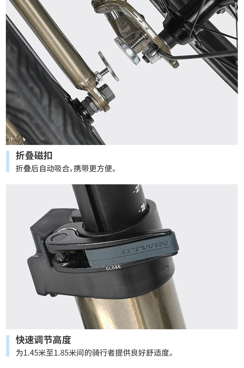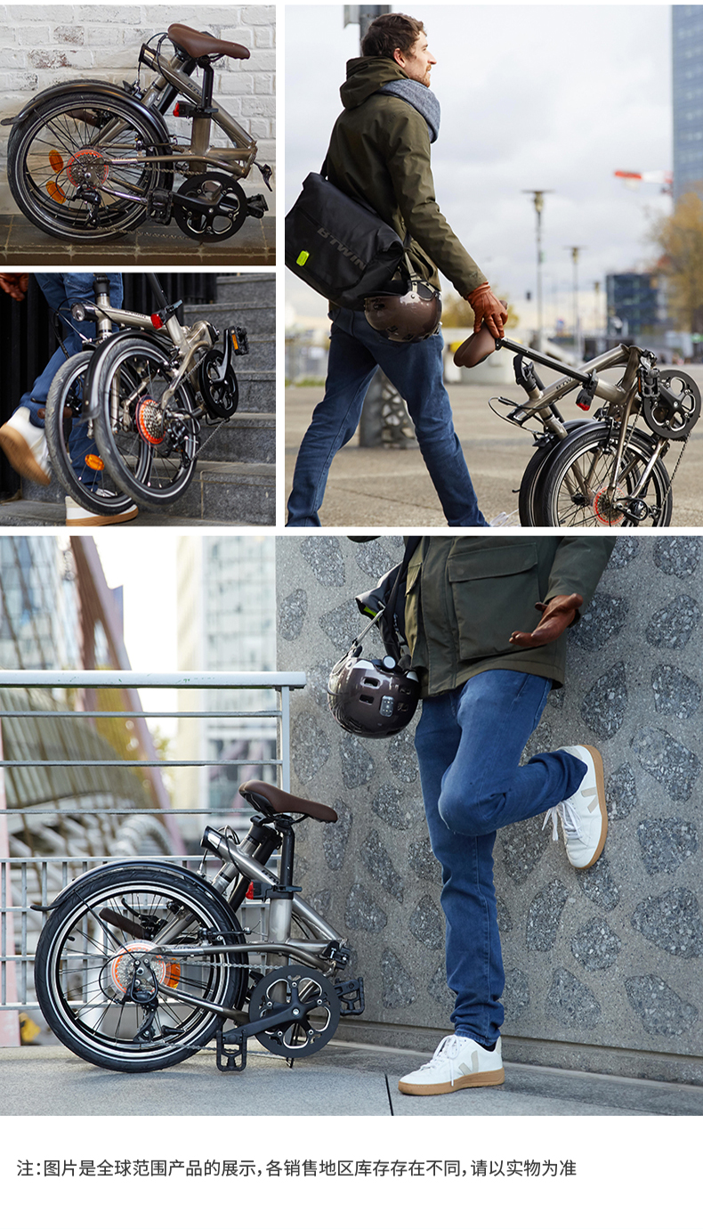 Decathlon Folding Variable Speed Urban Commuting Bicycle Men's and Women's Portable 20-inch Bicycle (Cover and Basket Not Included) Fold 560 Gray Brown 20-inch