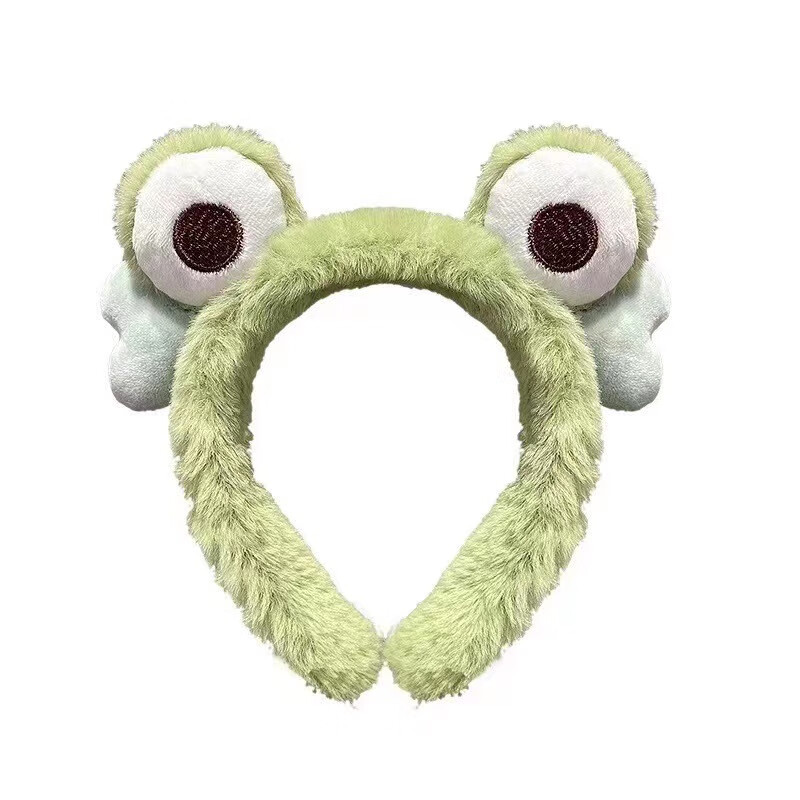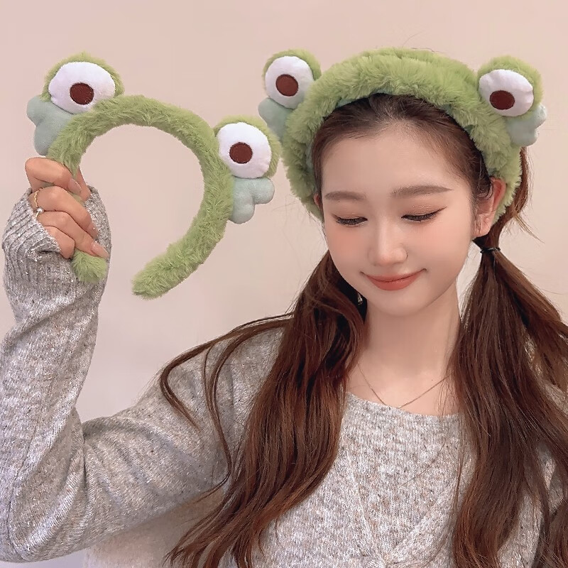 Jieyi cute little frog headband for women's face wash cartoon funny plush headband hairpin rabbit ears green frog headband 1 pack