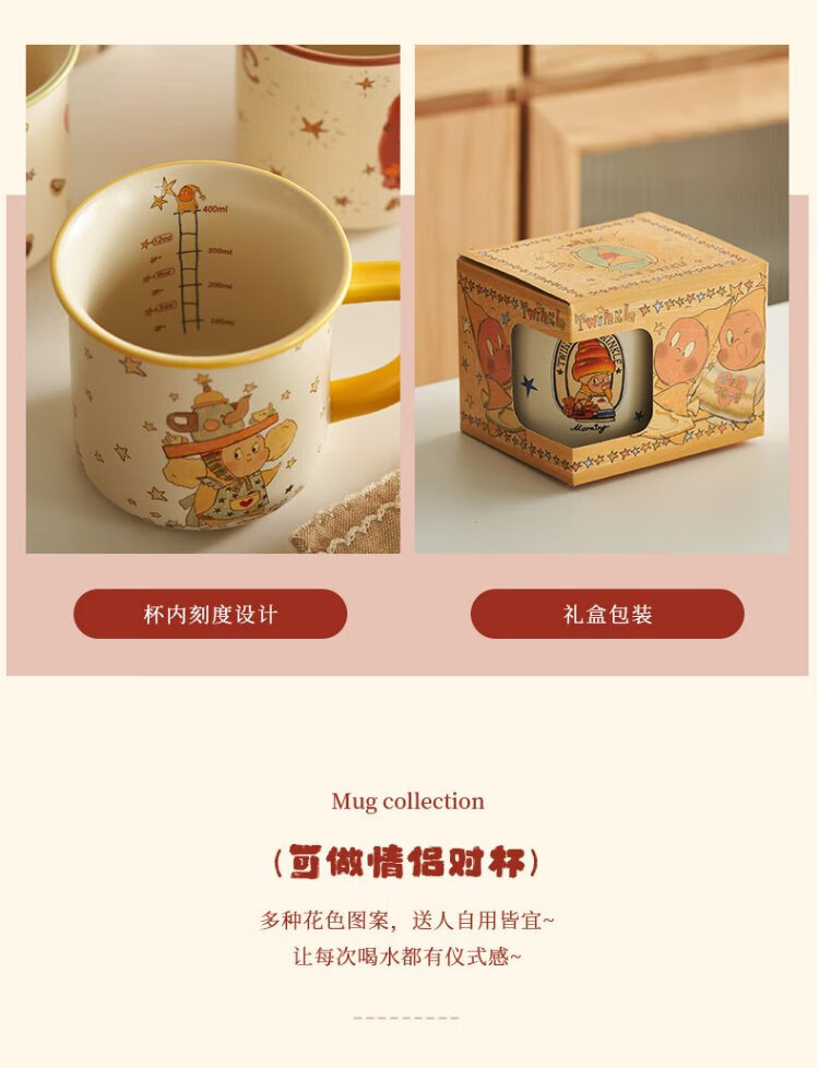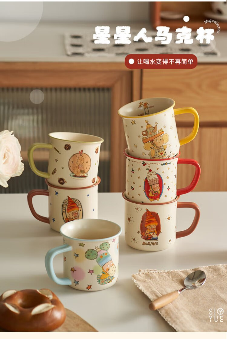 Siyue Xingren co-branded mug, cute ceramic mug, couple water cup, birthday gift for women's home store, Cheerilee Xingren 1 piece