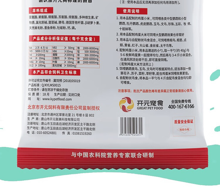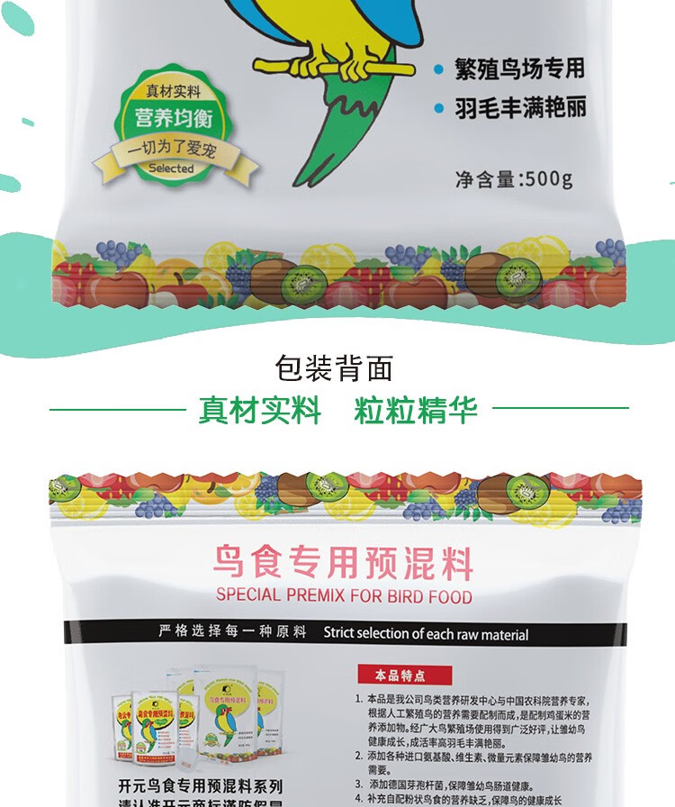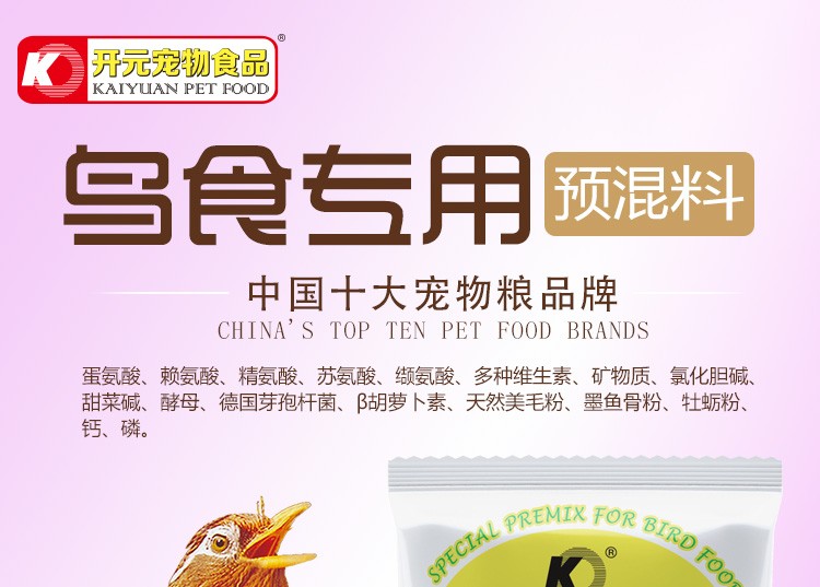 Kaiyuan bird food special premix parrot, thrush, starling, myna, breeding supplement, nutritious bird feed with bright coat, premix