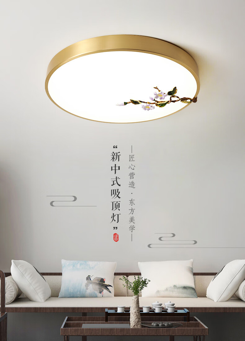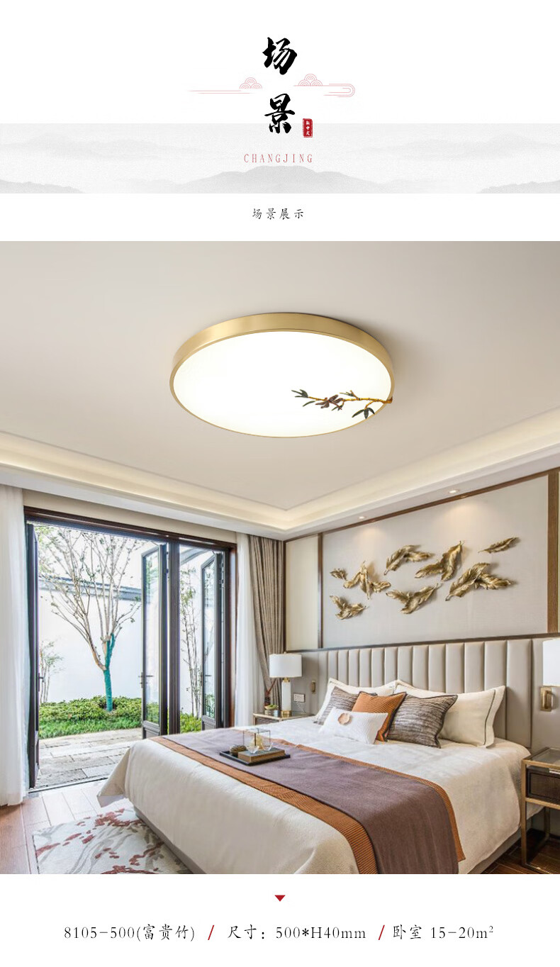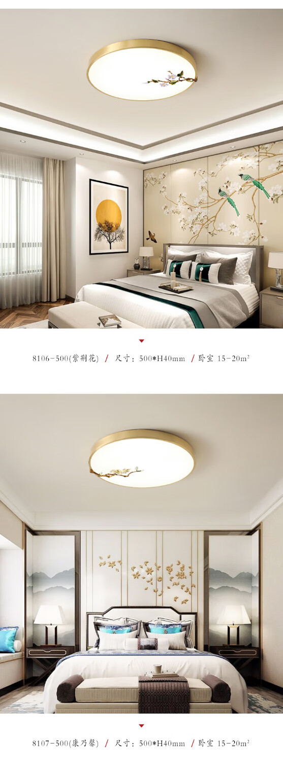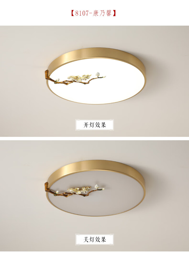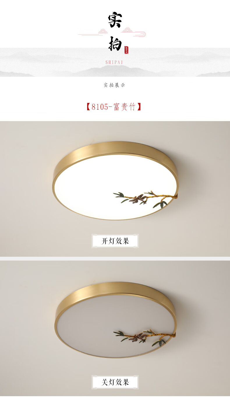 Qianzhang Lamp New Chinese Style Full Copper LED Ceiling Lamp Light Luxury Golden Eye Protection Simple Modern Bedroom Study Ultra-Thin Anti-mosquito Lamp Round 30cm Lucky Bamboo 18W Three-tone Lighting