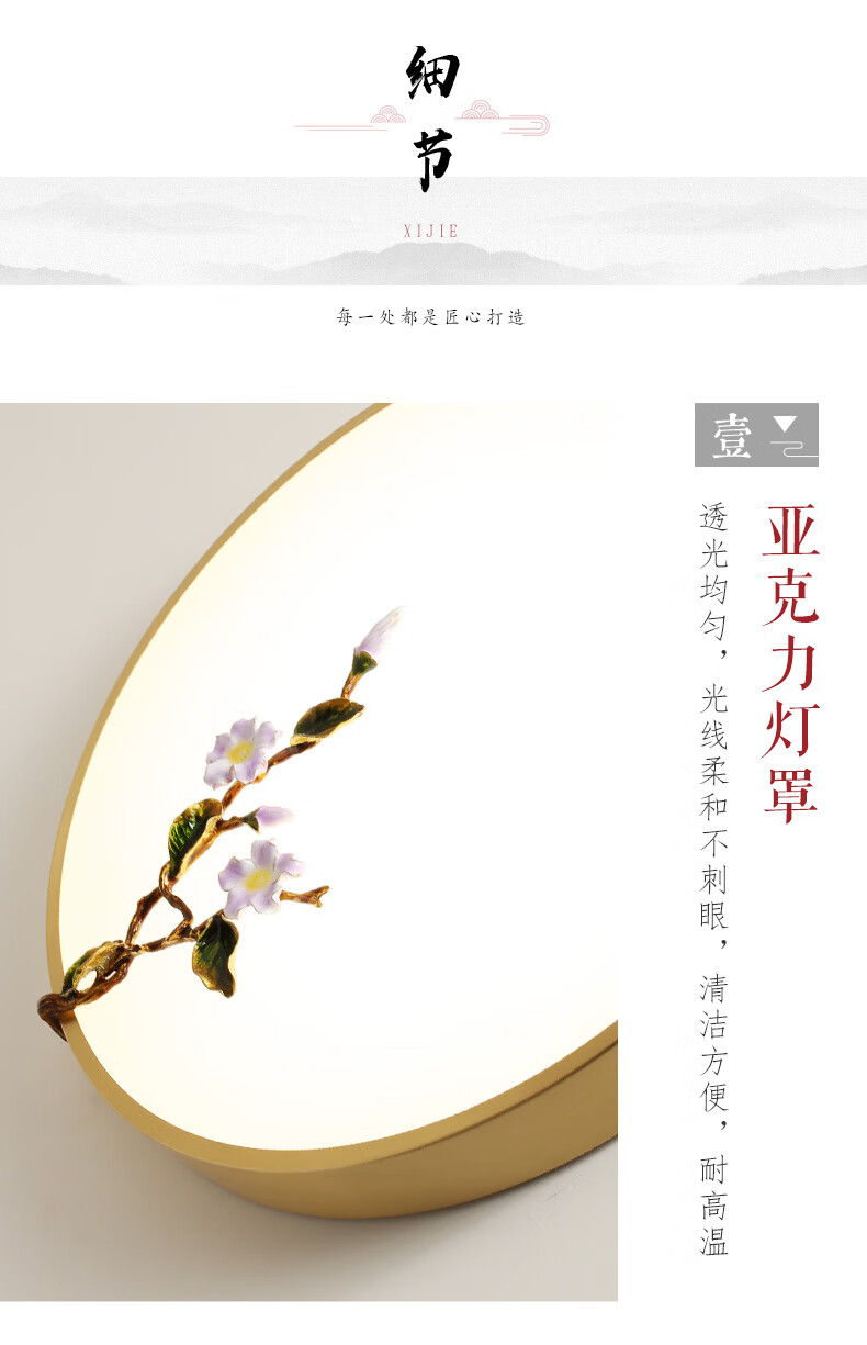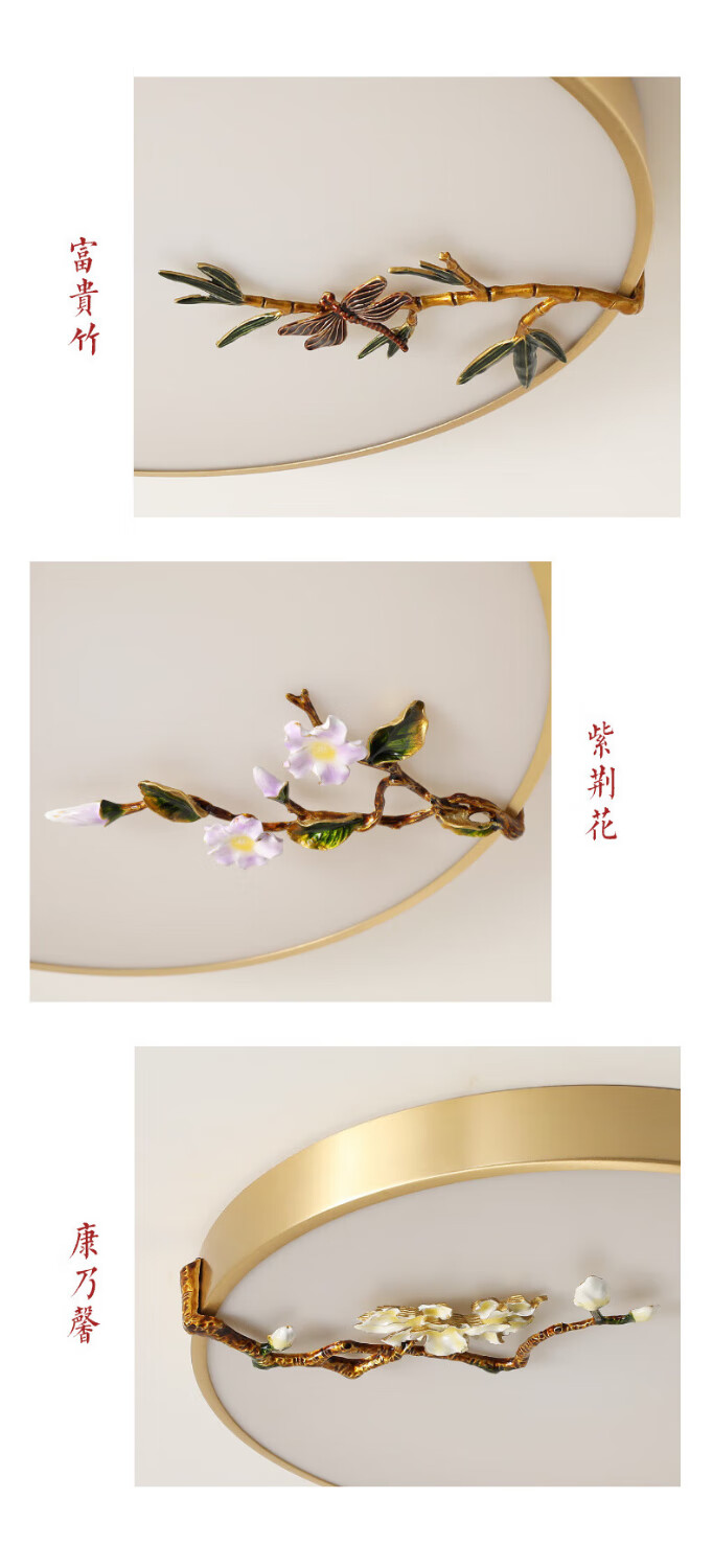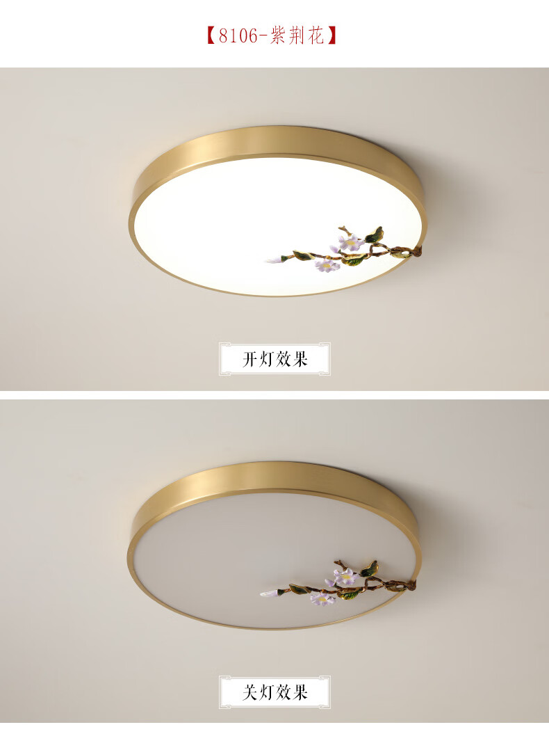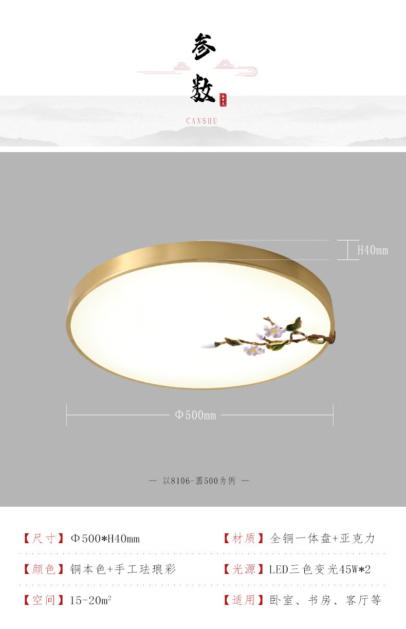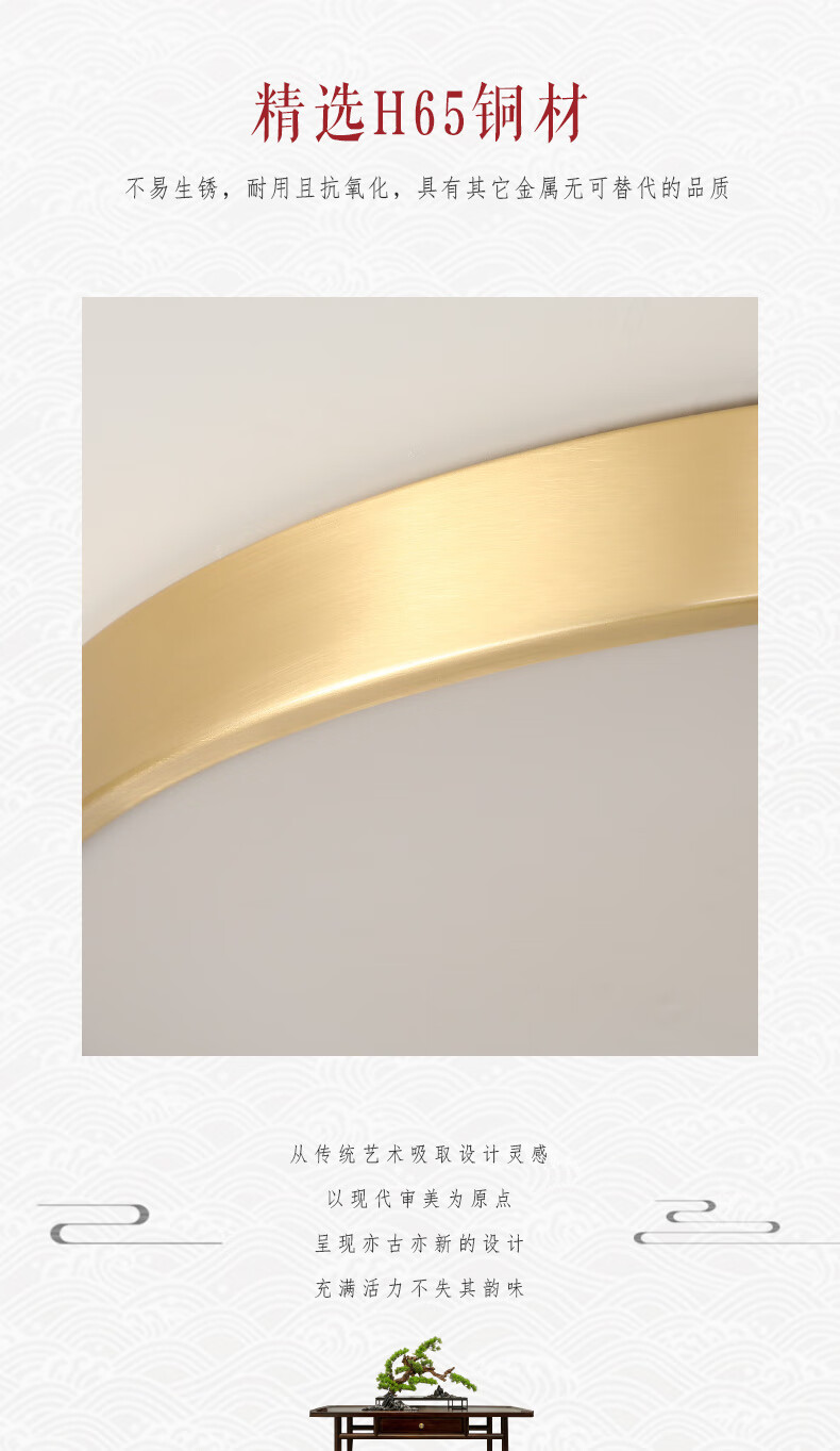 Qianzhang Lamp New Chinese Style Full Copper LED Ceiling Lamp Light Luxury Golden Eye Protection Simple Modern Bedroom Study Ultra-Thin Anti-mosquito Lamp Round 30cm Lucky Bamboo 18W Three-tone Lighting