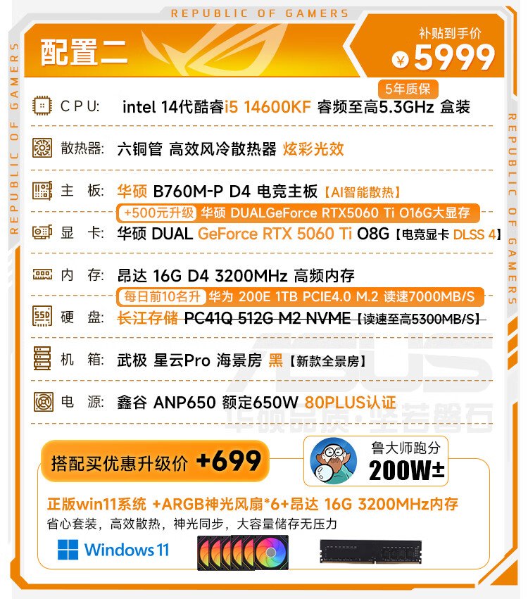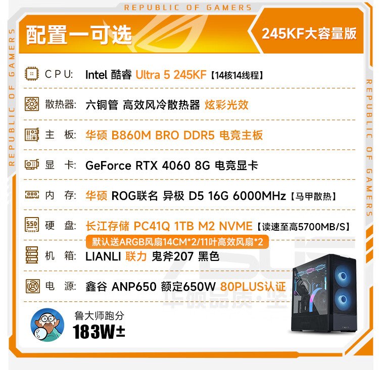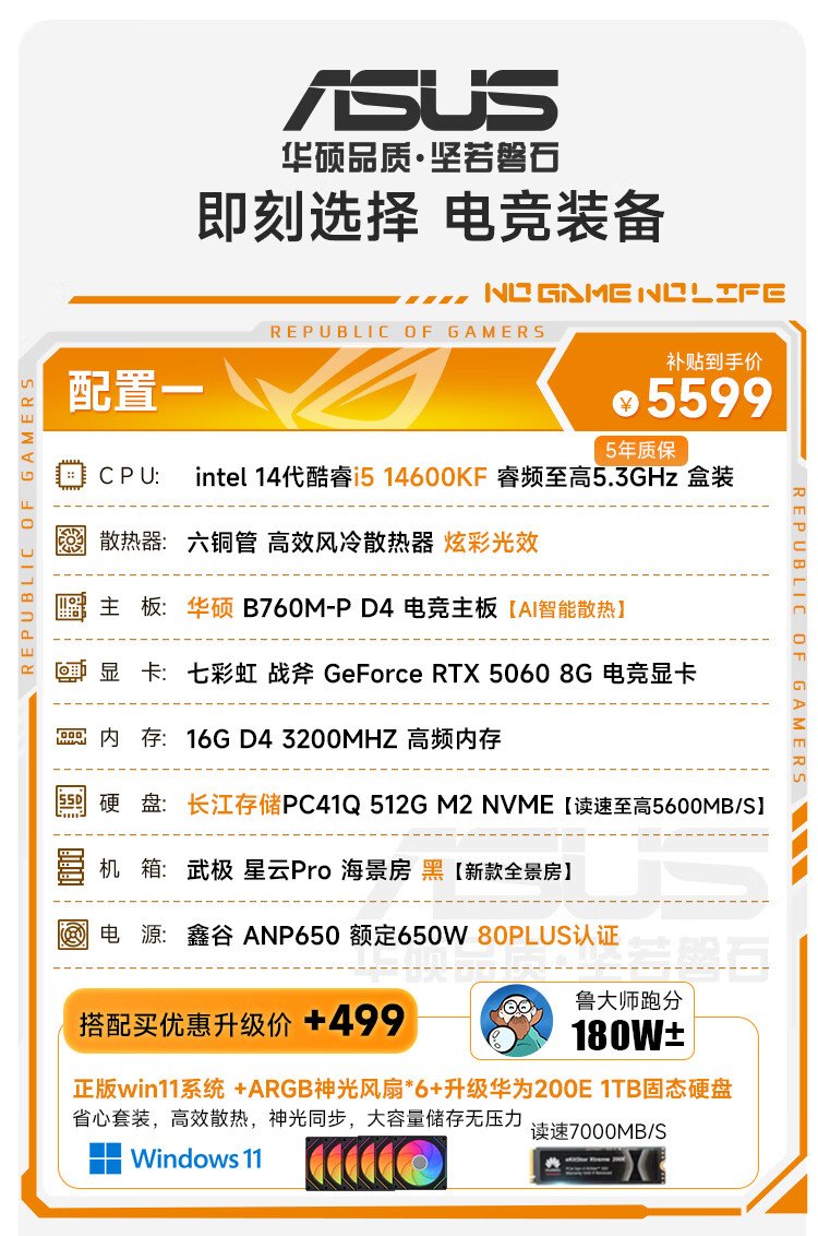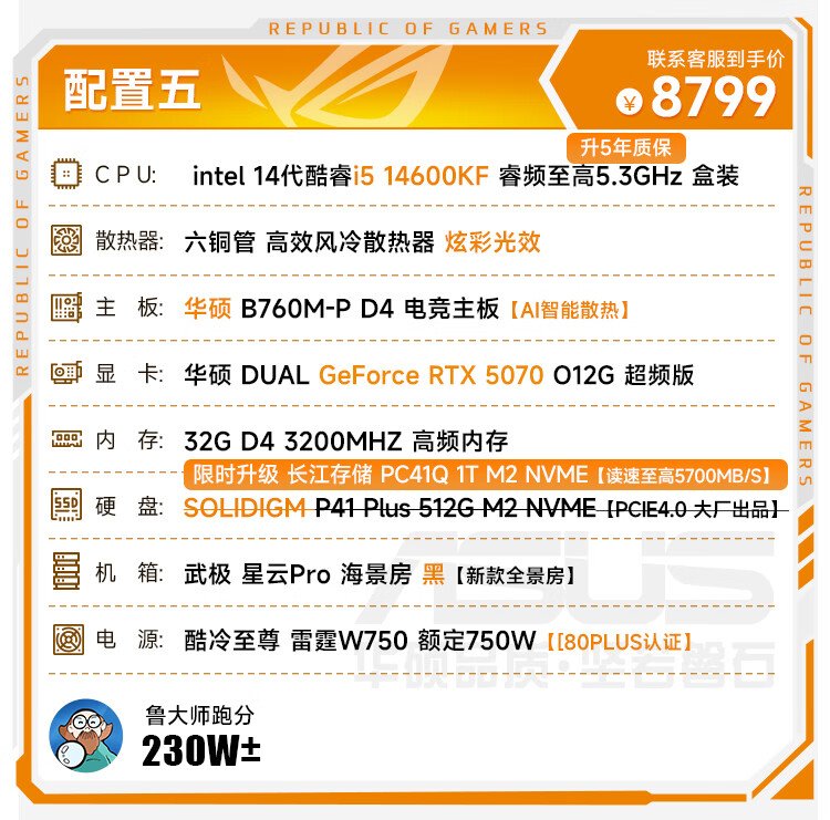 ASUS Family Bucket i5 14600KF/RTX5070 graphics card live broadcast e-sports game desktop assembly computer host complete machine DIY assembly machine 14600KF+RTX5070丨Configuration five